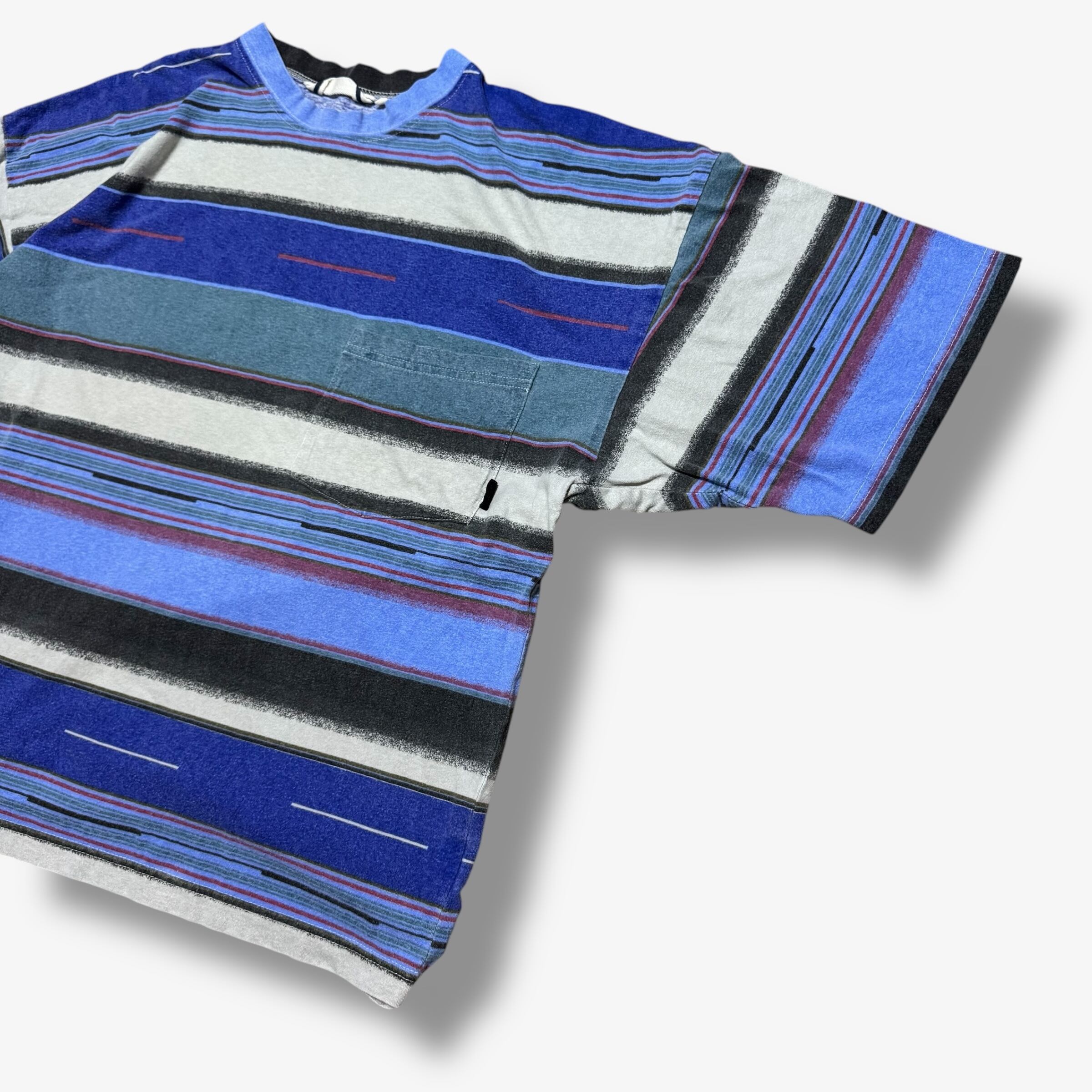 アメリカ製クイックシルバーの不規則に配置されたブルーベースのボーダーT