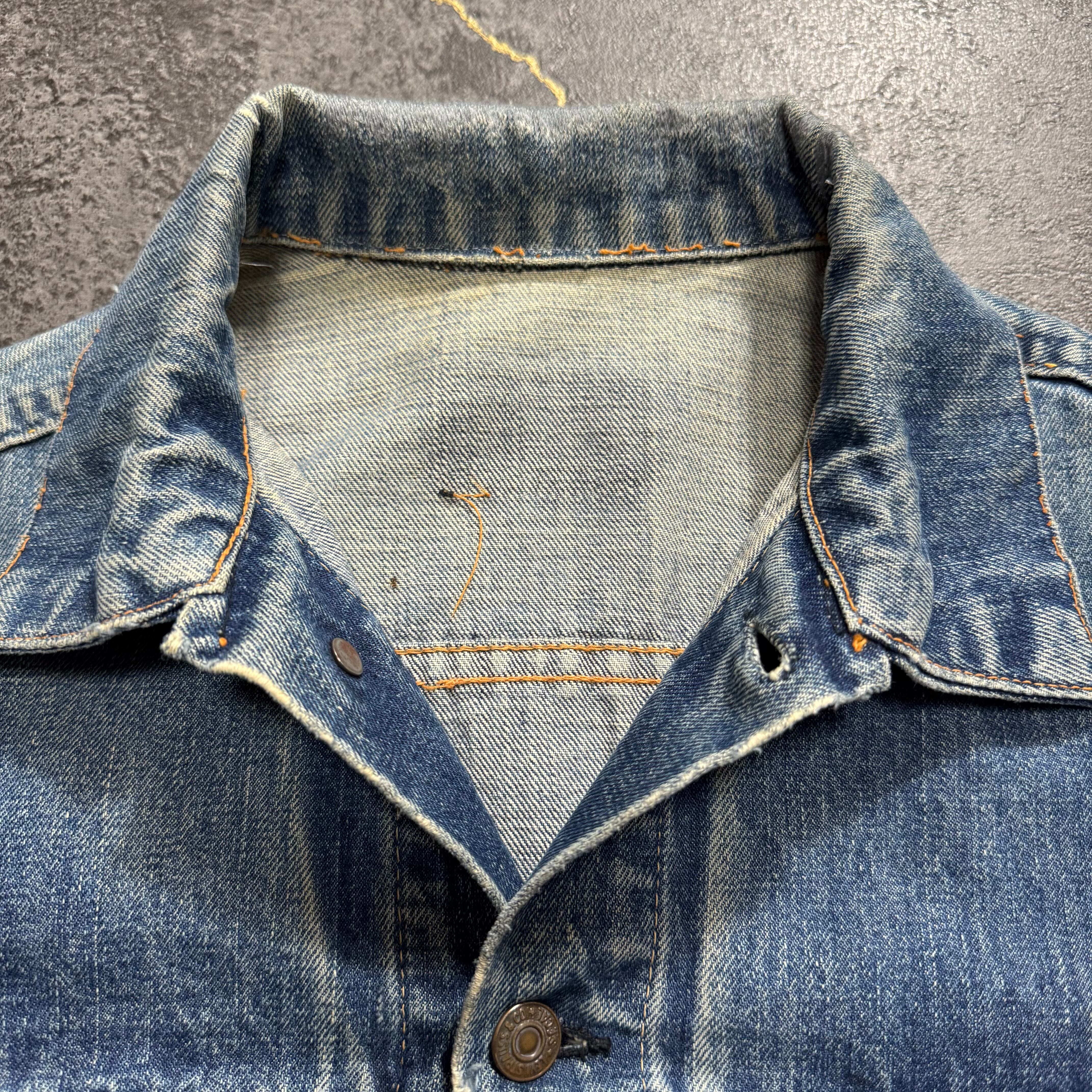 558から71205への過渡期にあたる希少な一着になります。色落ちは3rdと同等のきれいな縦落ちで、赤タブも経年変化で褪色していて抜群の雰囲気です