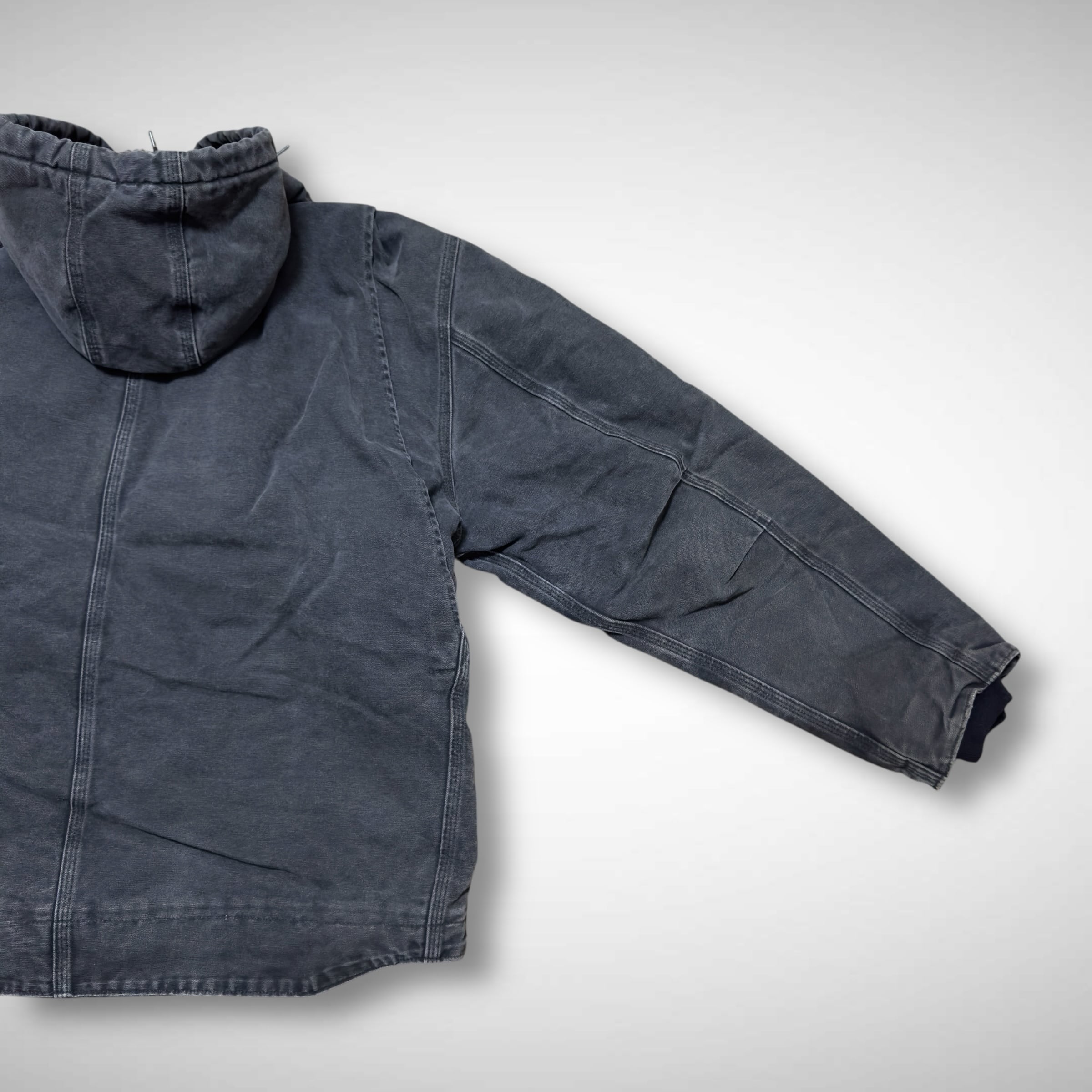 スミクロにフェードしたブラックダック地がカーハートと言えばな雰囲気抜群の一枚。フード裏と身頃の裏地はボアタイプ、袖裏はキルティングなので袖通しがよくなっています