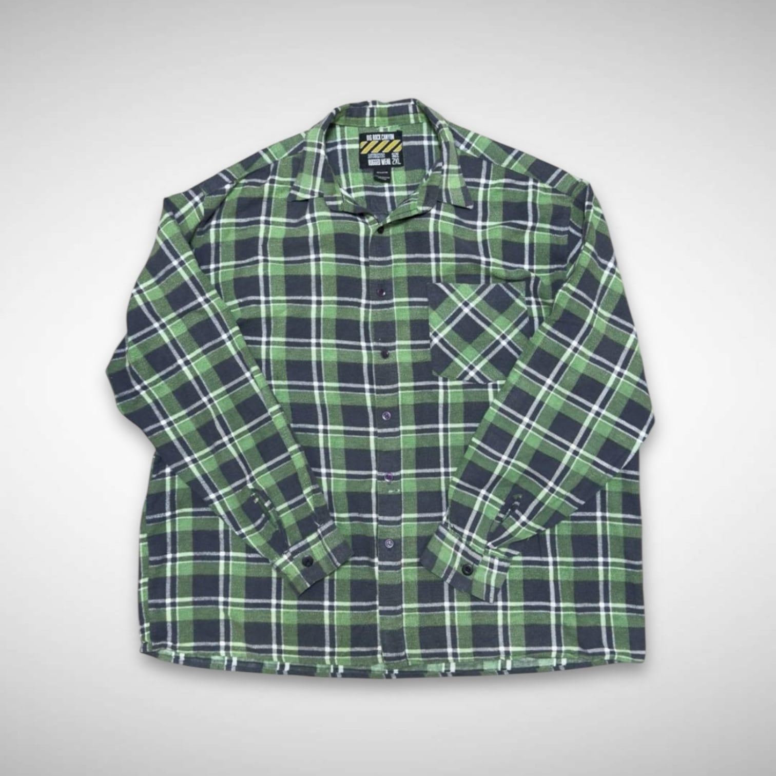 グリーンティーのような綺麗な緑と黒のプリネルチェックシャツ