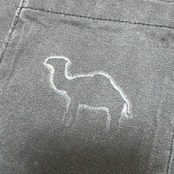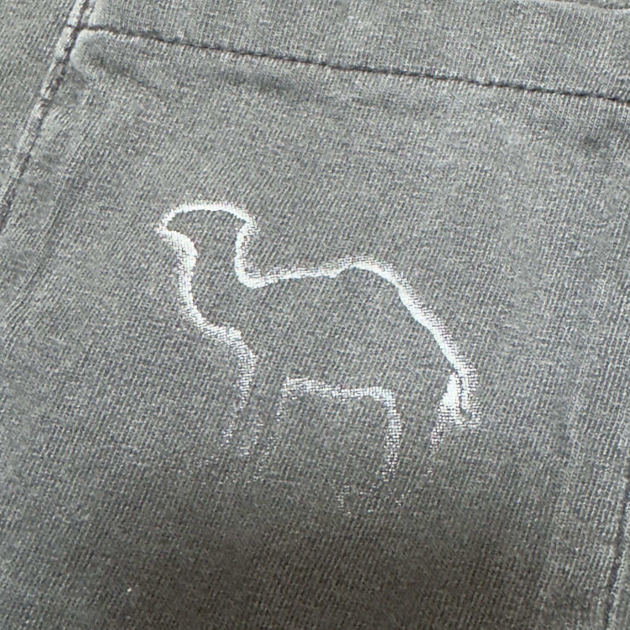 耳付きの胸ポケにはラクダロゴ、背面にはサンセットアーチと星を背景にした幻想感のあるラクダのシルエットがプリントされています