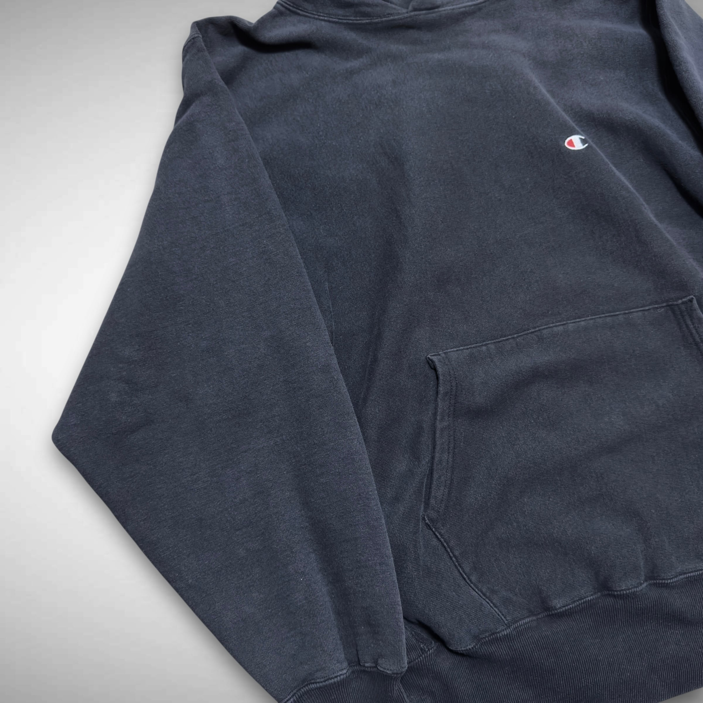 90s USA製 champion reverse weave black hoody アメリカ製 チャンピオン リバースウィーブ フーディ 目あり 無地 黒 ブラック | used clothing No7