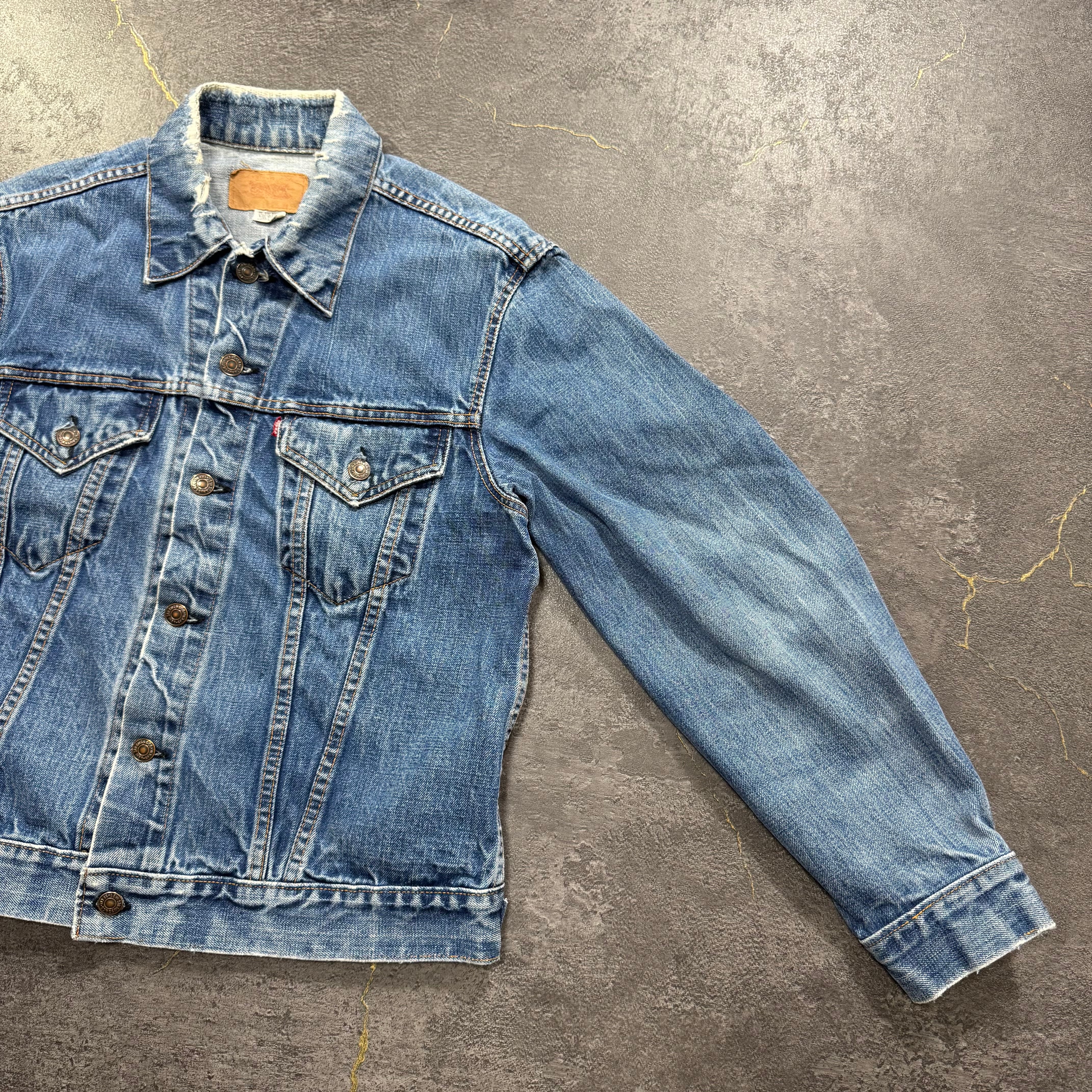 襟にリペアがありますが、雰囲気を壊すような大きなダメージや汚れはなくいい色落ちをしています