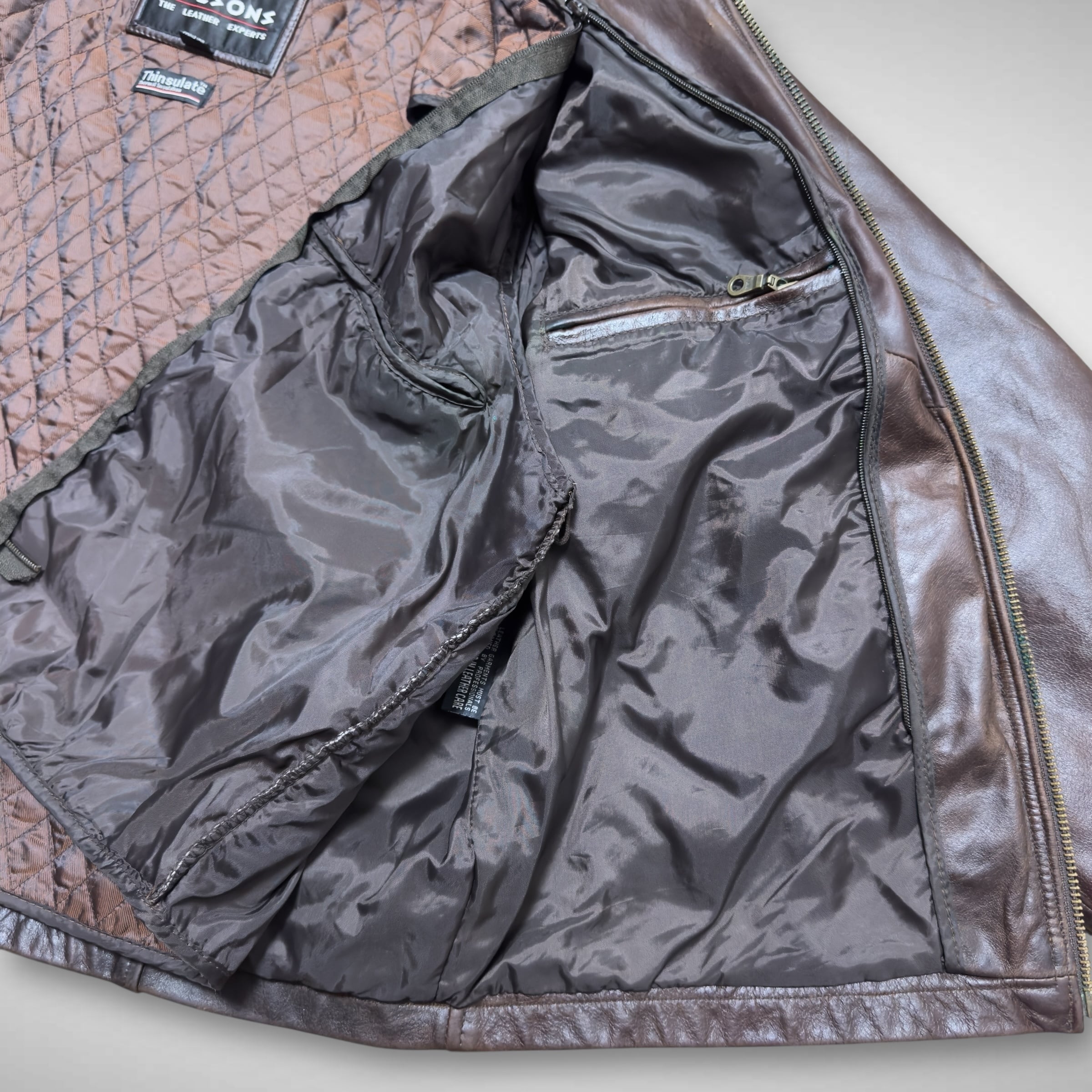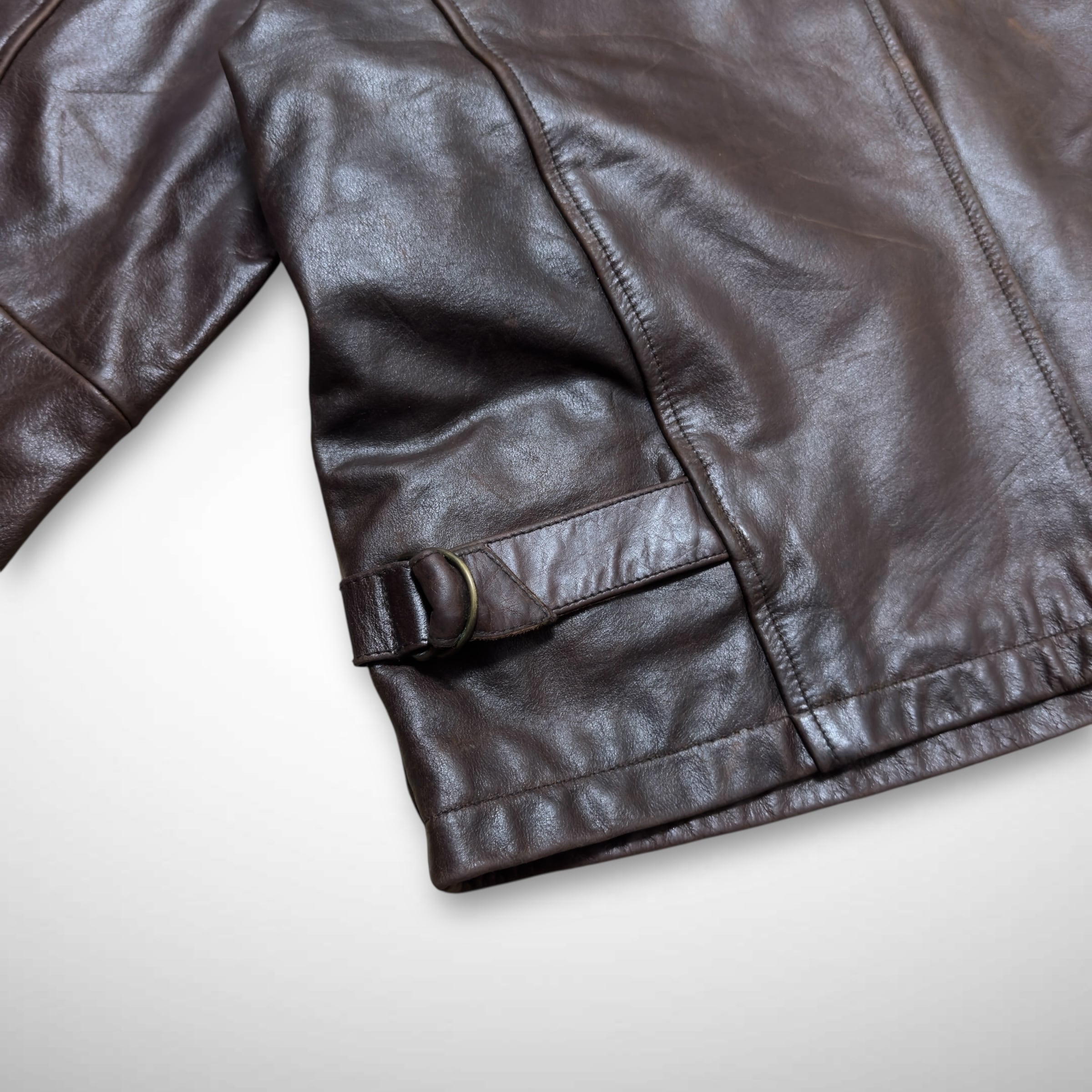 インナーには3M社の高機能中綿「Thinsulate」の取り外し可能なキルティングベストを採用。レザージャケットの弱点を克服した保温性にも優れたアイテムです(厚みがなく、着ててもかさばらないので着心地も抜群です)。レザー本体もしっかりオイルケアされており、やわらかい革質とアジがでた雰囲気のある個体になります。