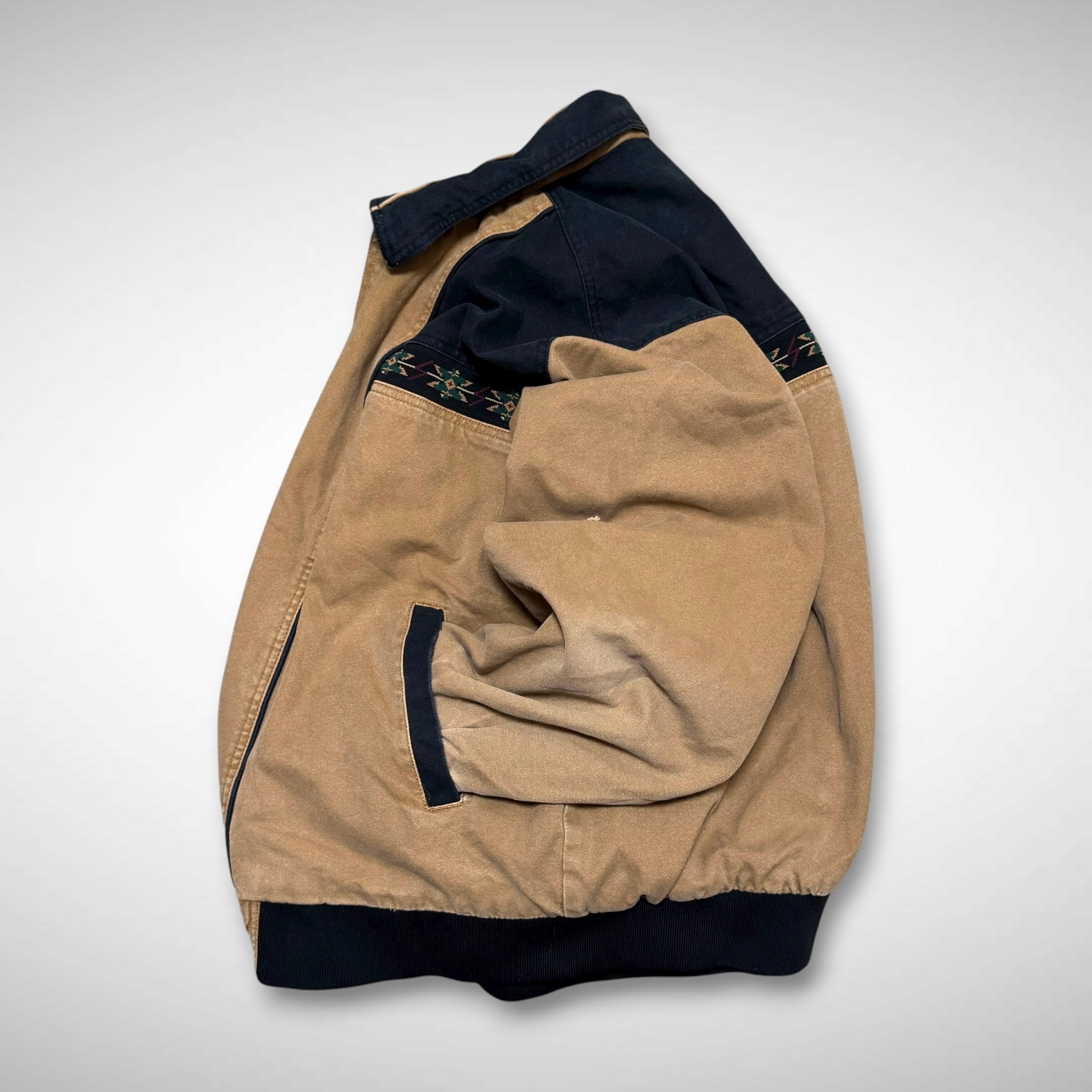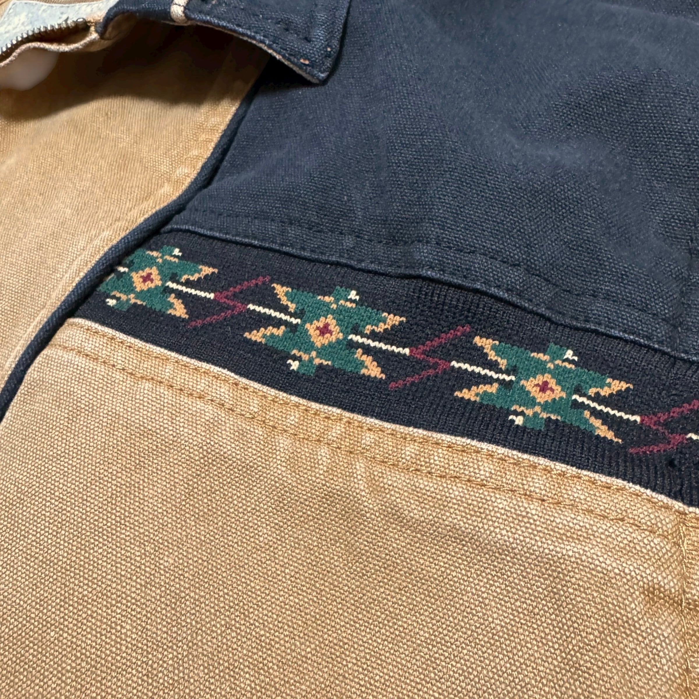 ブラック×ブラウンの好配色のネイティブ柄ダックジャケット。フェードしたカラーが魅力の一枚です。