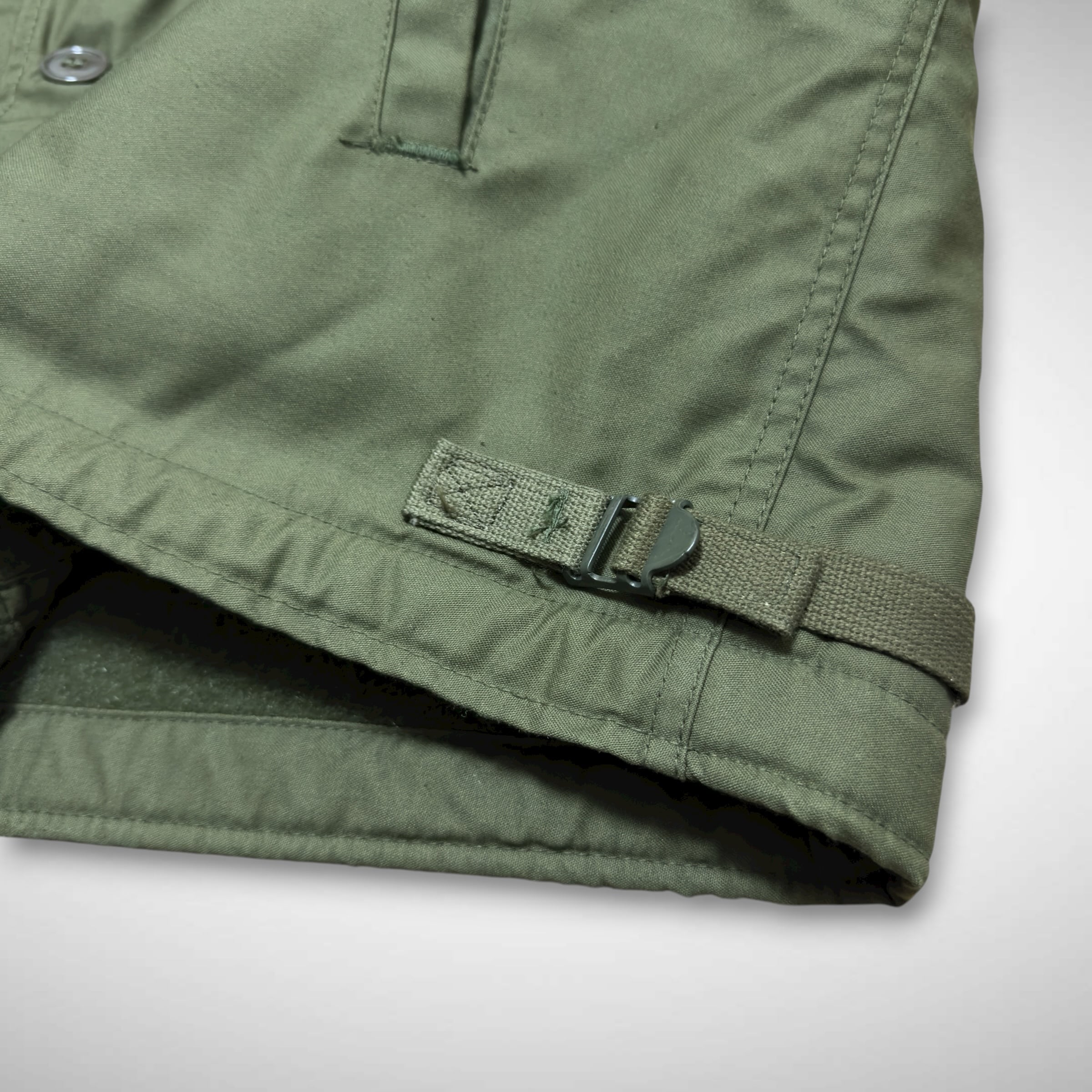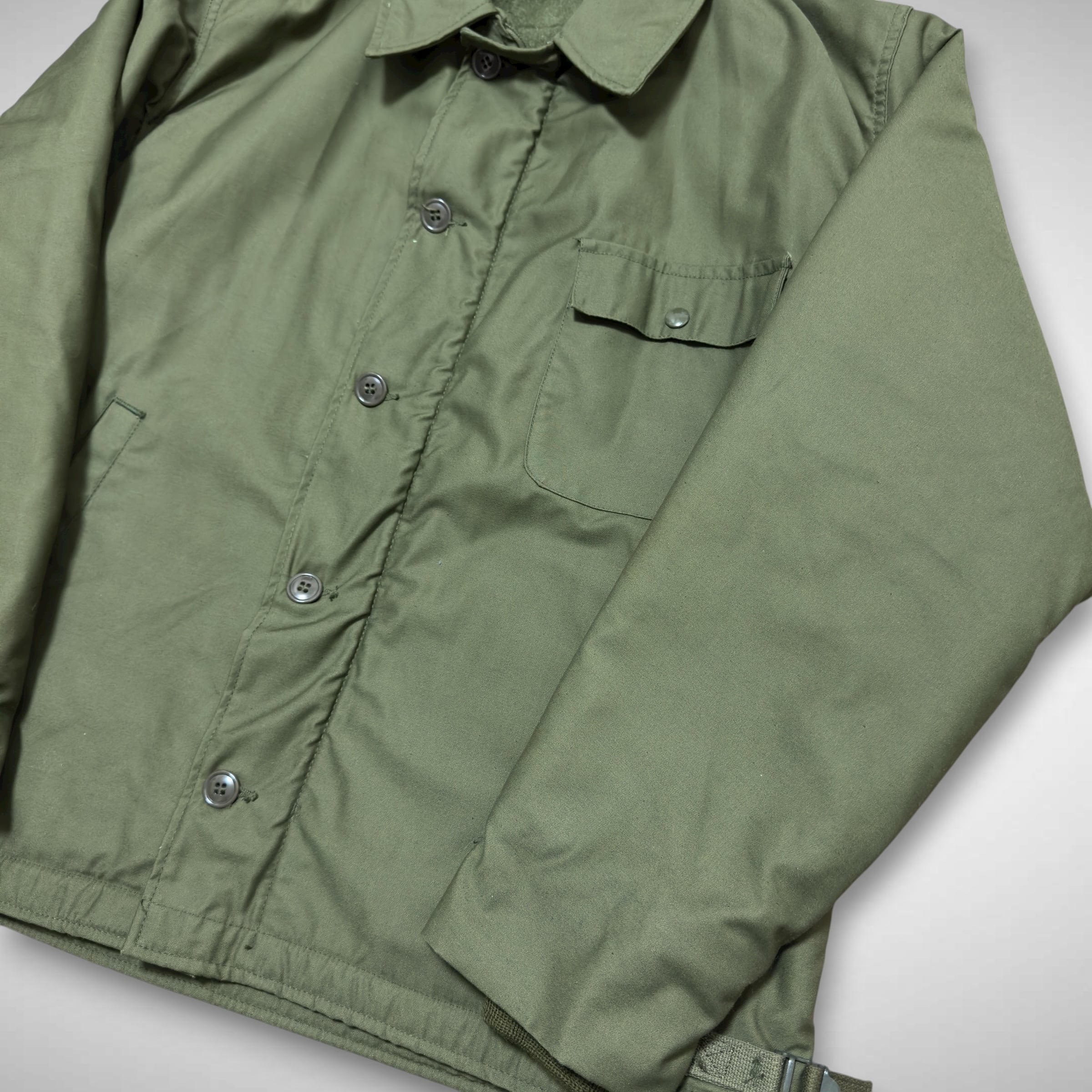 タグがとれてますので詳しい年代判別は難しいですが、scovill gripper zipが採用された60年から70年代頃のa2デッキジャケットになります