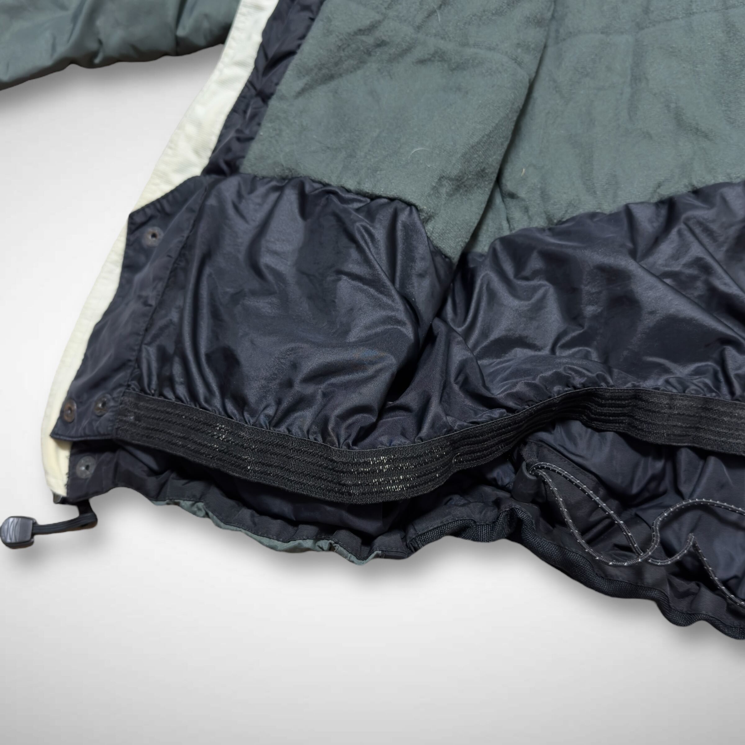 中綿入りで保温性もありながら、両胸とバックに配置されたメッシュポケットが中の湿気を逃してくれるのでタウンユースでも使いやすい仕様です。裾にはドローコードがついてるので絞って短丈にしての着用も可能です。