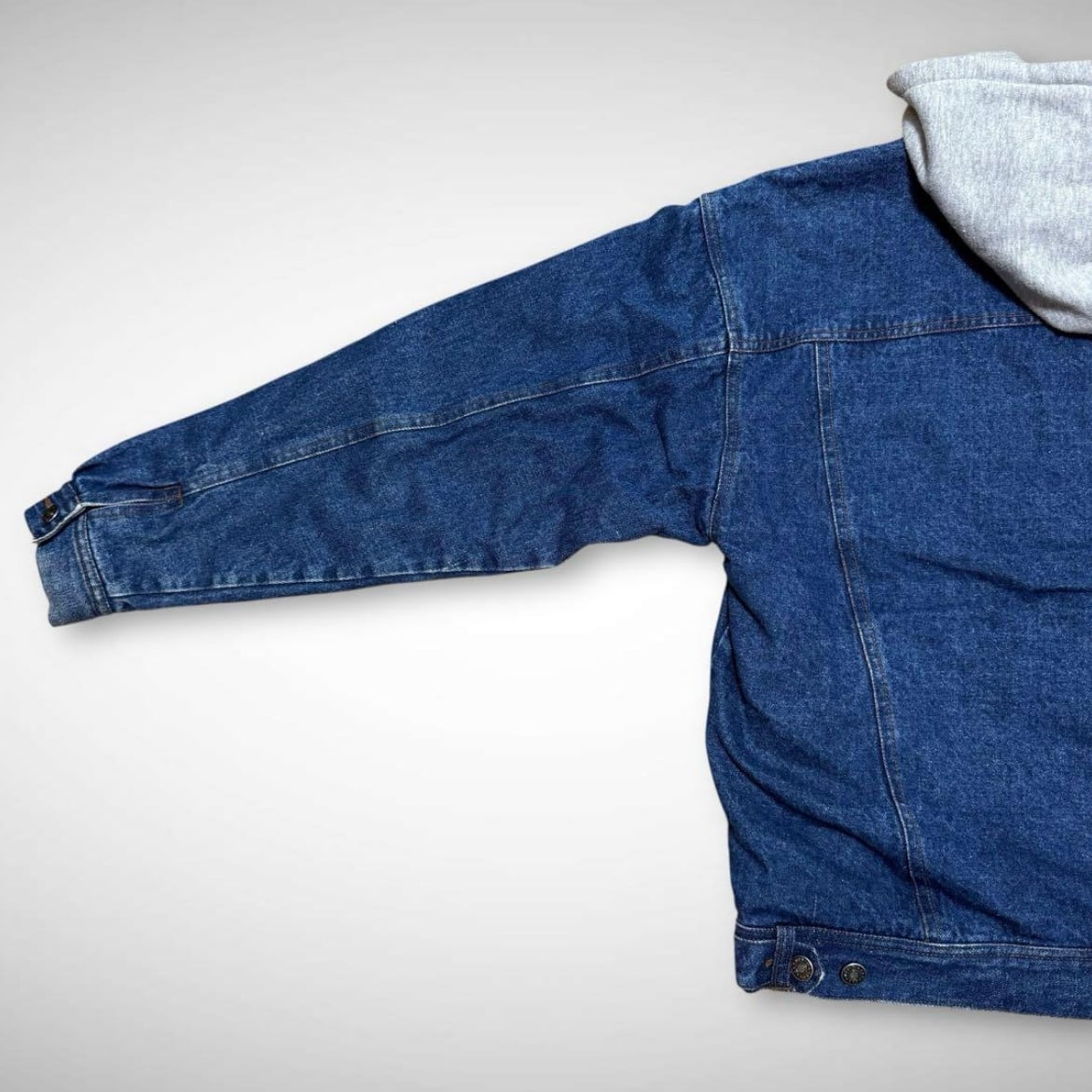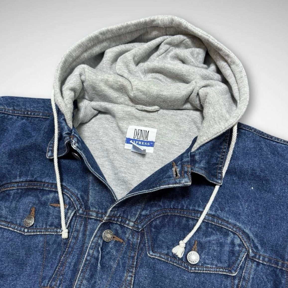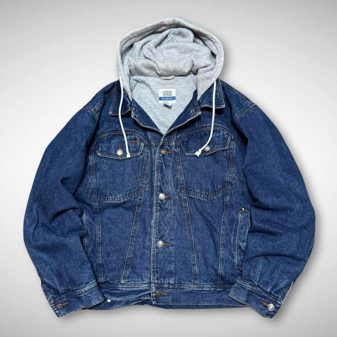 薄手のコットン裏地とパーカーがレイヤードされたデザインが、なんともy2kらしいイナタイデニムジャケット
