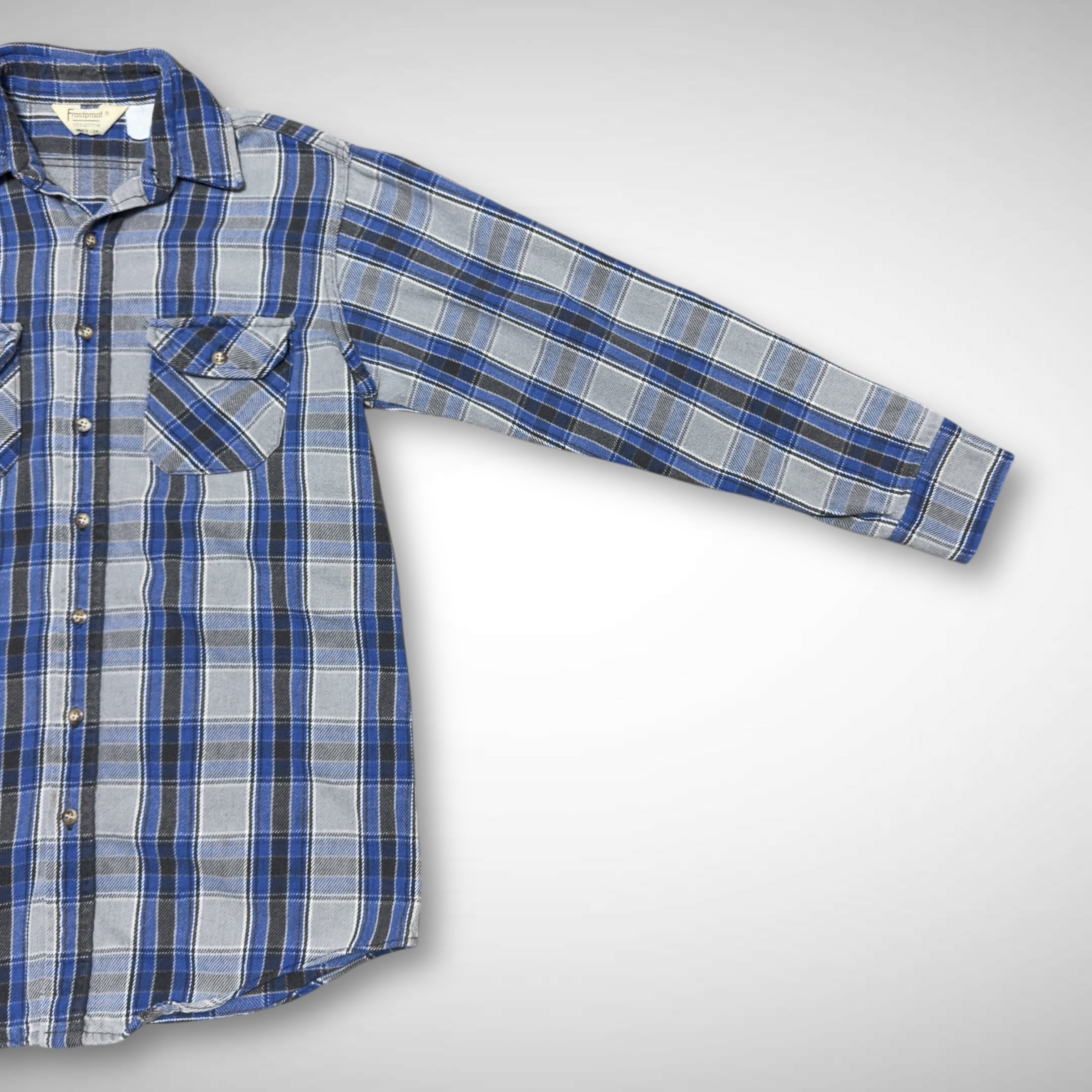 70s USA製 Flostproof vintage heavy flannel nel-shirt ビンテージ ヘビーネルシャツ ヘビネル 青グレーチェック | used clothing No7