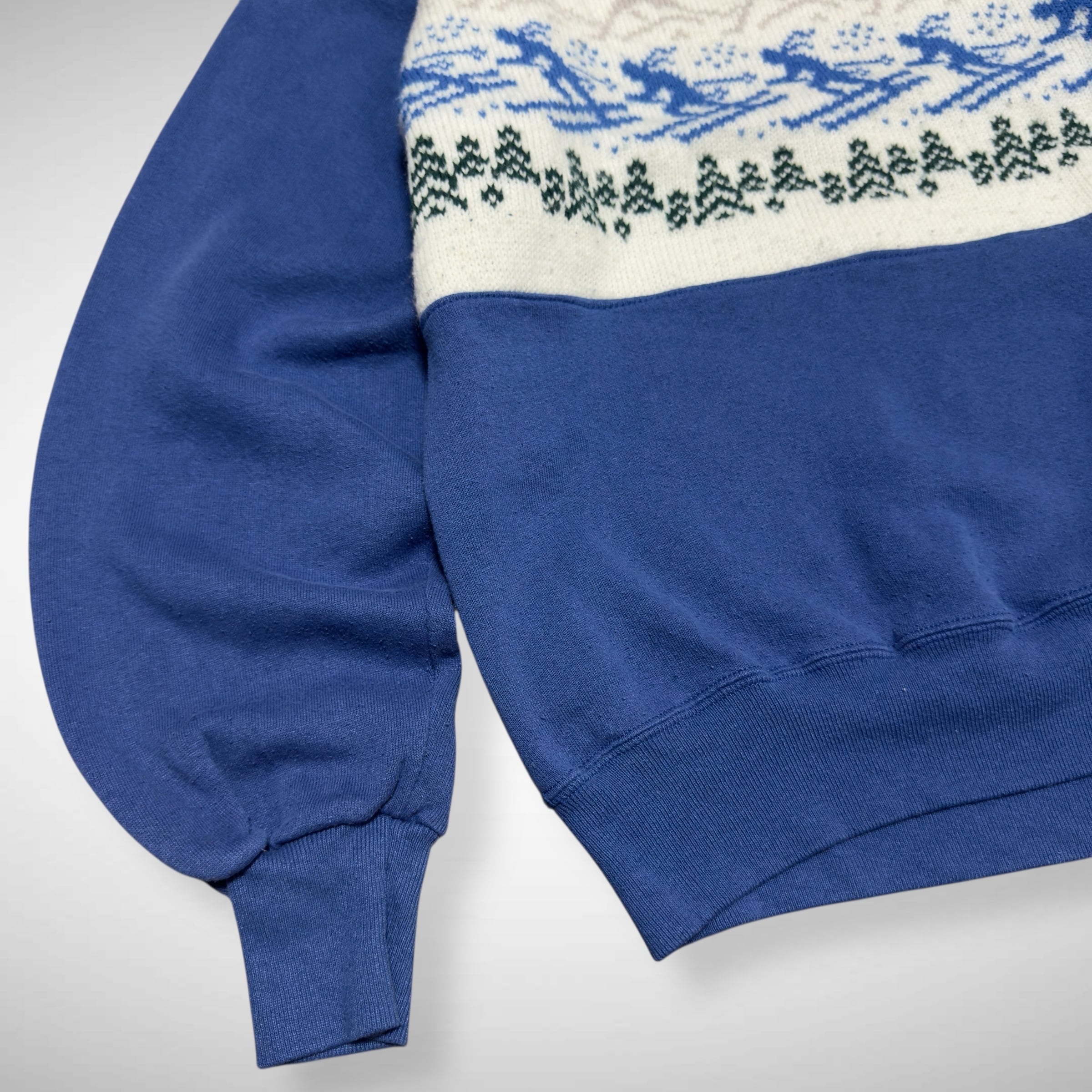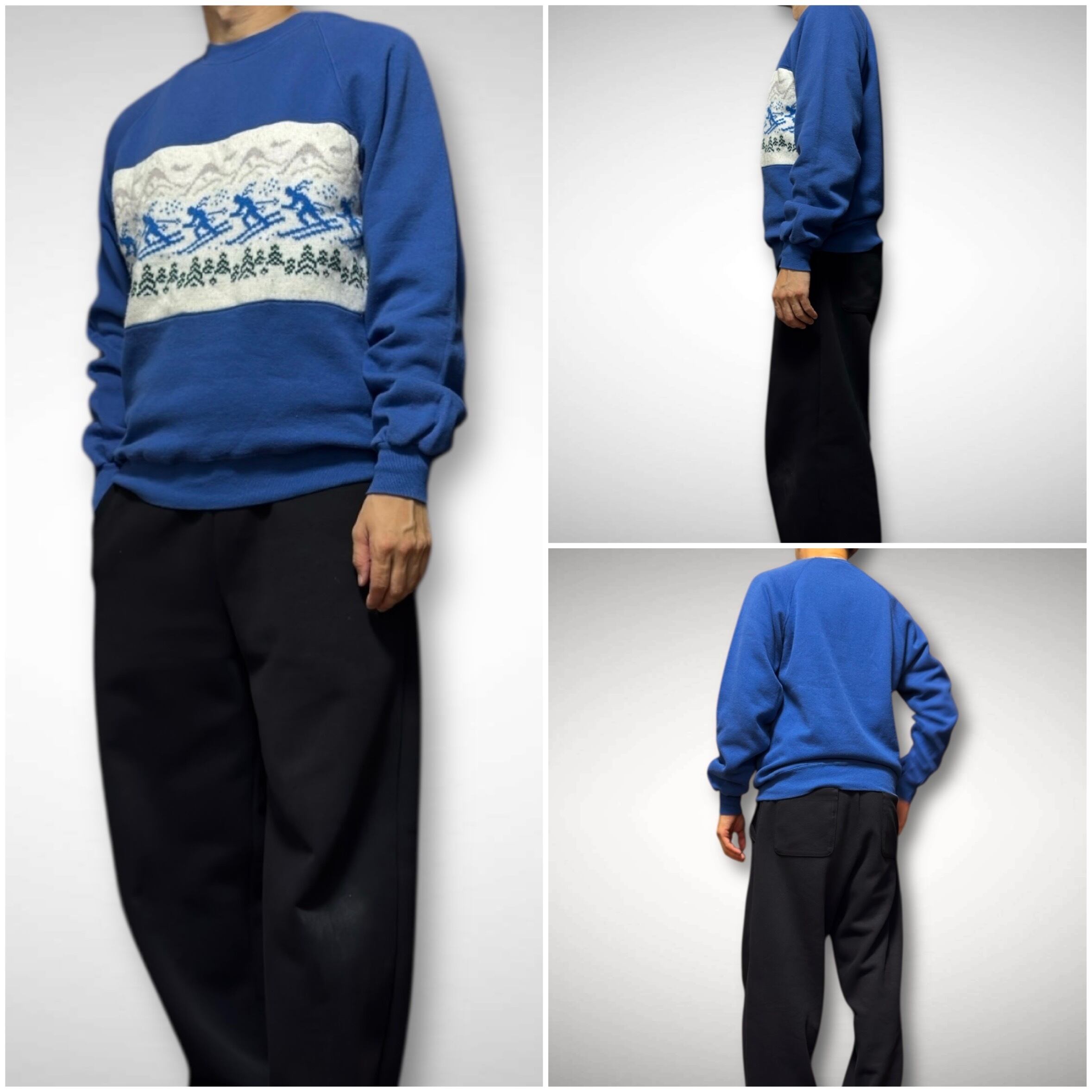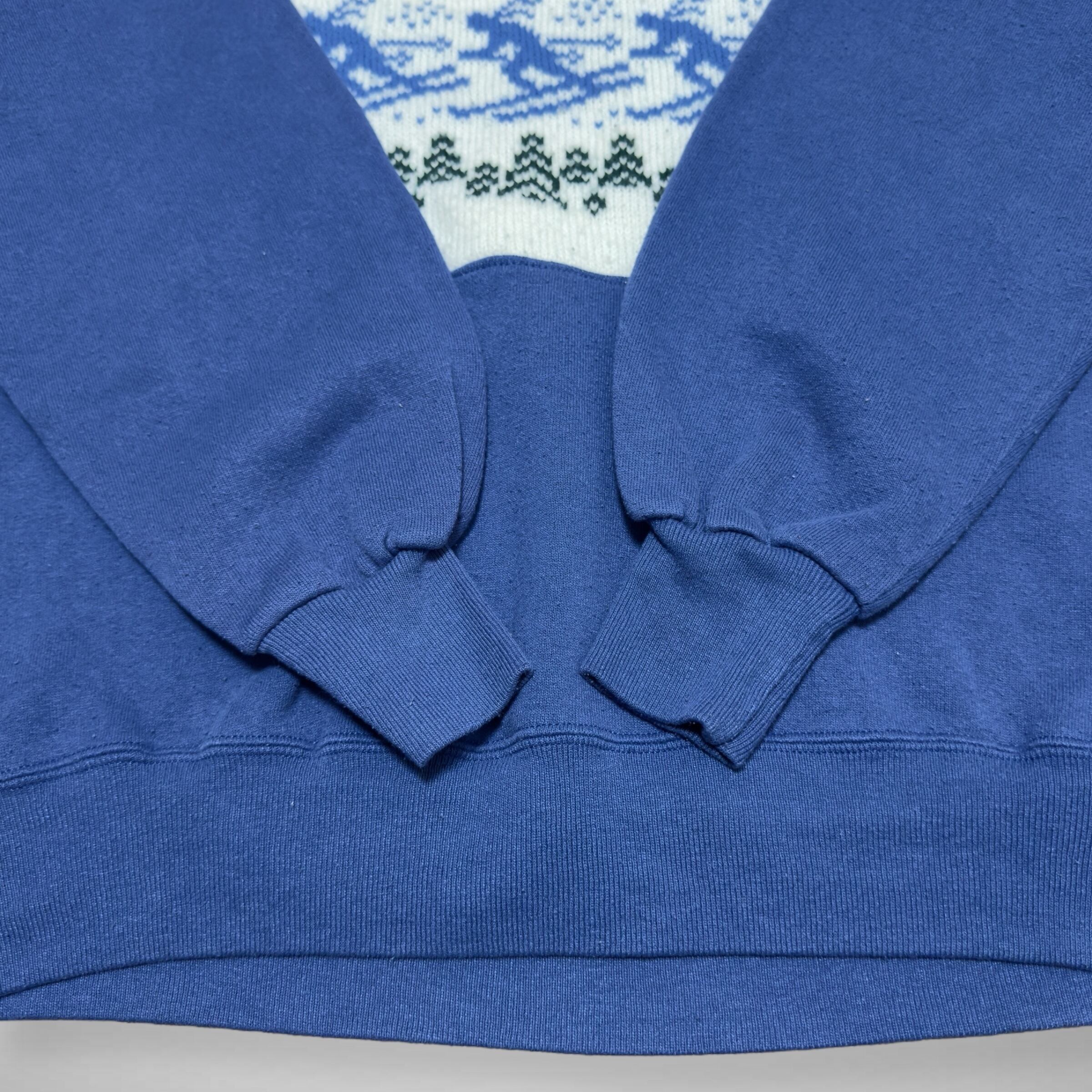80s JERZEES の無地スウェットにニットをドッキングさせたリメイクスウェット。ニットも当時物らしいデザインを使用しており一点物の個体になります