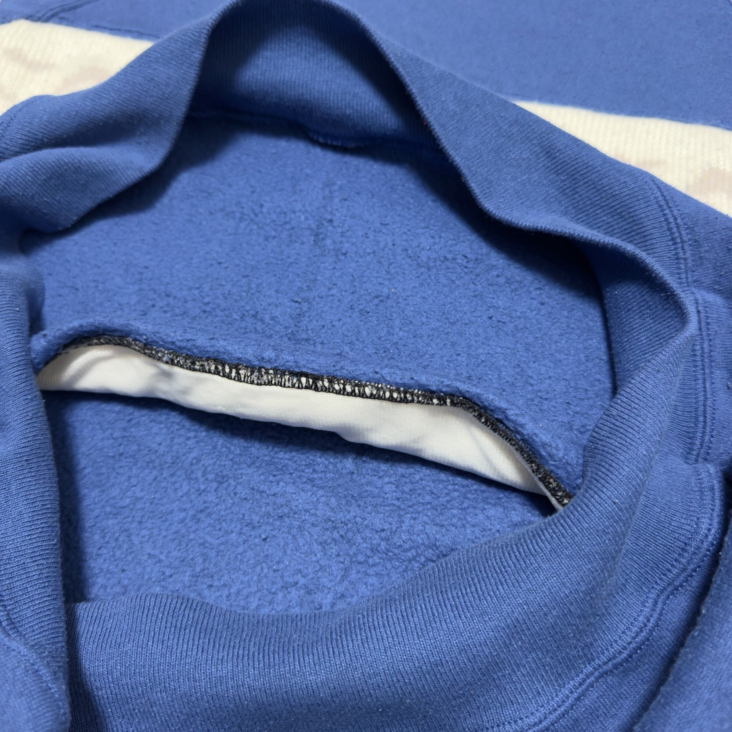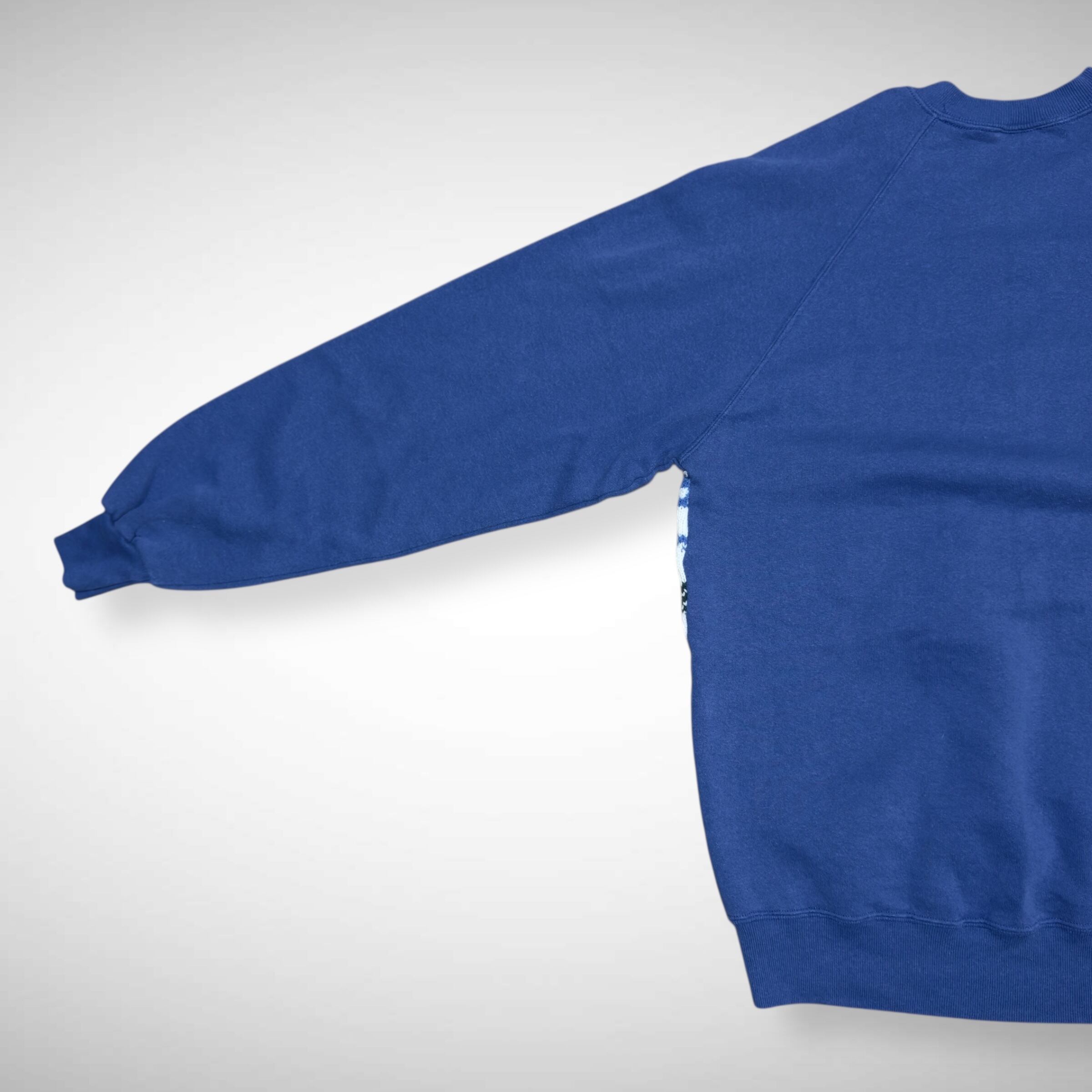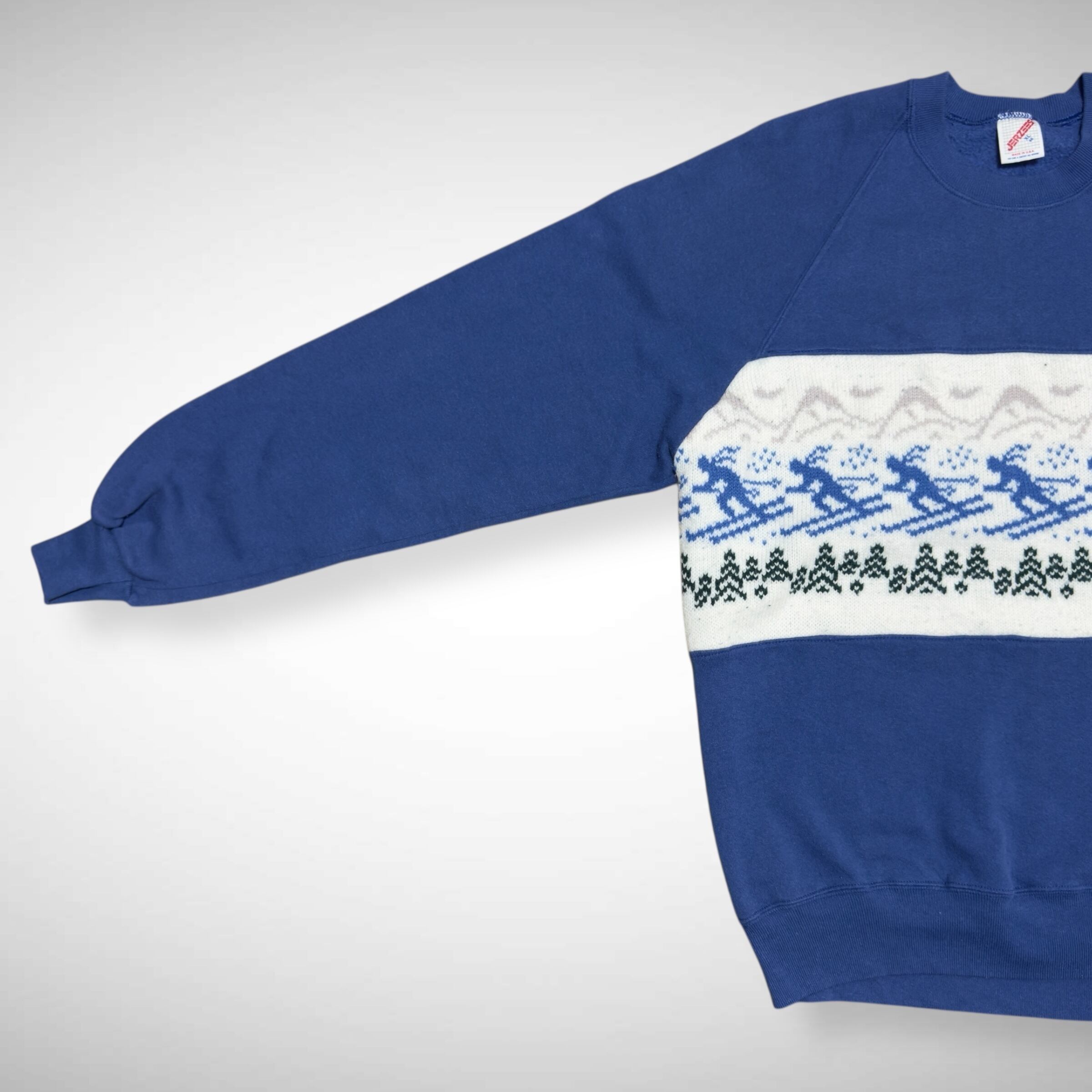 80s JERZEES の無地スウェットにニットをドッキングさせたリメイクスウェット。ニットも当時物らしいデザインを使用しており一点物の個体になります
