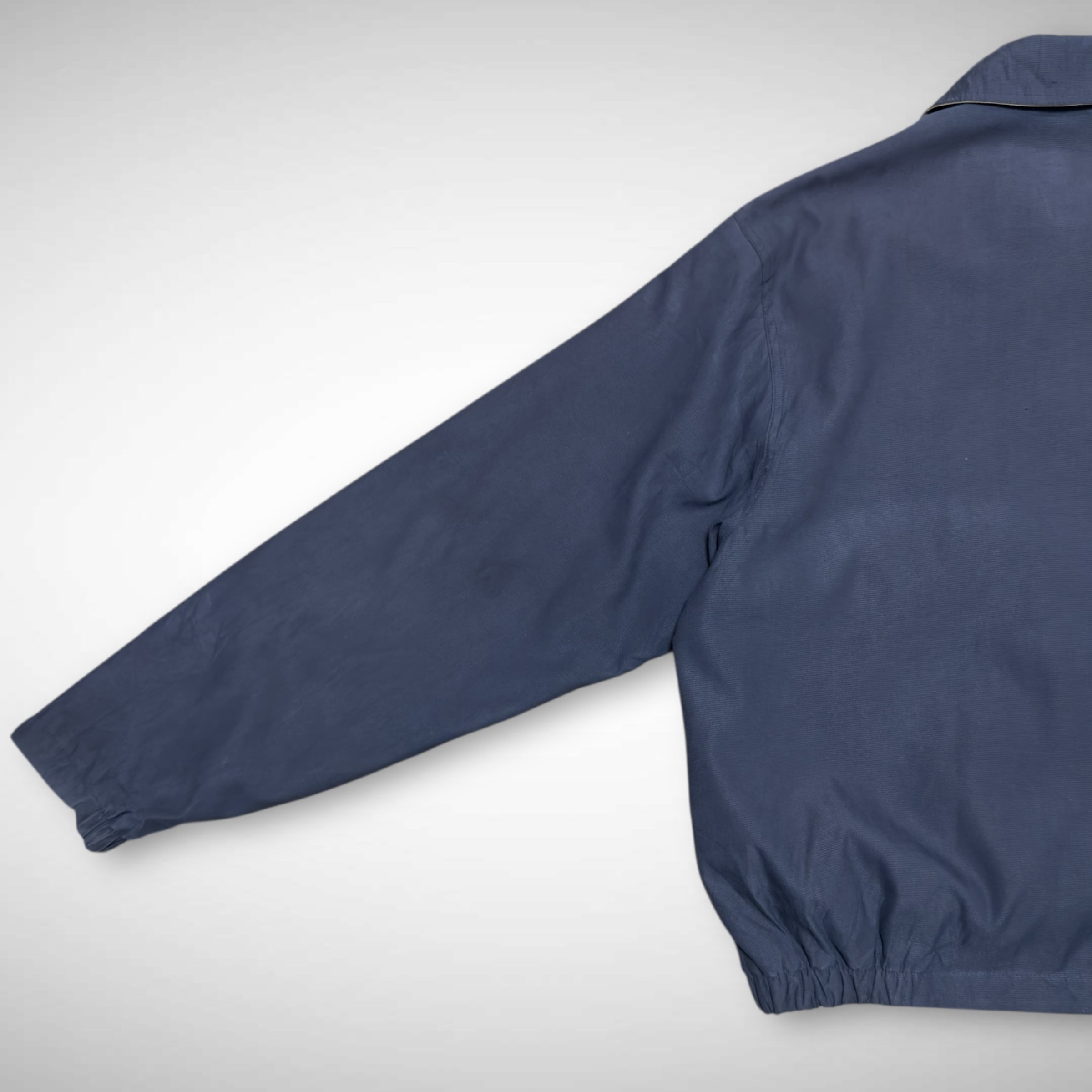 くすんだネイビーグレーの落ち着いたトーンで、ポリエステル×ナイロン混紡による品のあるマットな質感が魅力。短丈でバランスのとれたシルエットがほどよくこなれた印象に仕上がります
