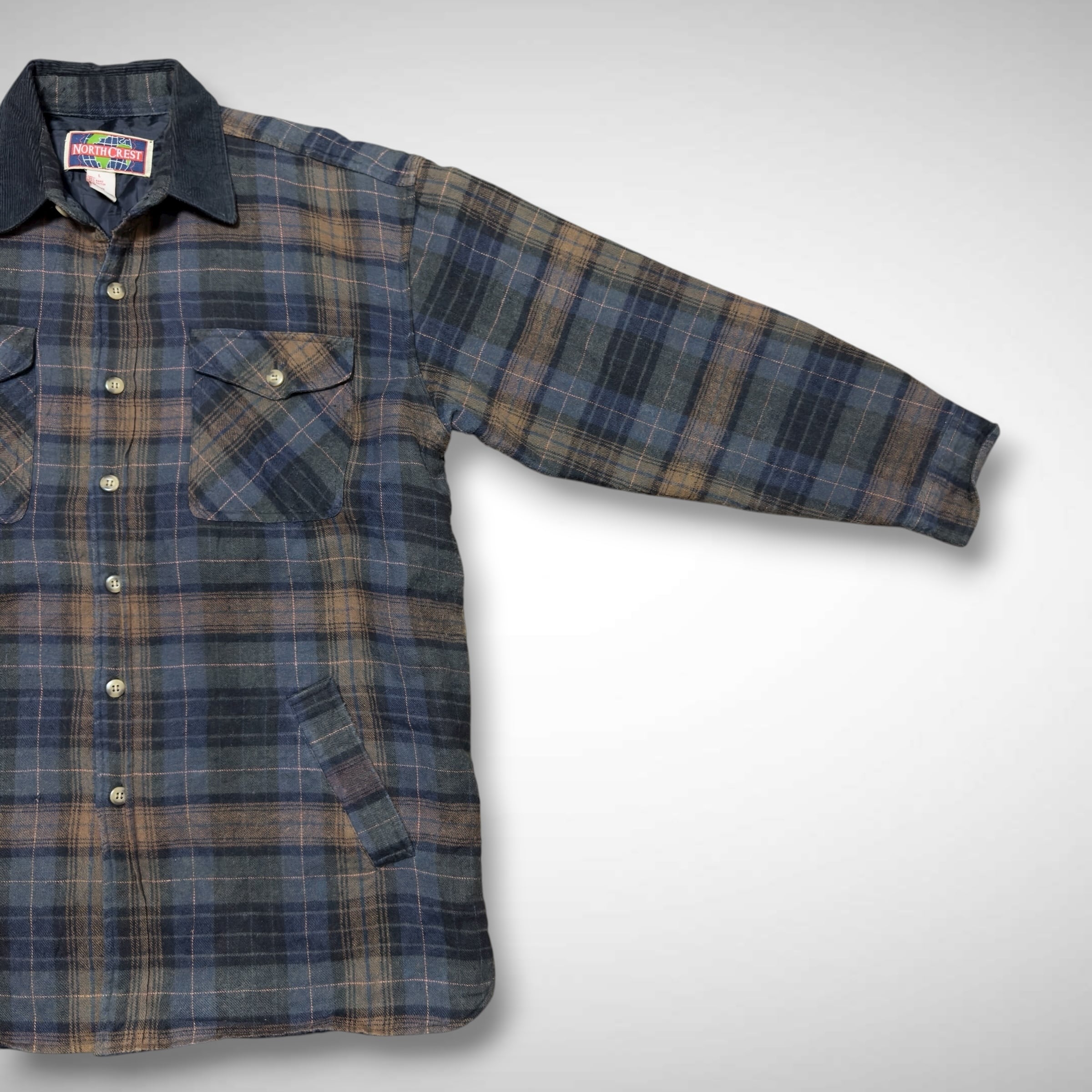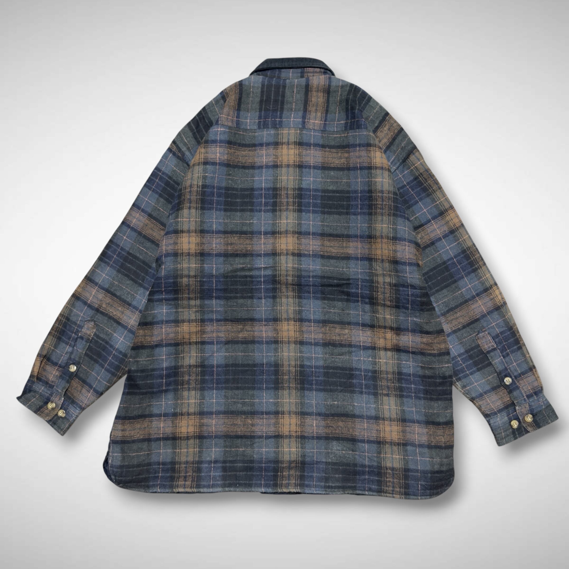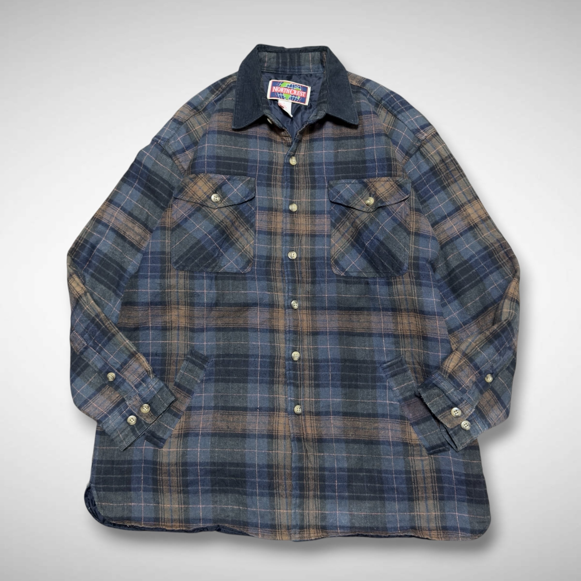 ブラウン×ネイビーをベースにピンクのストライプがはいる好配色。襟はコーデュロイの切り替えになります。