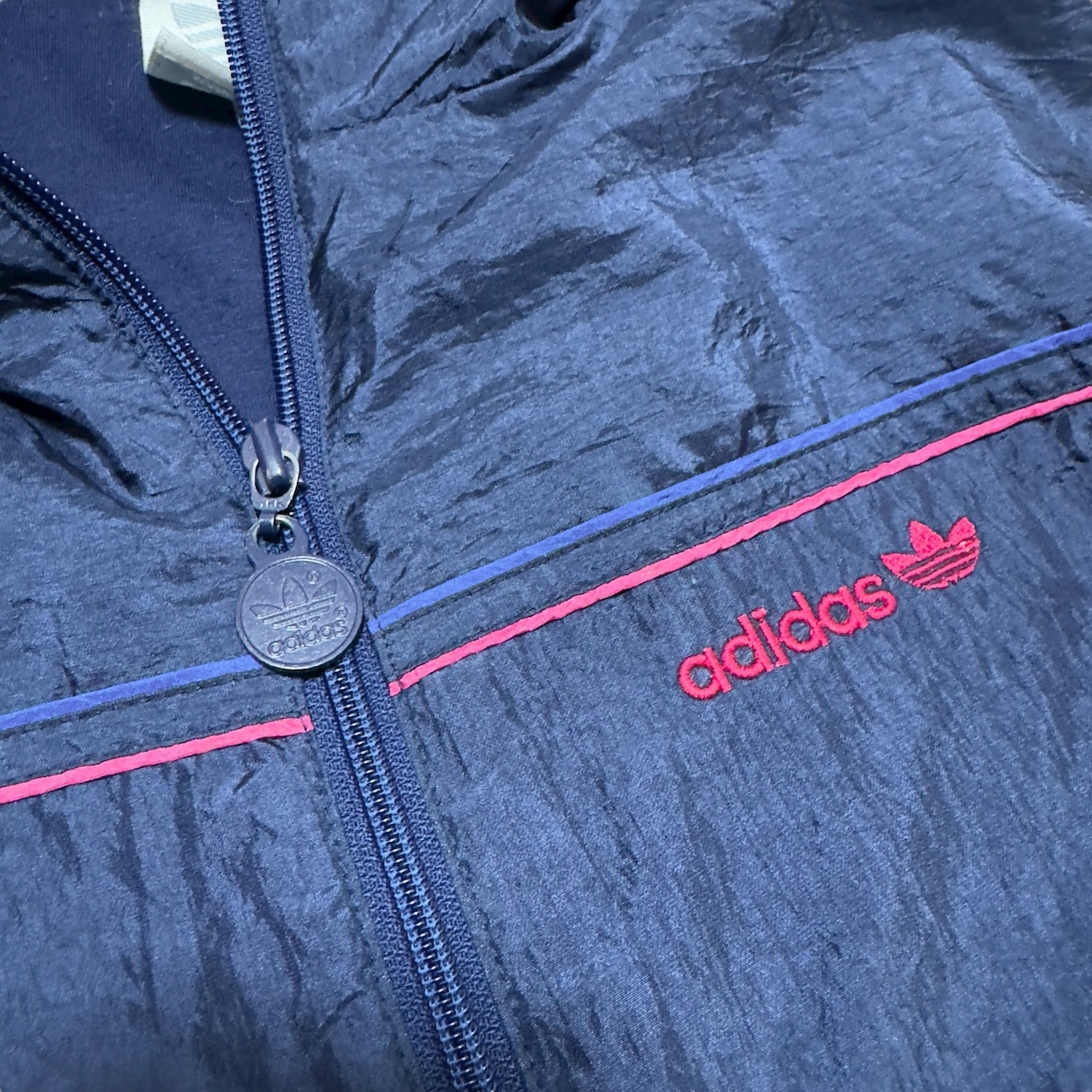 ネイビーボディにブルー×ピンクのパイピングが効いてるデザイン。短丈でリブもしっかりきいていて、シルエット抜群です!