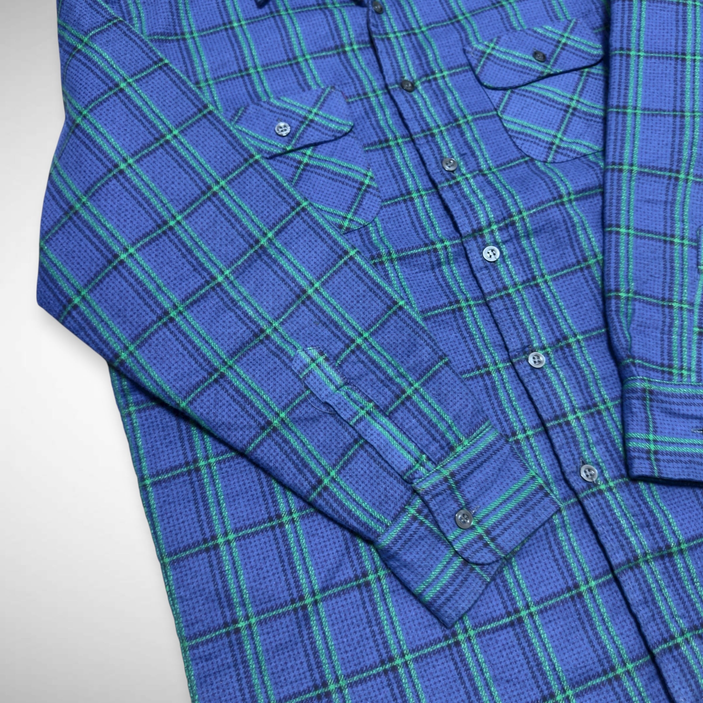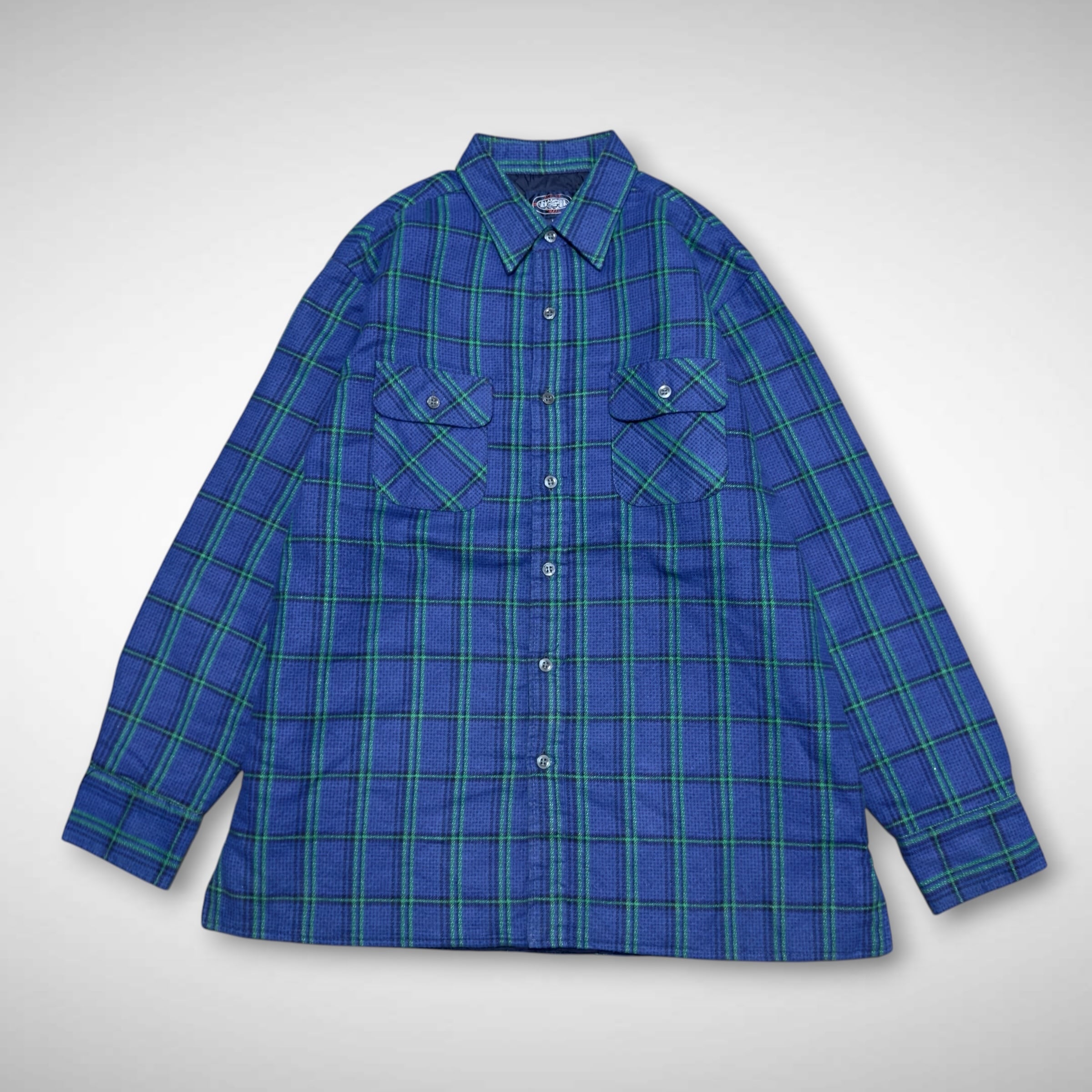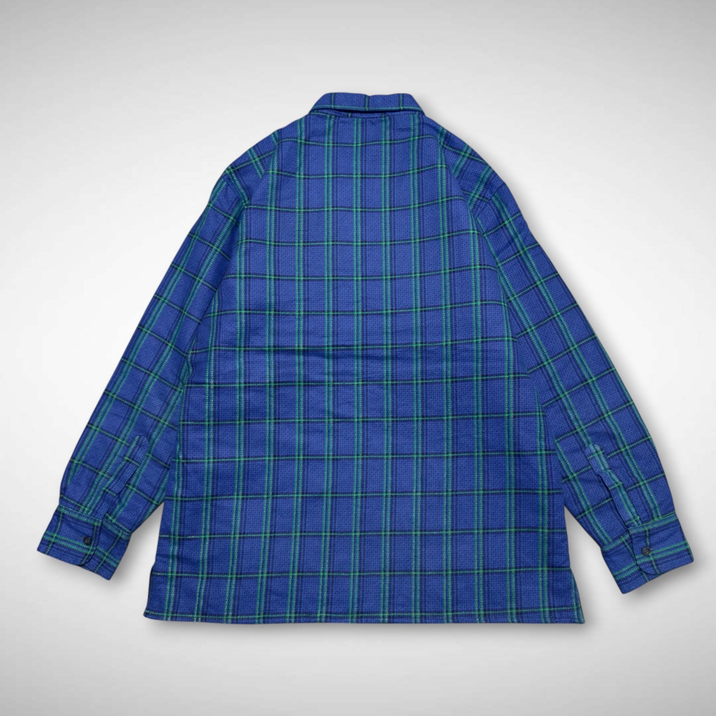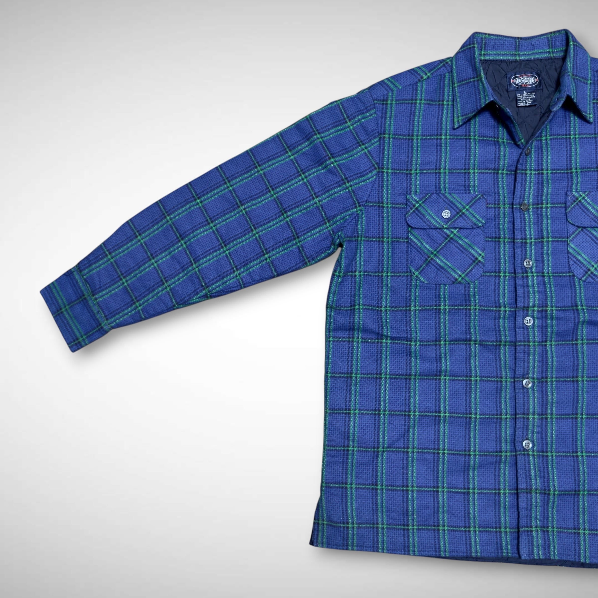 発色のいいブルーベースのカラーにグリーンがはいったチェック柄。薄手のキルティングなので、中にパーカーをいれてあげてライトアウター感覚でも着用できます。