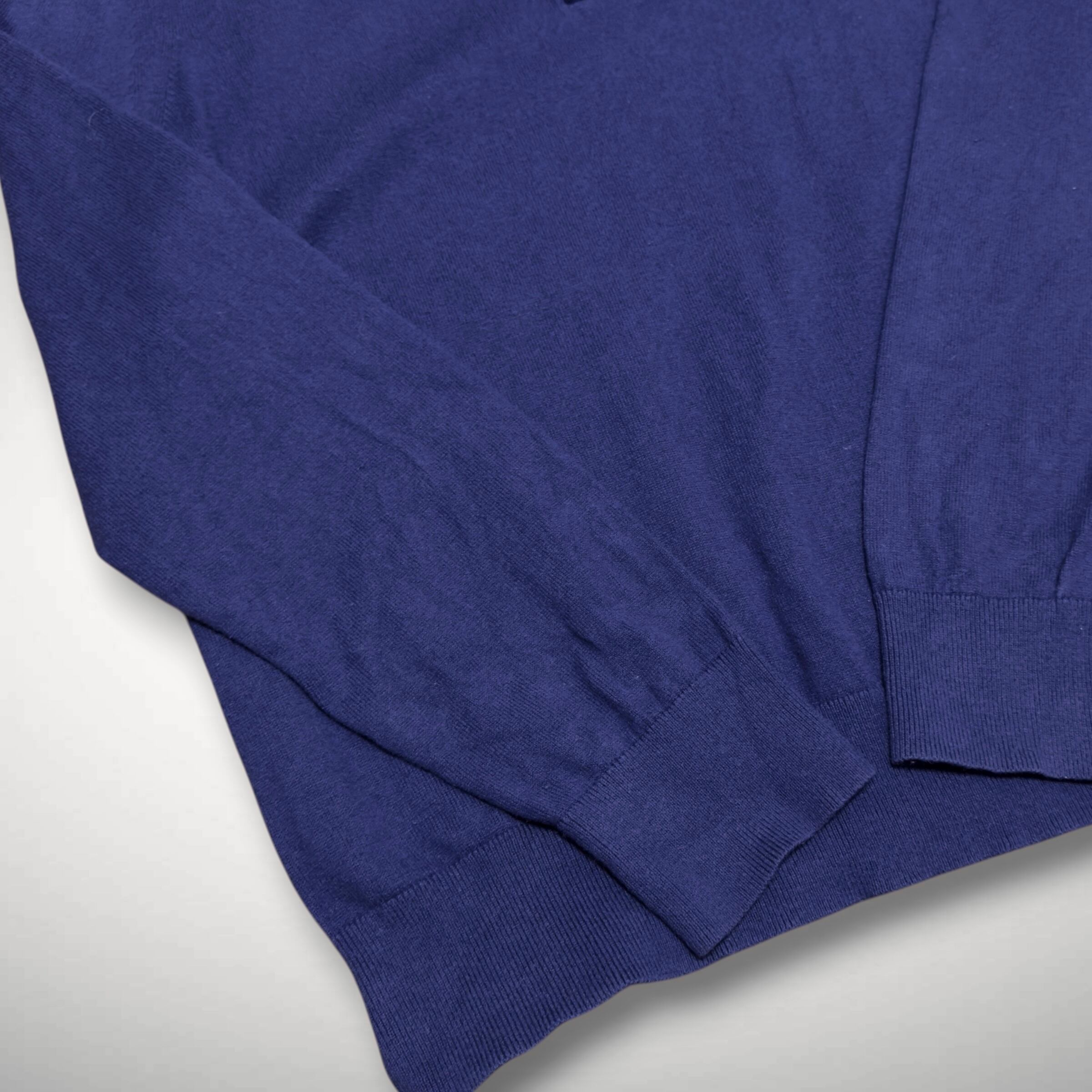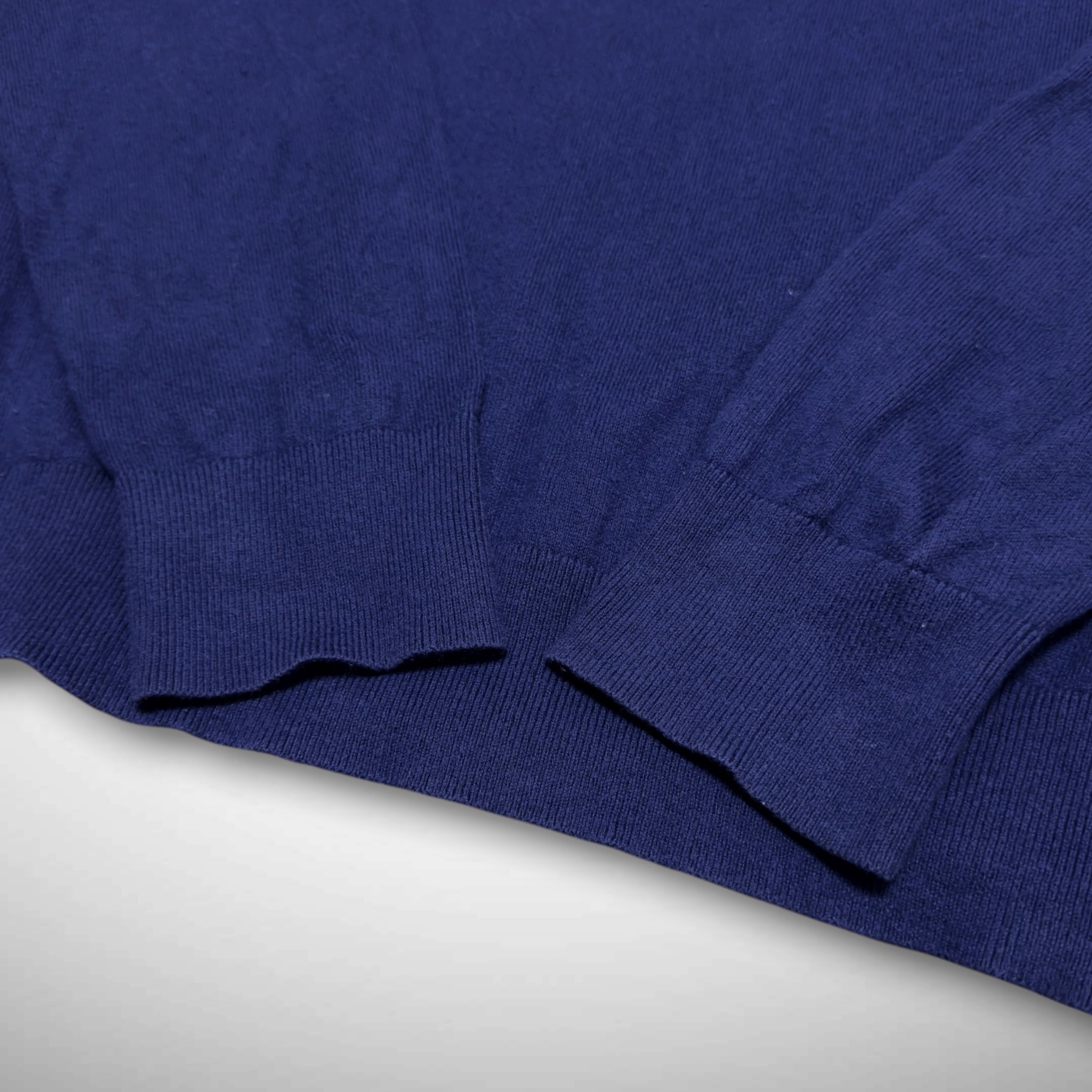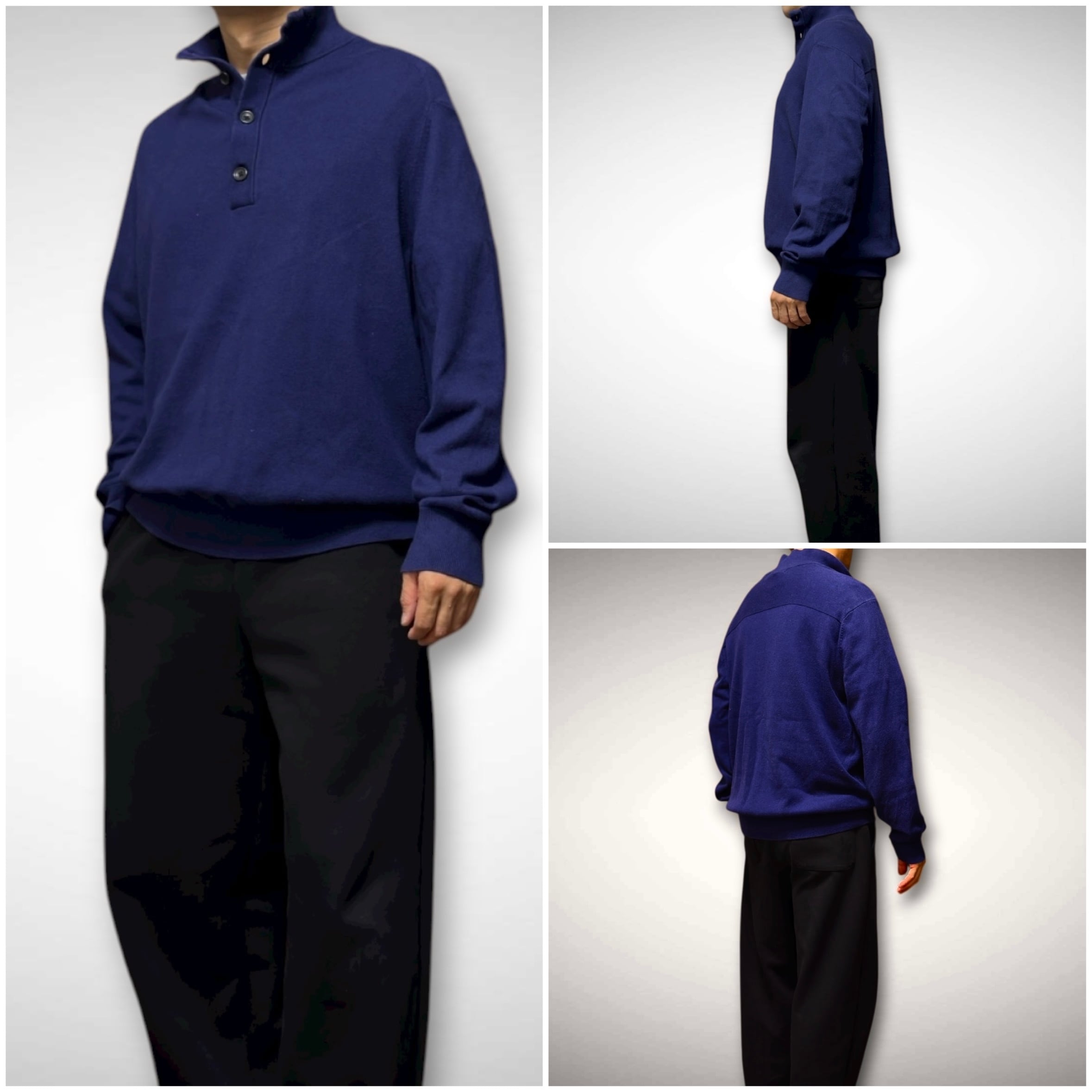 ナス紺にフェードしたバナリパのカシミアコットンニット。肌触りもよくトロミのある柔らかい質感になります