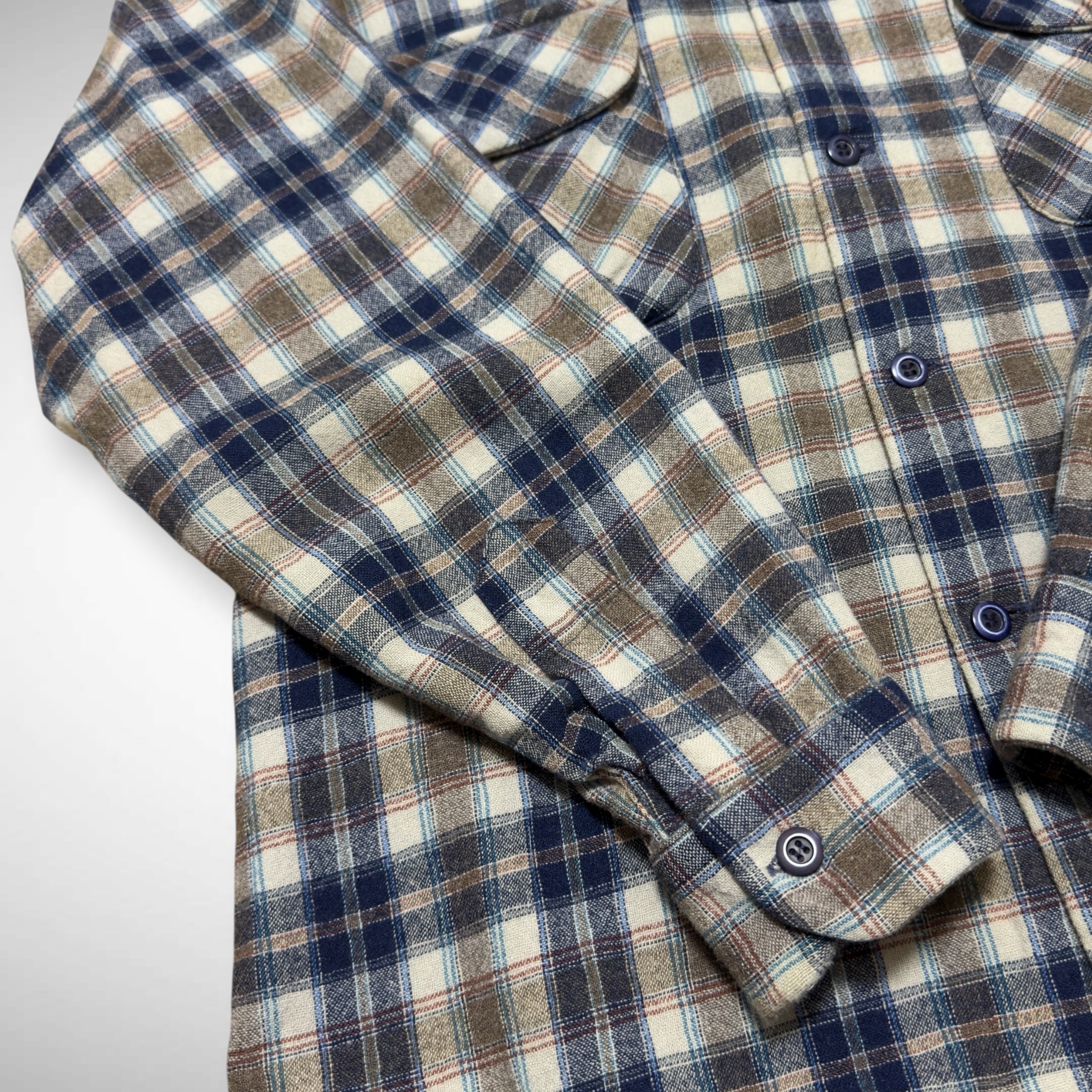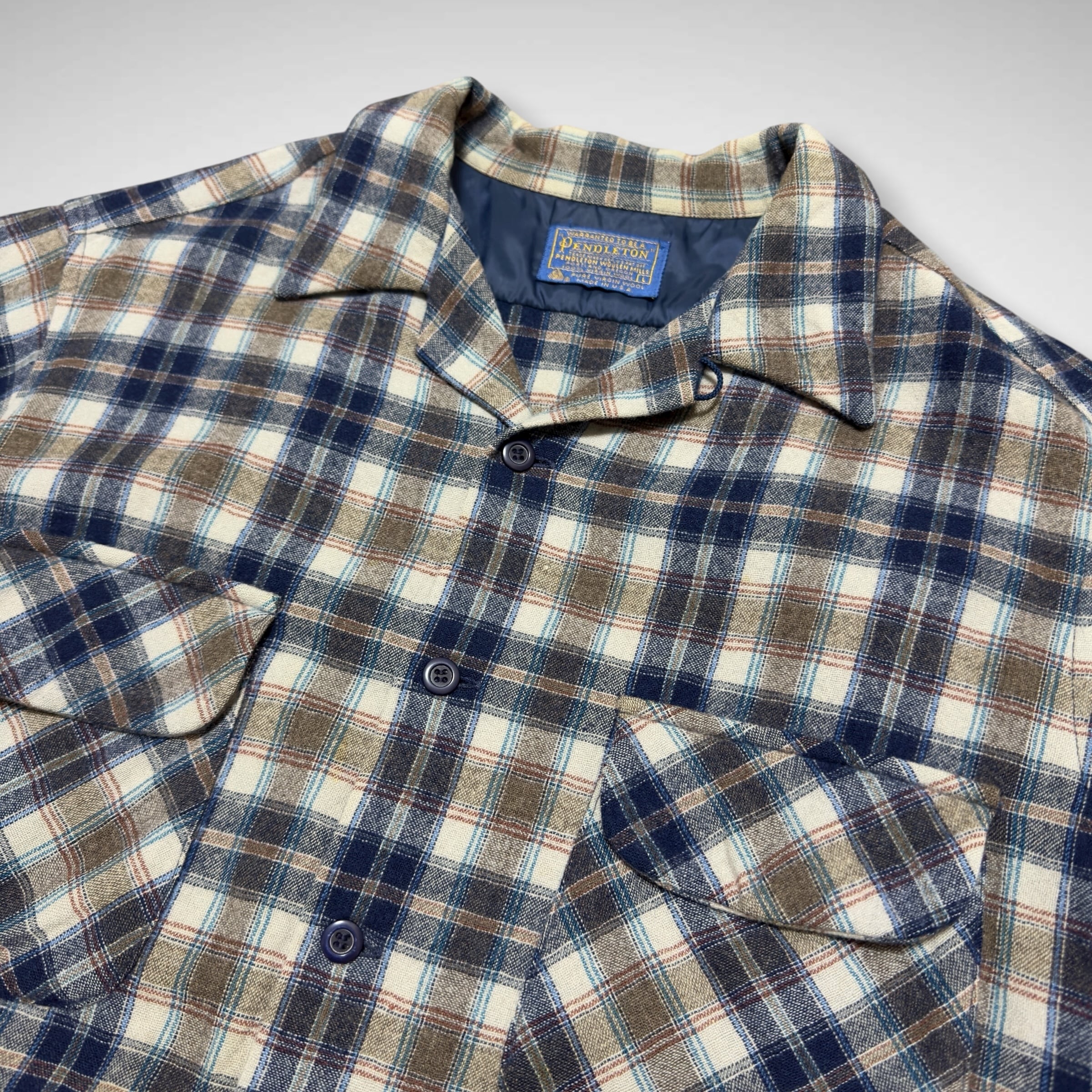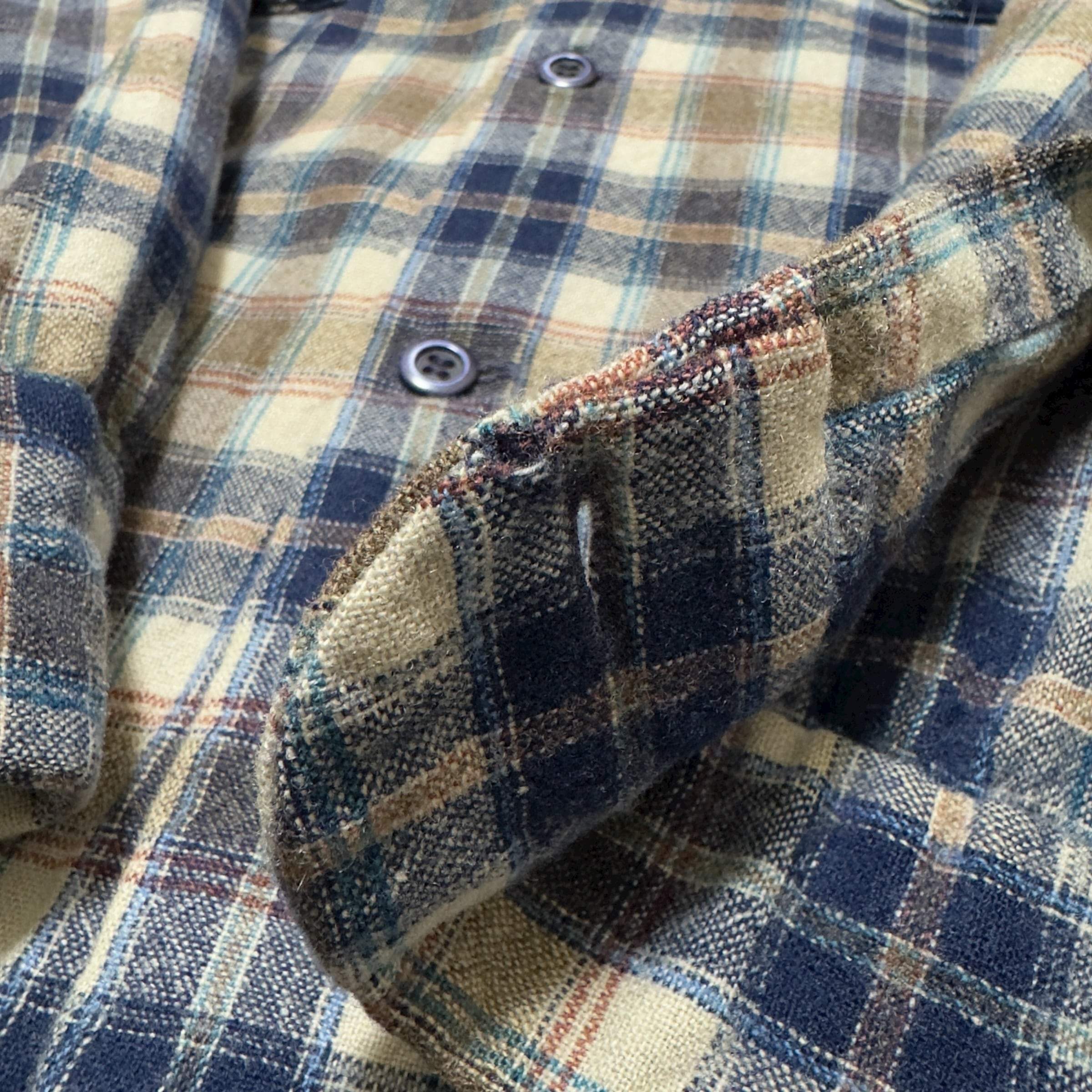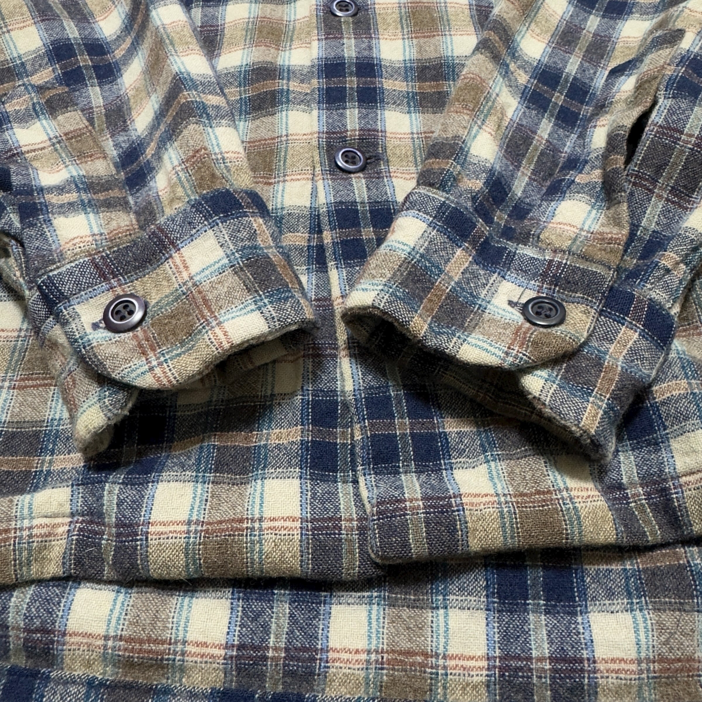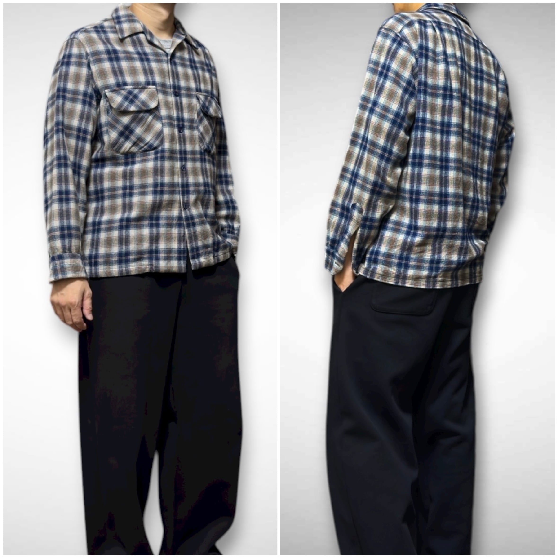 70年代、アメリカ製のペンドルトンボードシャツ。ブラウン×ネイビーのオンブレチェックになります。