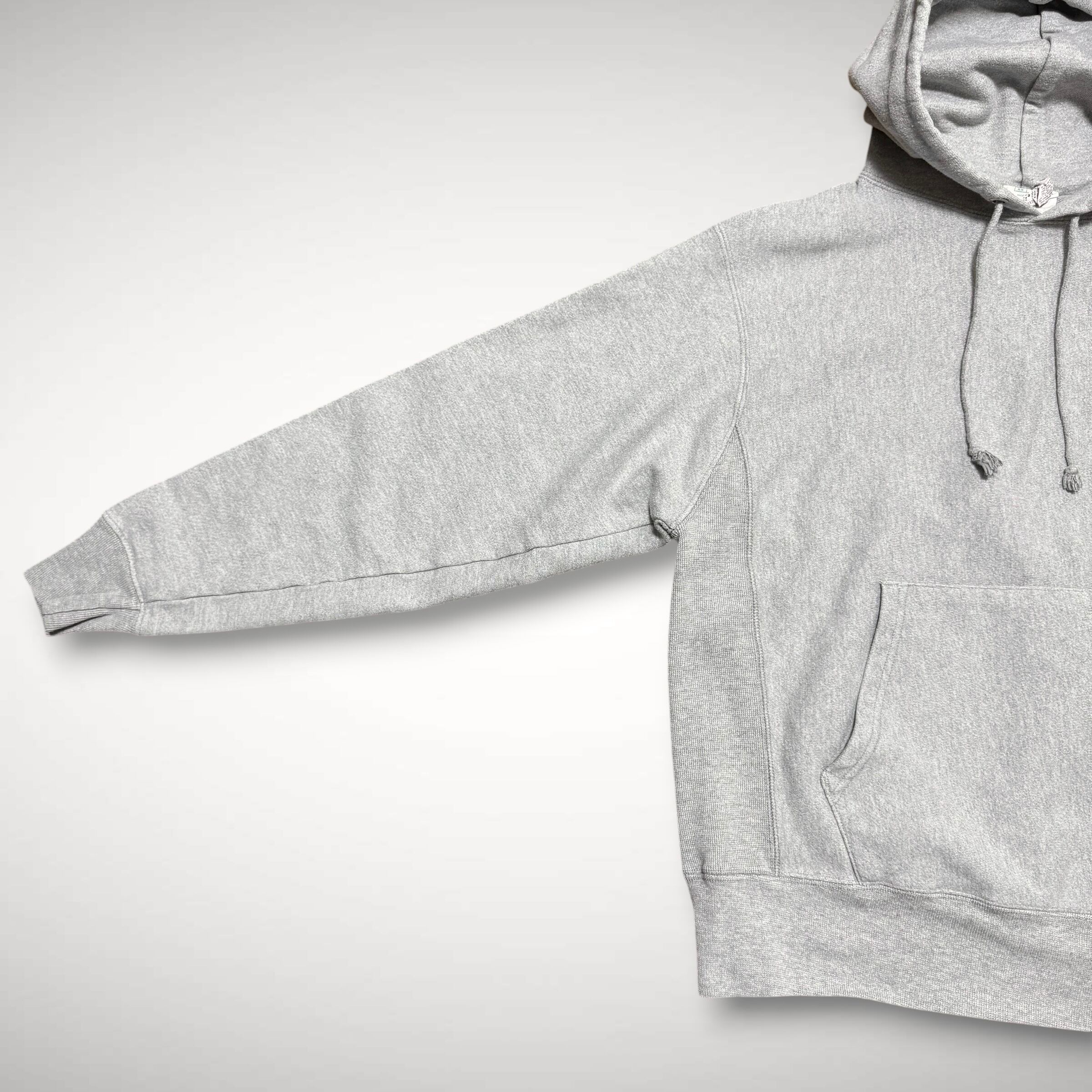 海外企画のリバース。現行より1発古い物にはなりますが、ビンテージのリバースより、圧倒的にシルエットと着心地がいいのがうれしいポイント◎(フードの形も良いです!)