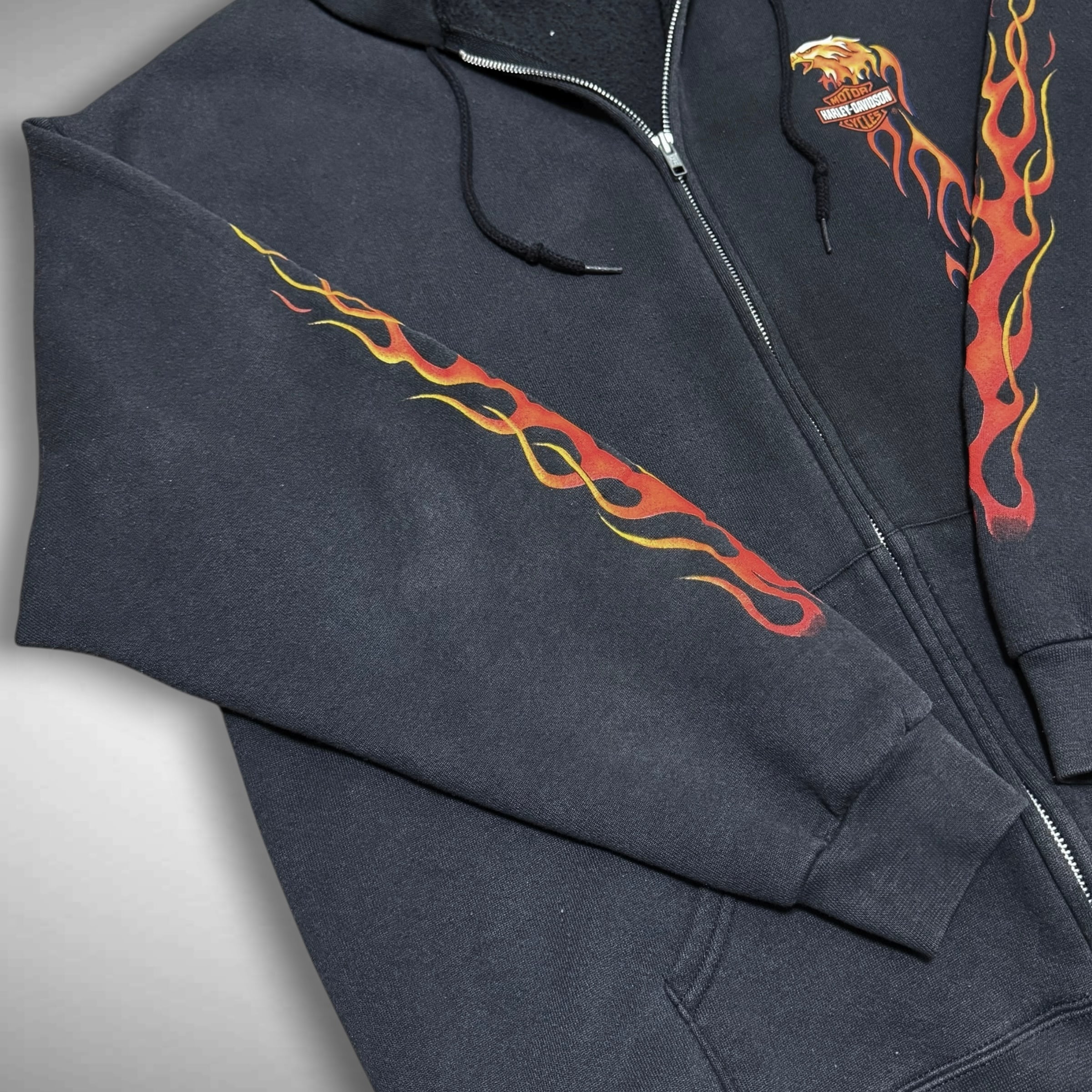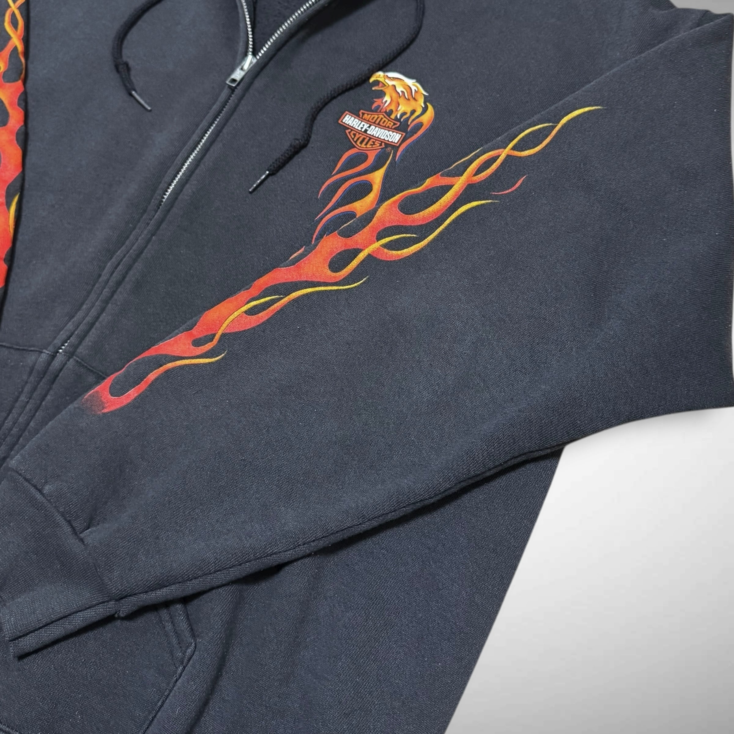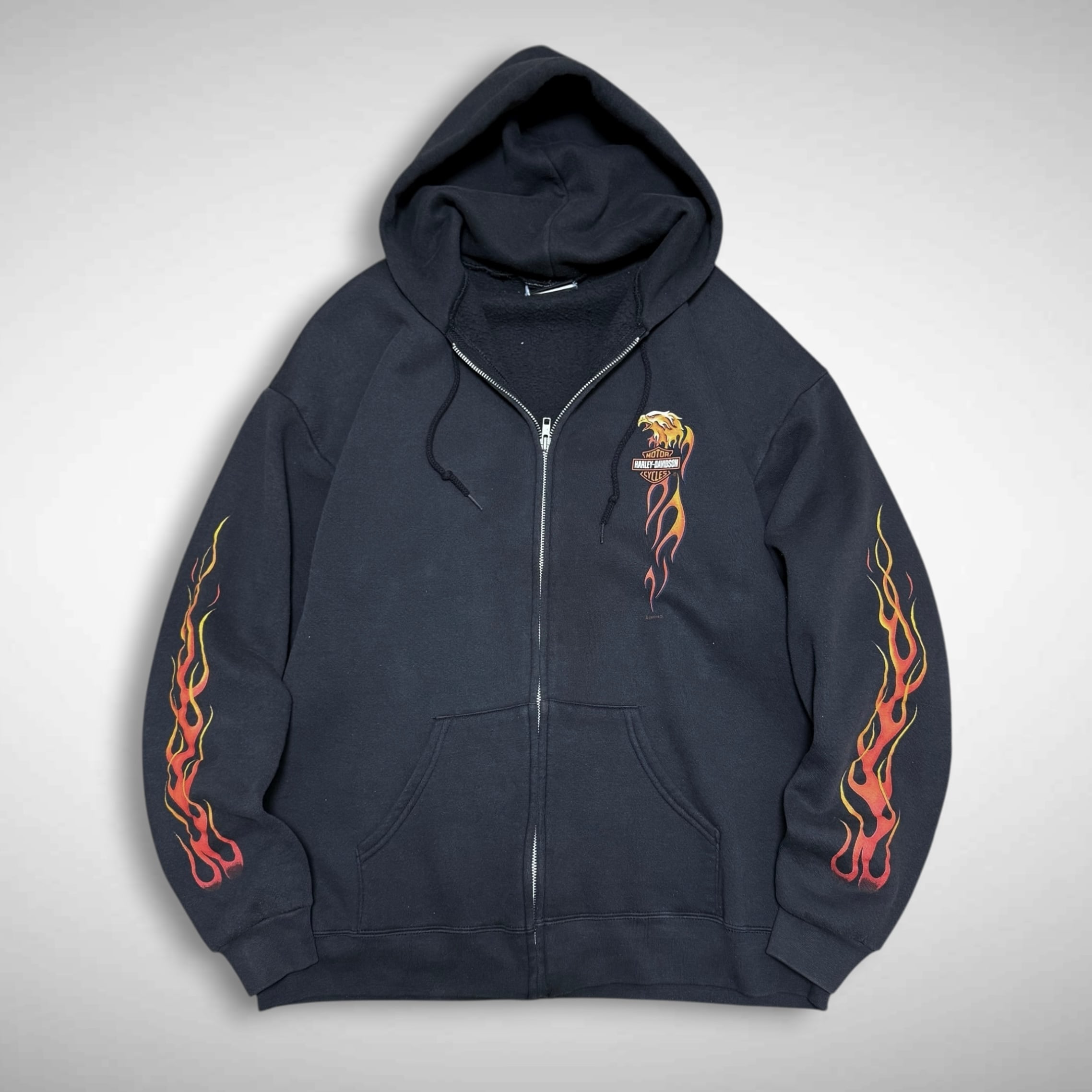 00s USA製 Harley-Davidson zip hoody "fire sleeve" XL ハーレーダビッドソン ジップパーカー