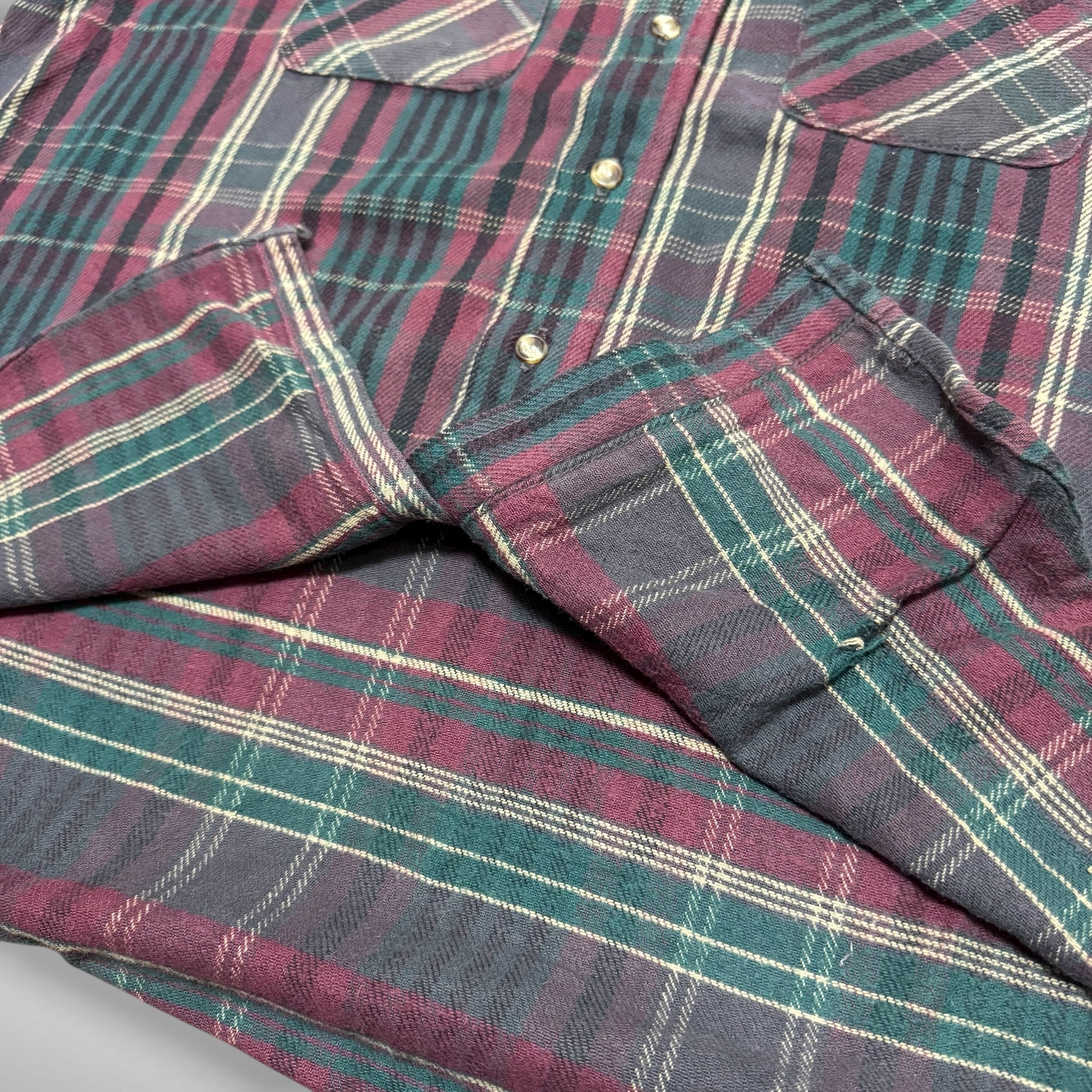 90年代ファイブラのヘビネル。バーガンディをベースに、ブラック×グリーン×パープルの絶妙にイナタイチェック柄が最高です