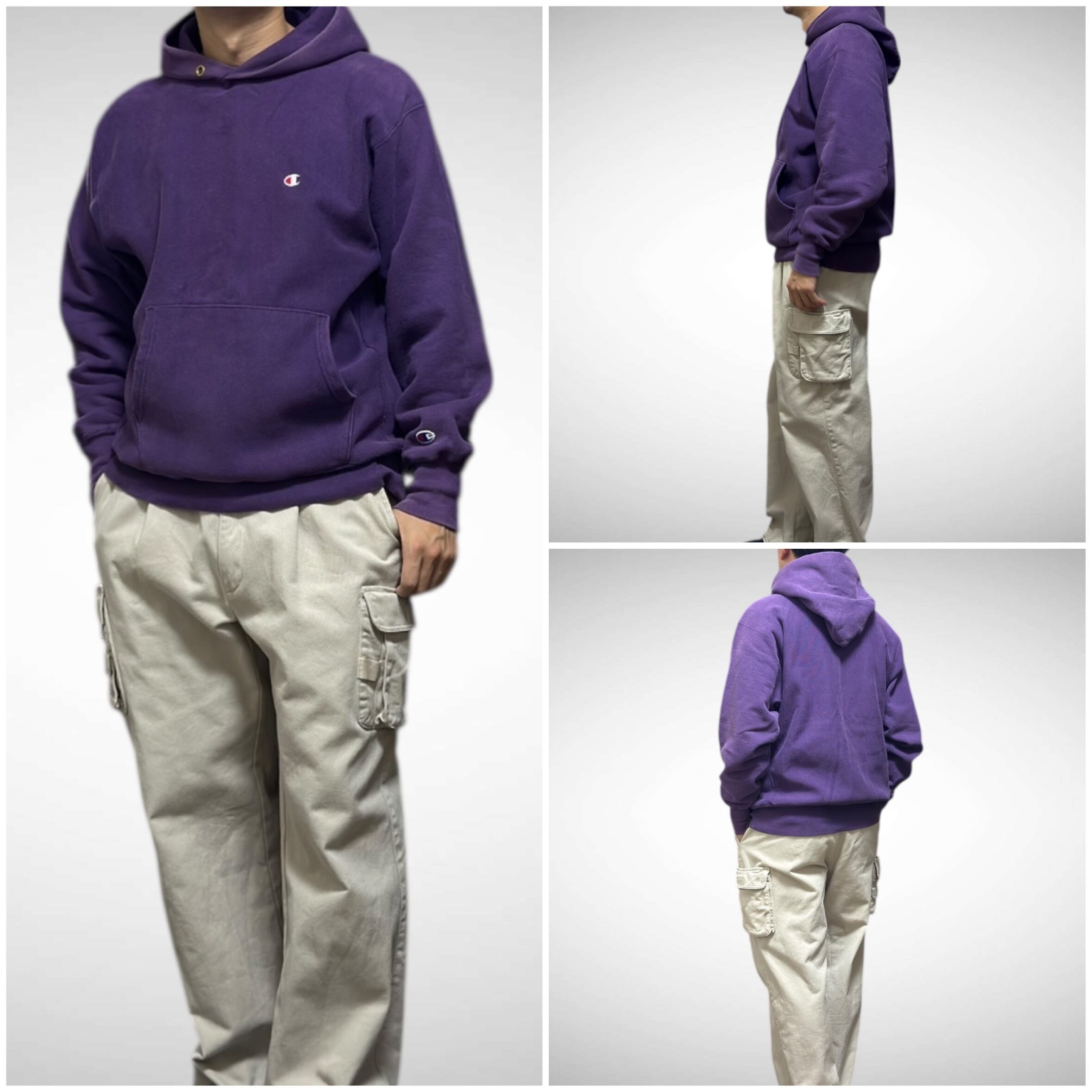 90s USA製 刺繍タグ champion reverse weave hoody 無地 目あり
