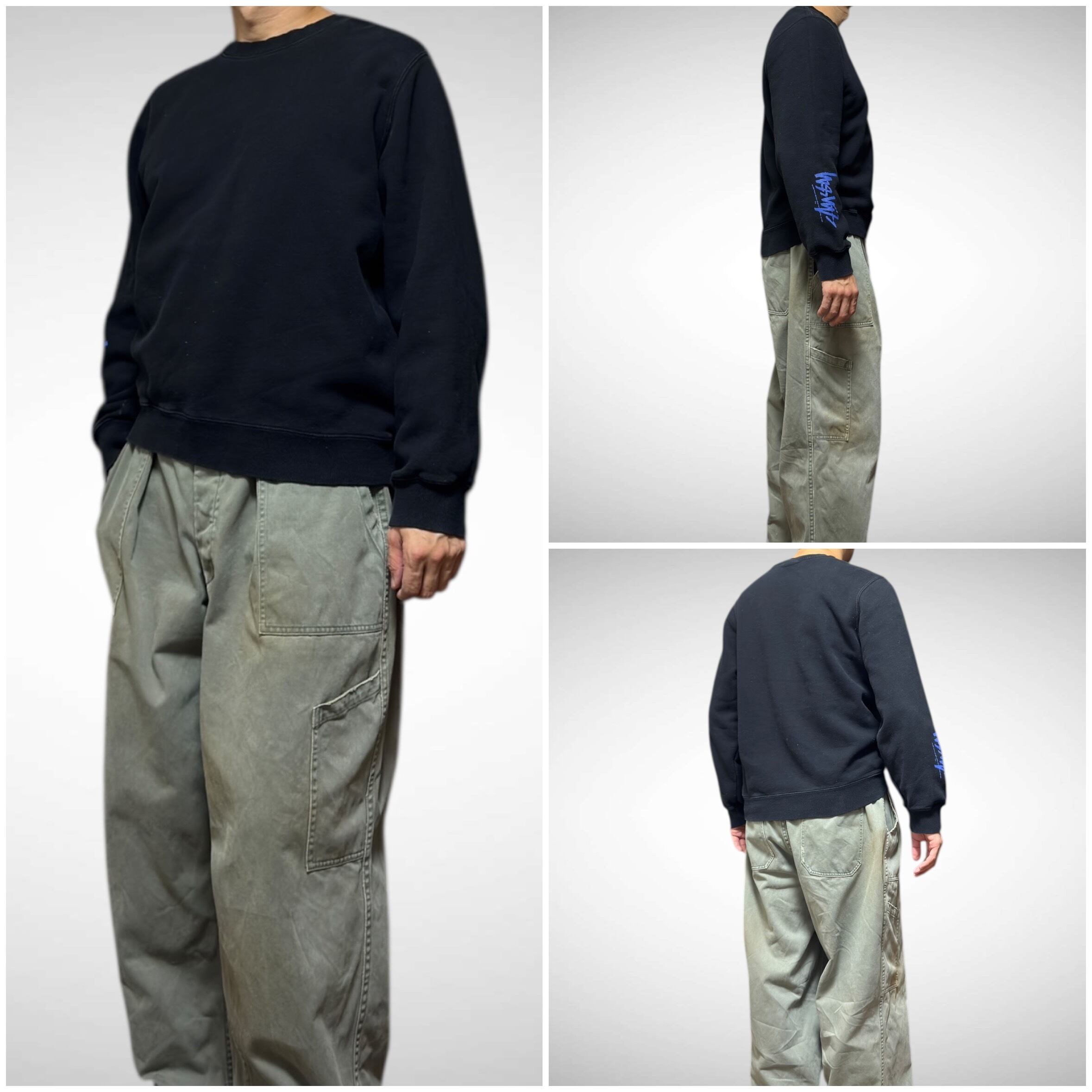 stussy plain black sweat Lsize ステューシー ブラック スウェット 無地 黒袖プリント