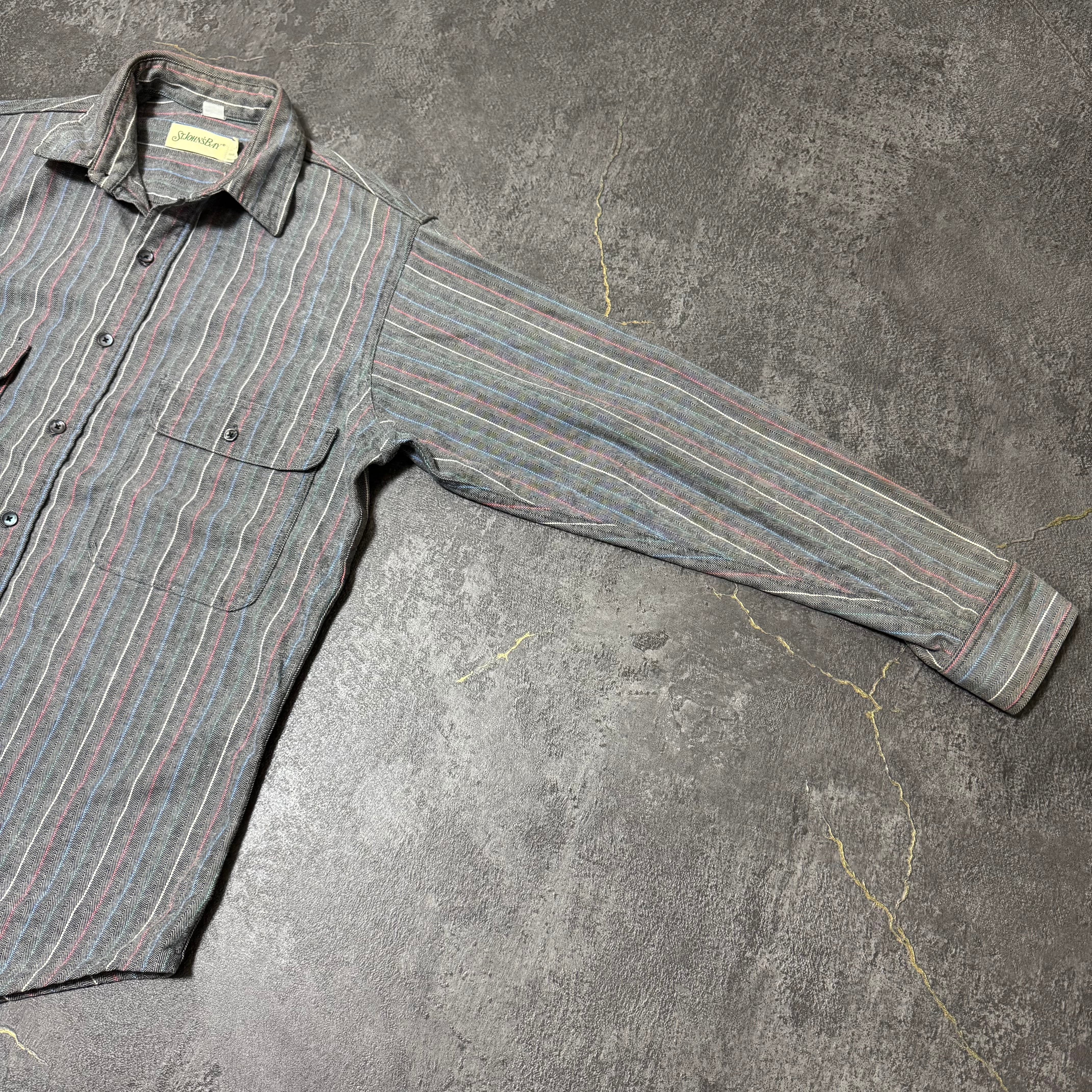 90s ST JOHN'S BAY heavy flannel HBT stripe shirt