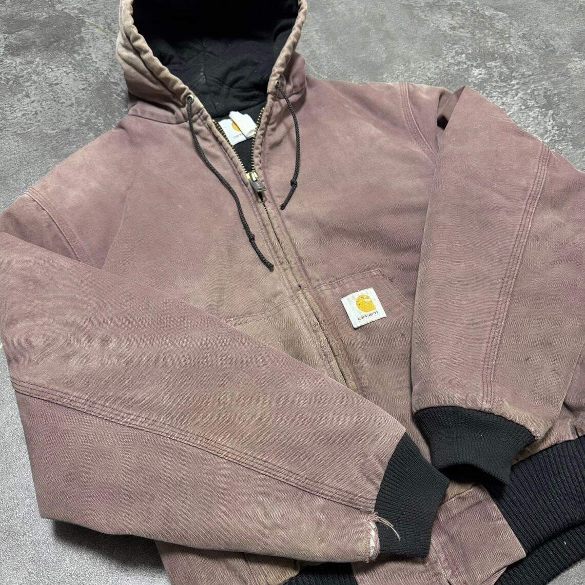 フェードがかなり進んだカーハートのアクティブジャケット。紫とピンクを混ぜたようなくすみカラーになります