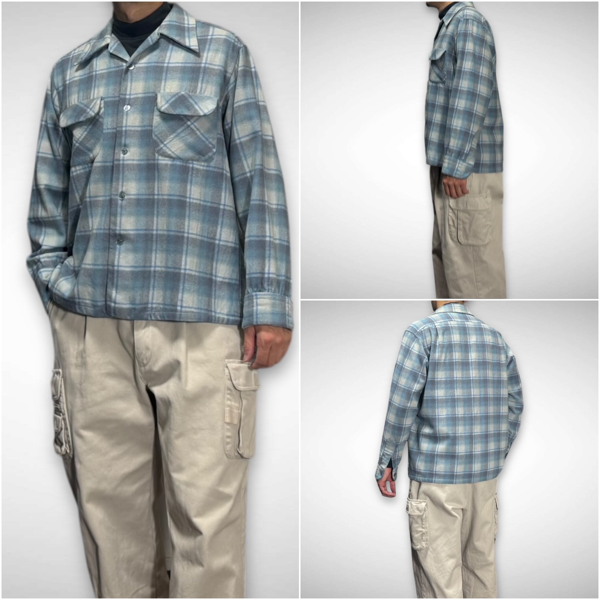 70s USA製 Pendleton ombre check wool board shirt Lsize アメリカ製 ペンドルトン オンブレチェック ウールボードシャツ