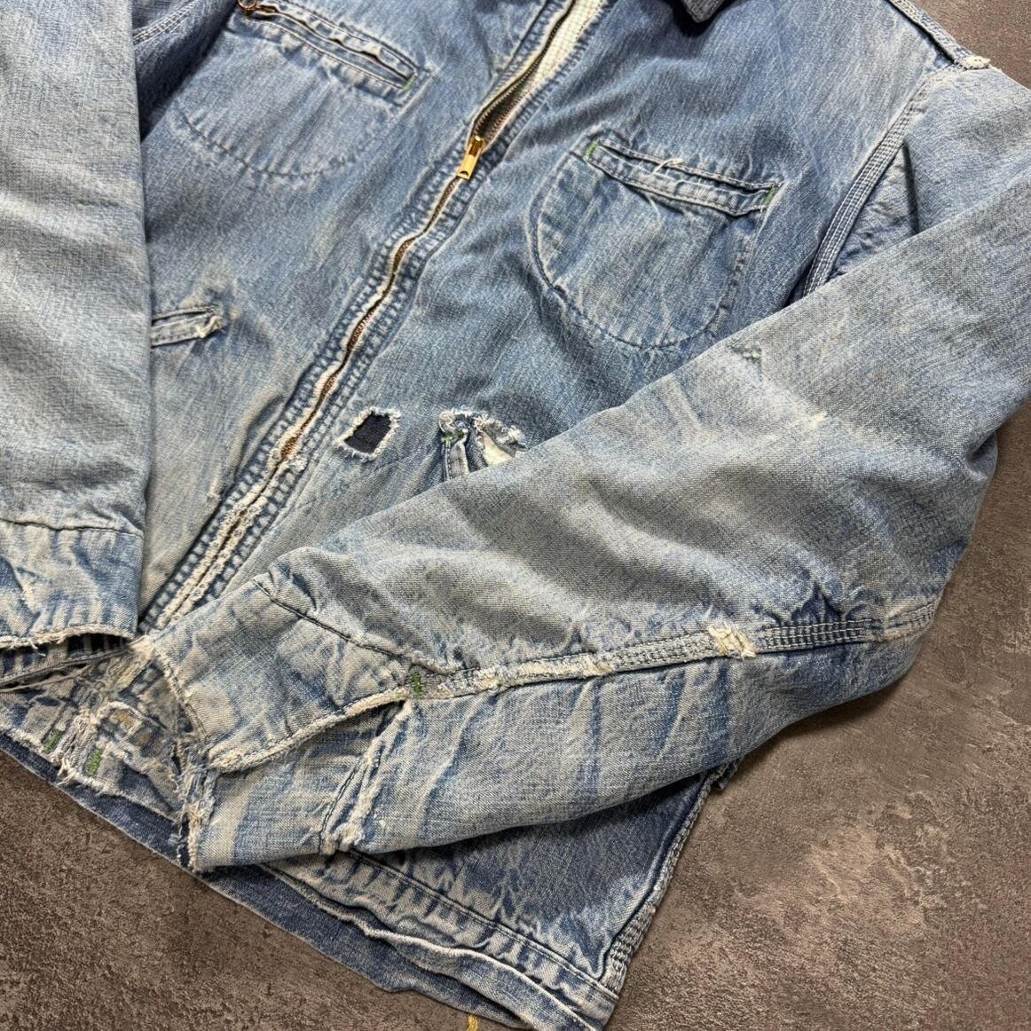 全体的にダメージやリペアが見られますが、着用に困るようなダメージや汚れはないので、まだまだ長く愛用いただけます。