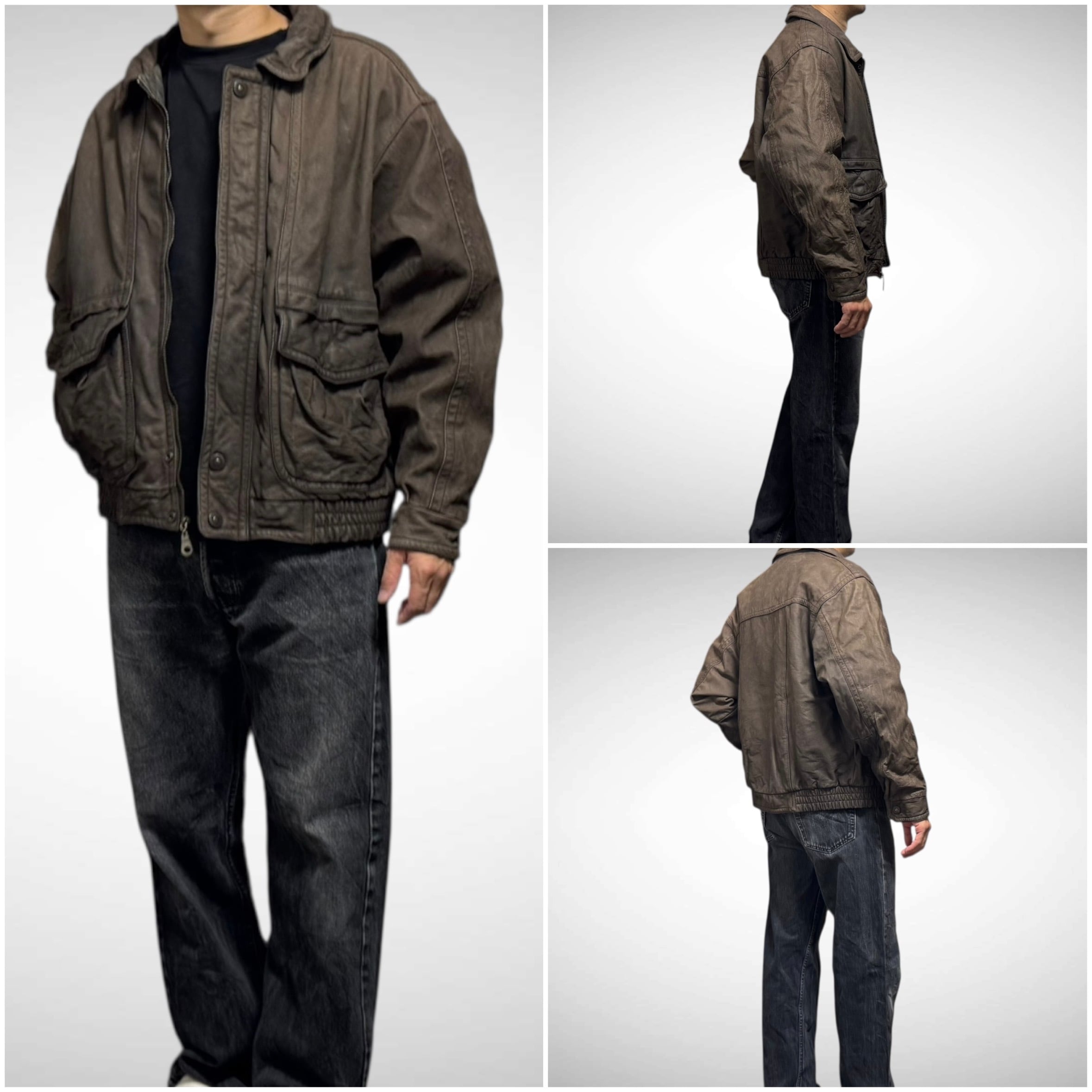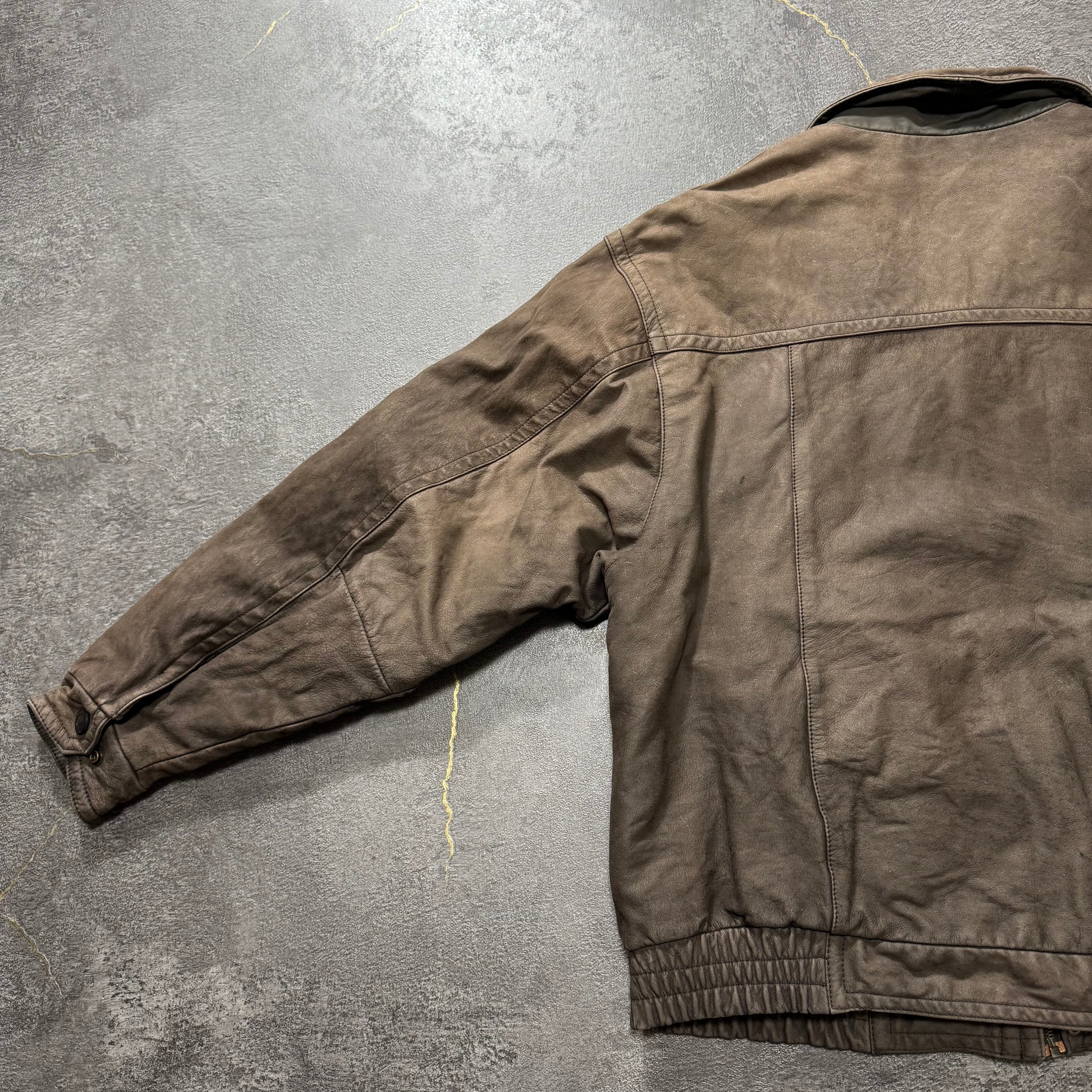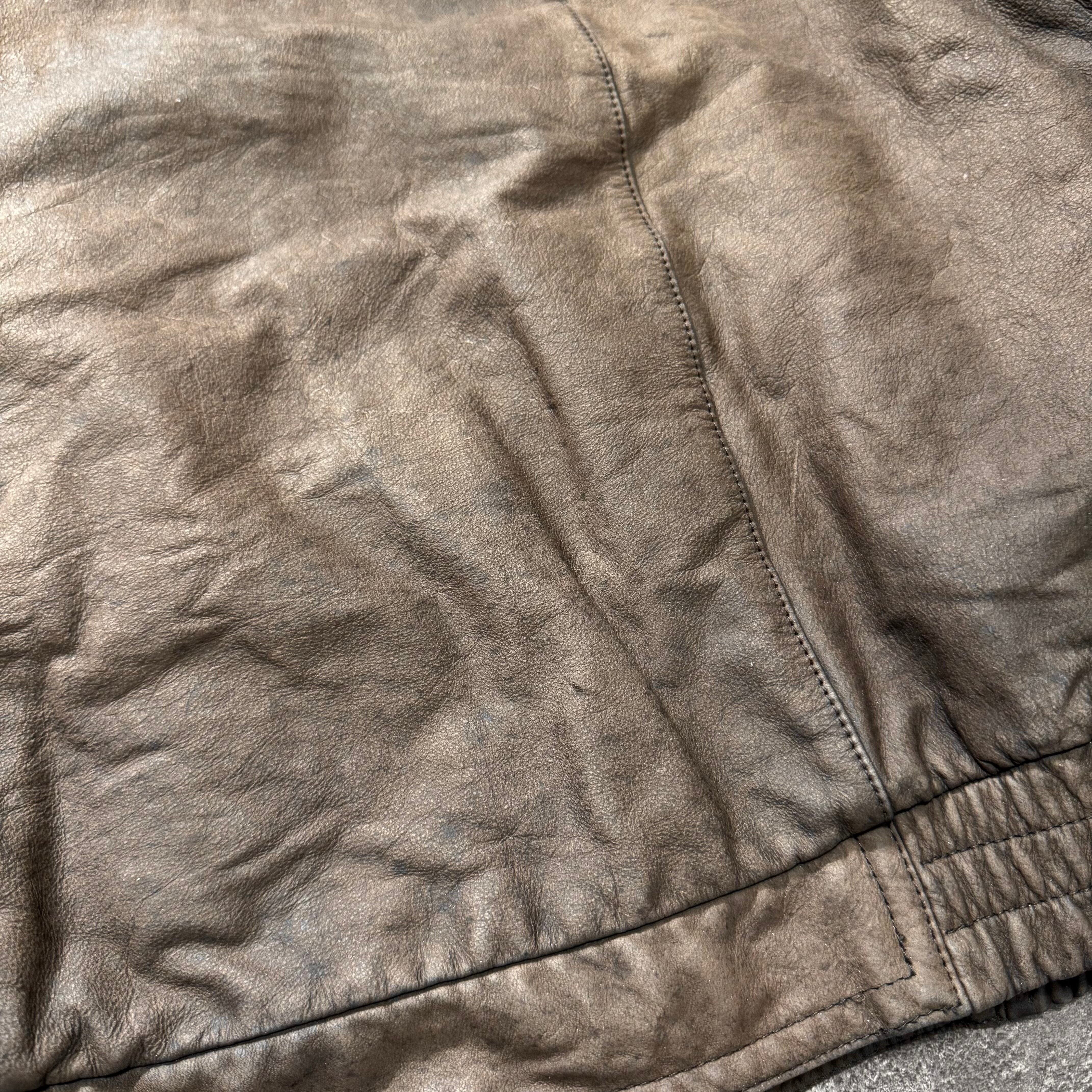 古着ならではのアジがでたA2型本革レザージャケット。フェードがかったチョコレートブラウンの色味が最高です。