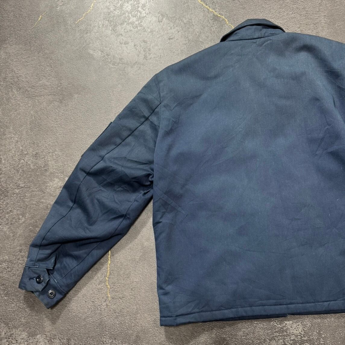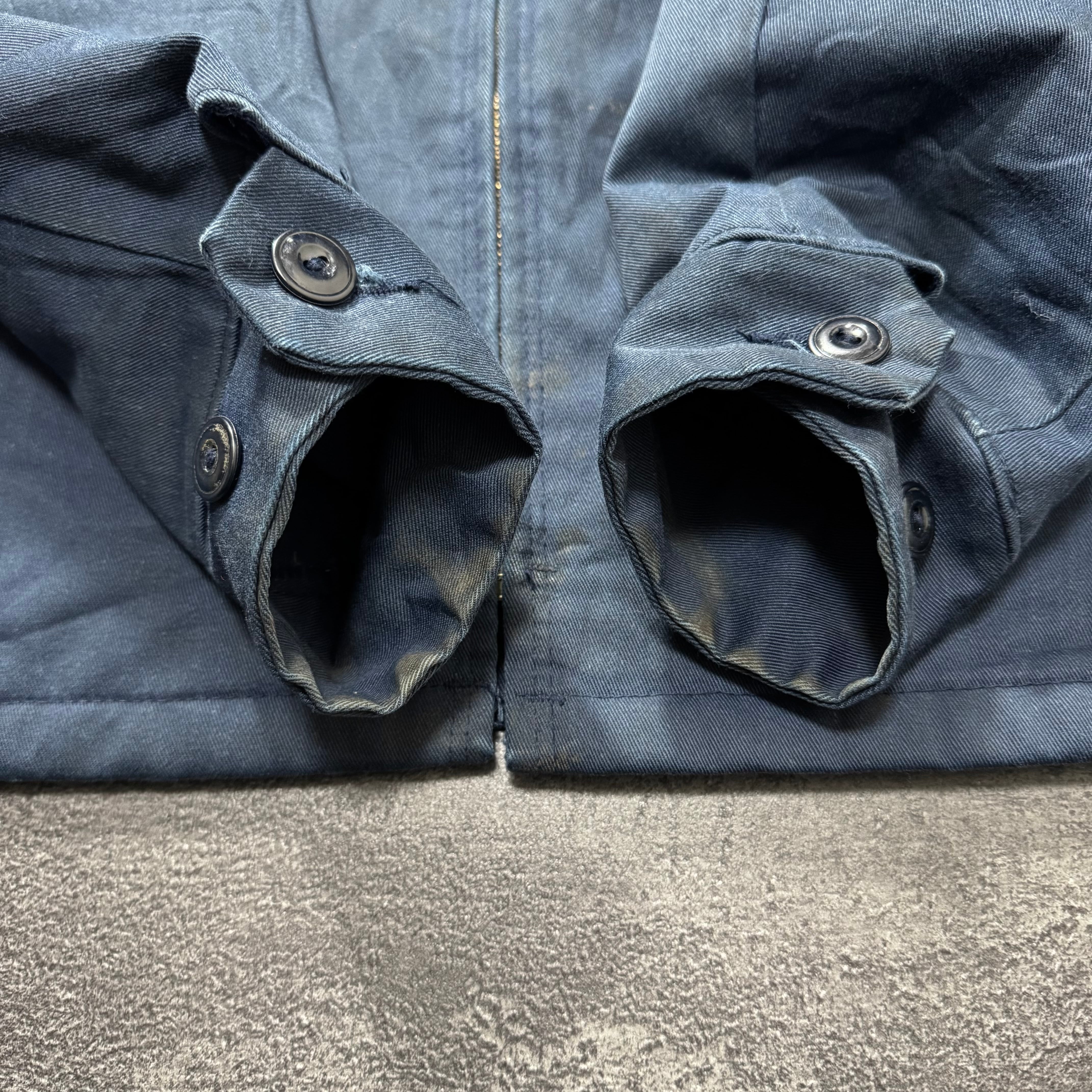 袖の内側やボディにシミが少しありますが、破れなどはなくワークジャケットの雰囲気にマッチしたアジのある風合いです。
