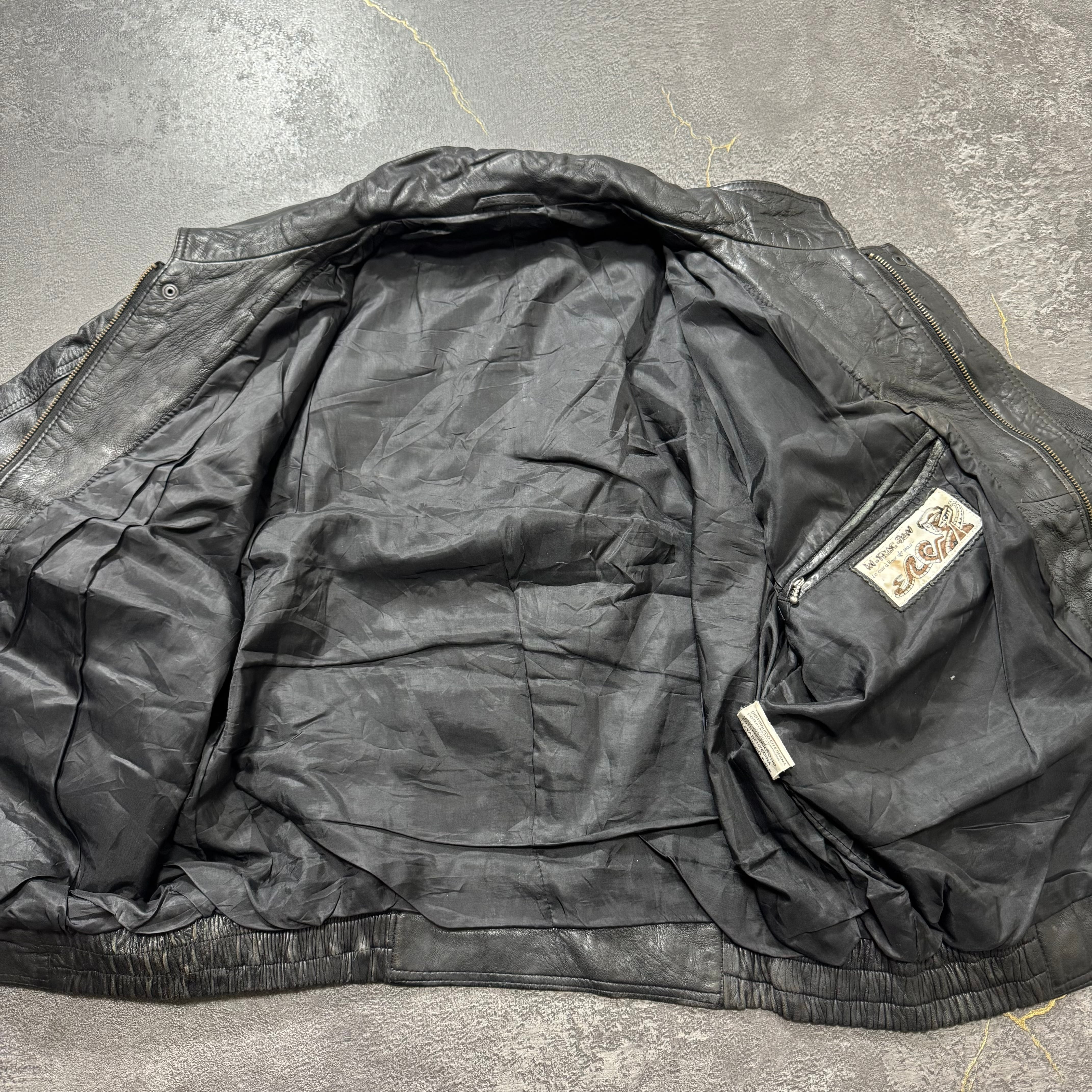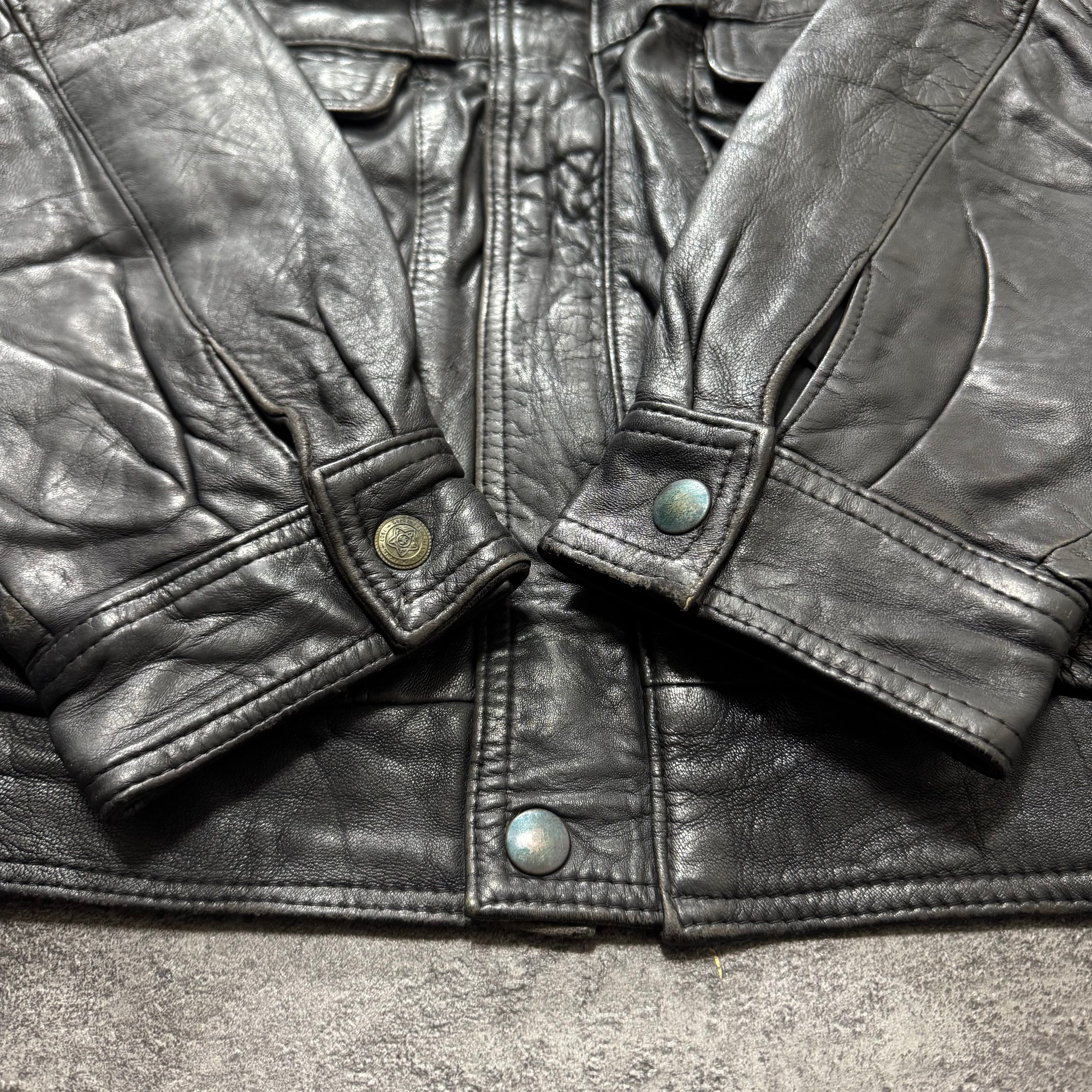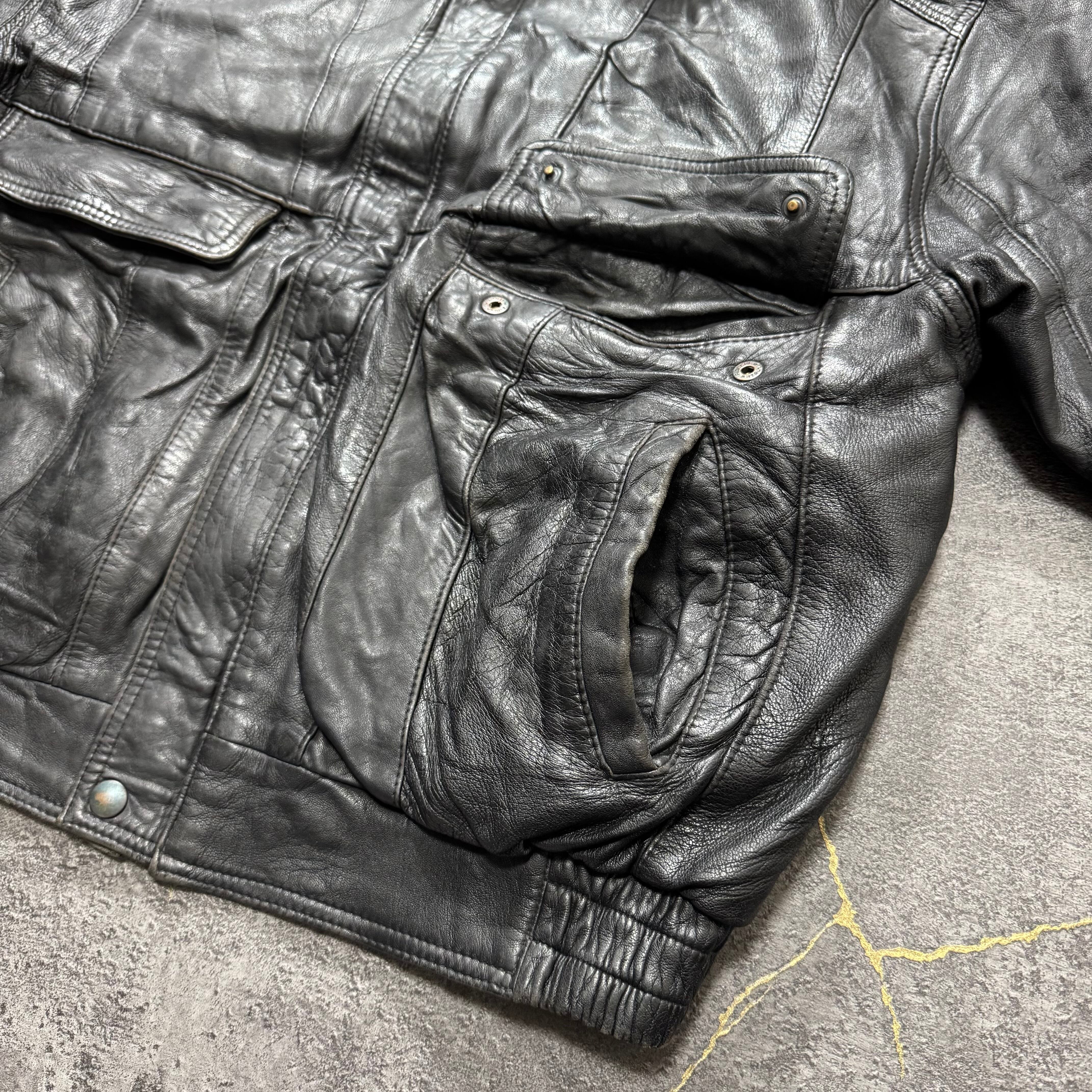 ユーロ圏に流通していた90年代ごろの本革レザージャケット。素材は100%ラムナッパレザー(仔羊革)で、しなやかで柔らかく、落ち感と艶がある一枚です