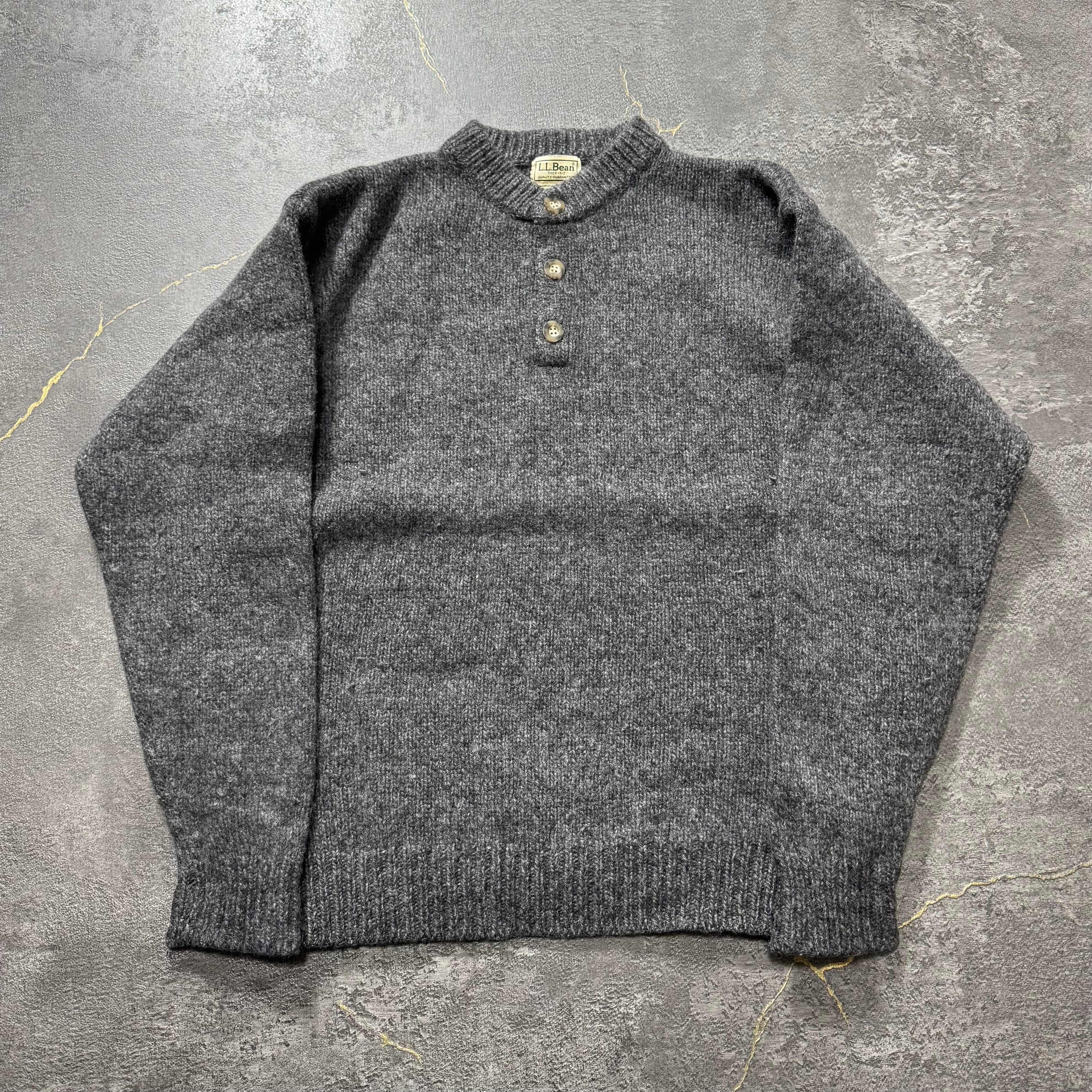 L.L.Bean henry neck gray color エルエルビーン ヘンリーネックラムウールニット