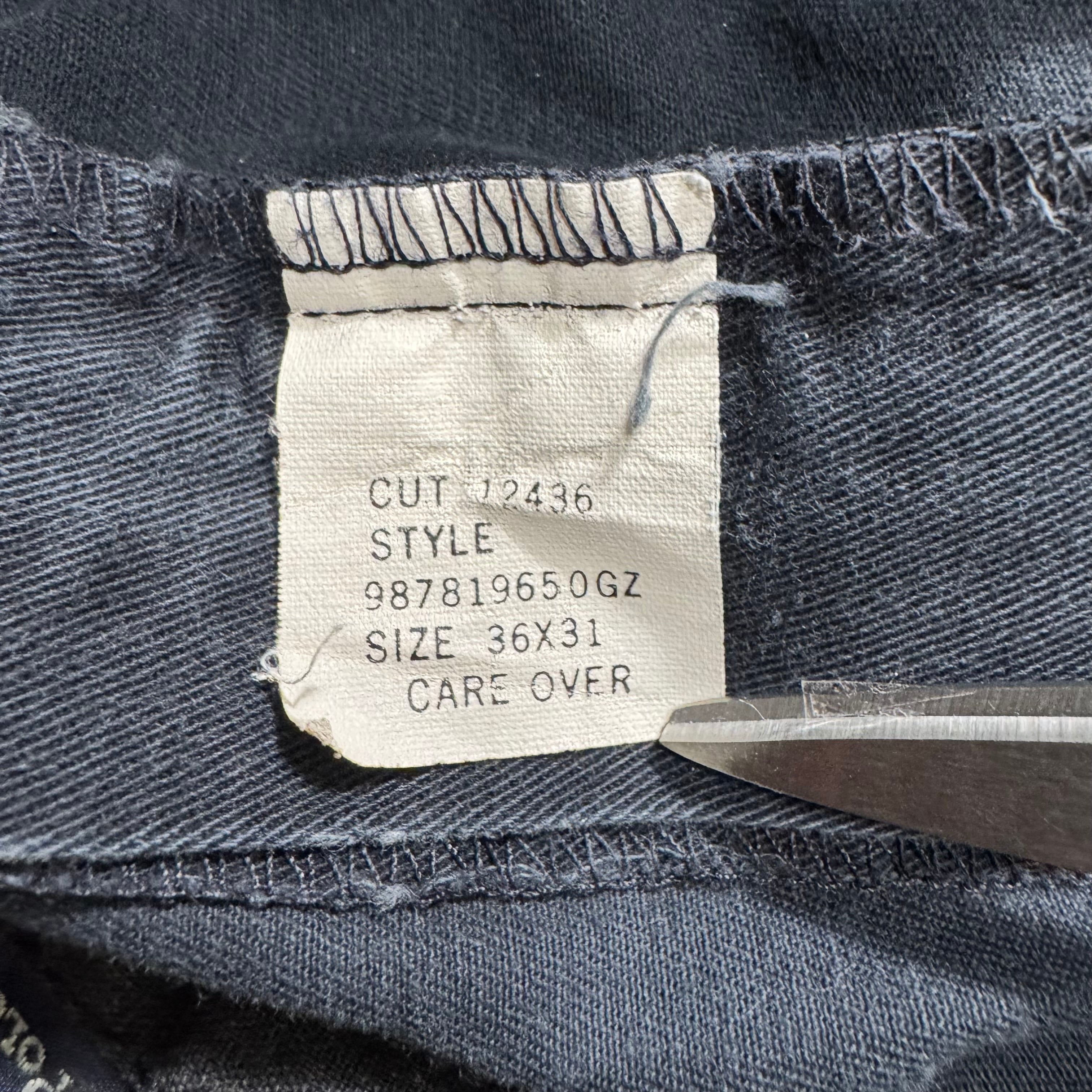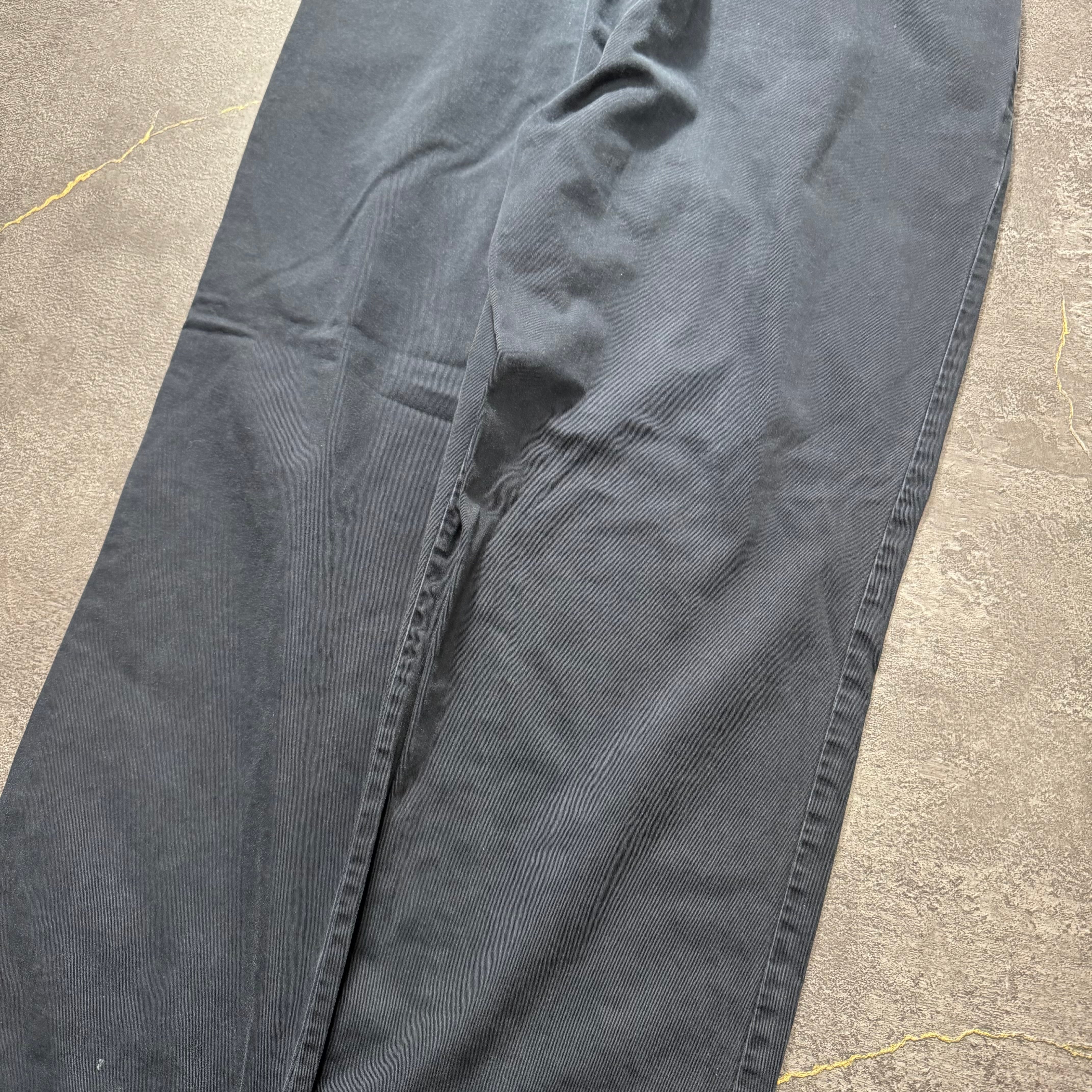 ウエスト内側周りにロゴが入る90sアメリカ製の個体。ウエストはツータック、裾にかけて、ゆるやかなテーパードがかかったキレイなシルエットになります。