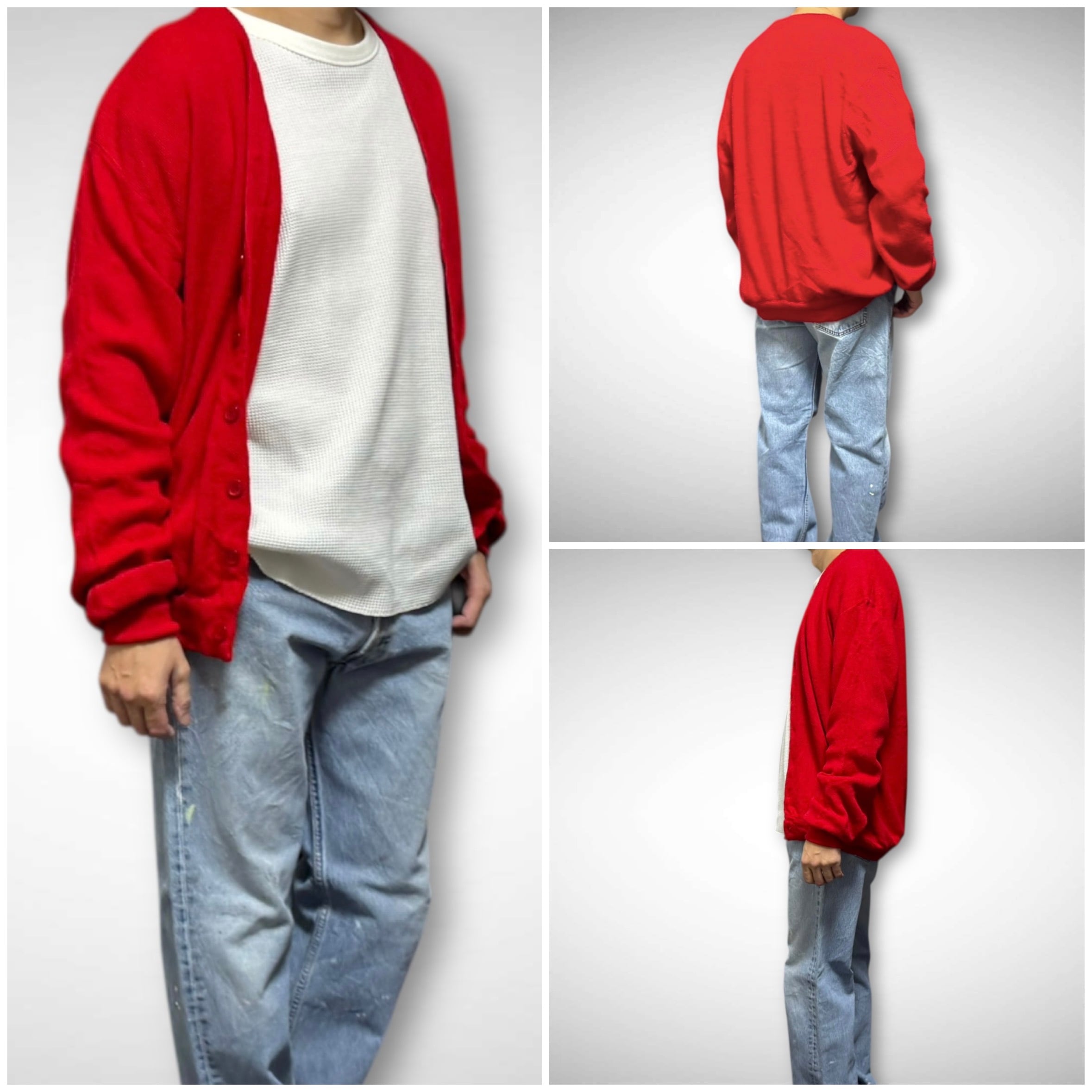 70s USA製 Load Jeff Acryl cardigan RED アメリカ製 ロードジェフ アクリルカーディガン
