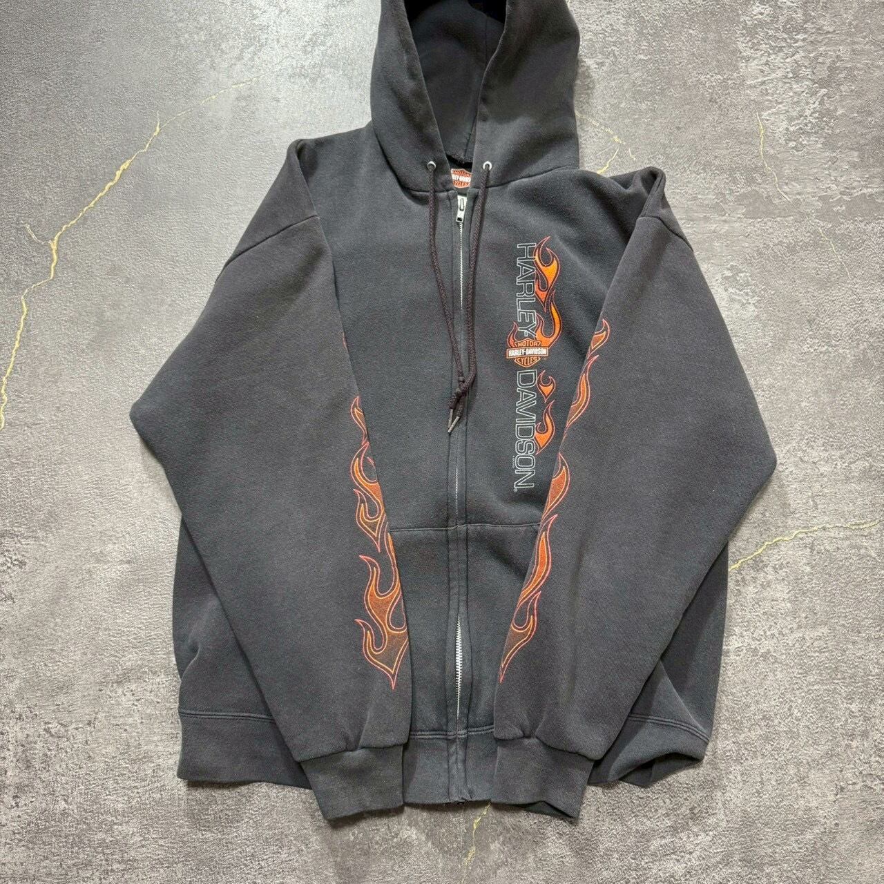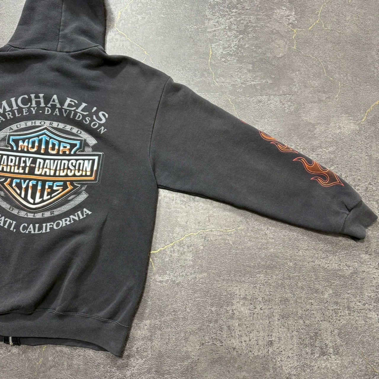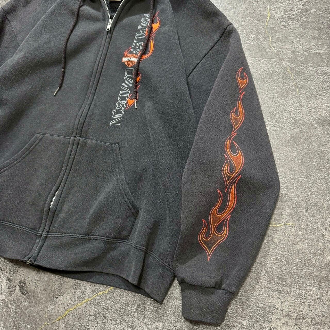 00s Harley-Davidson zip parka ハーレーダビッドソン 袖フレイムプリント