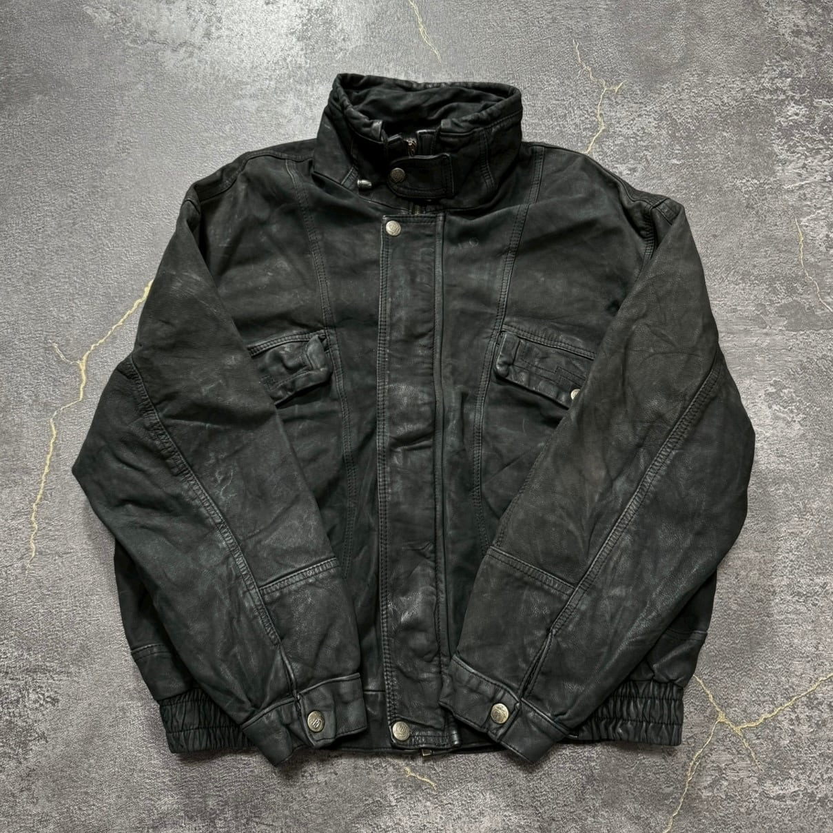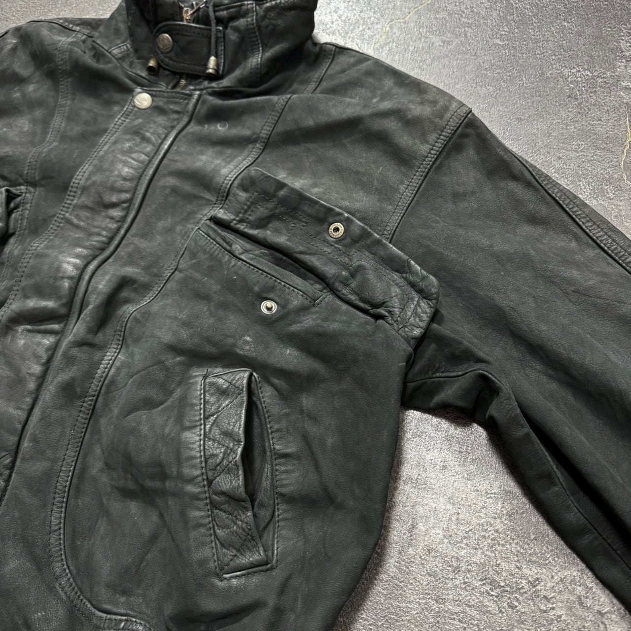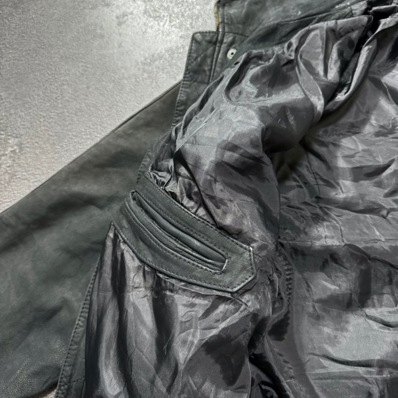 表革をなめしたヌバックレザーで滑らかな肌触りの質感。フライトジャケットからインスパイアされたユーロ古着らしいデザイン製の高い個体になります