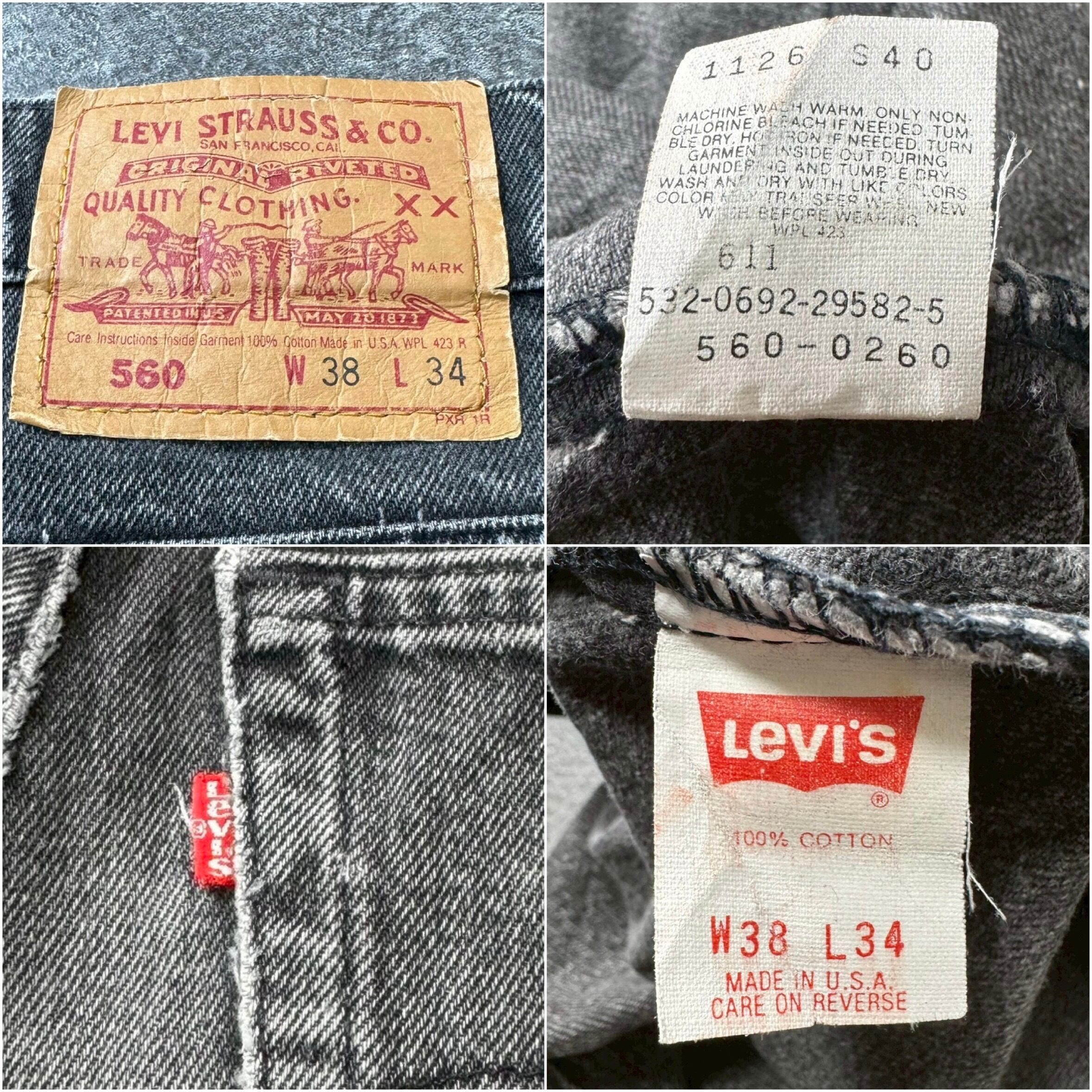 90s USA製 Levi's 560 piece dyeing black denim W38L29 リーバイス 後染めブラックデニム