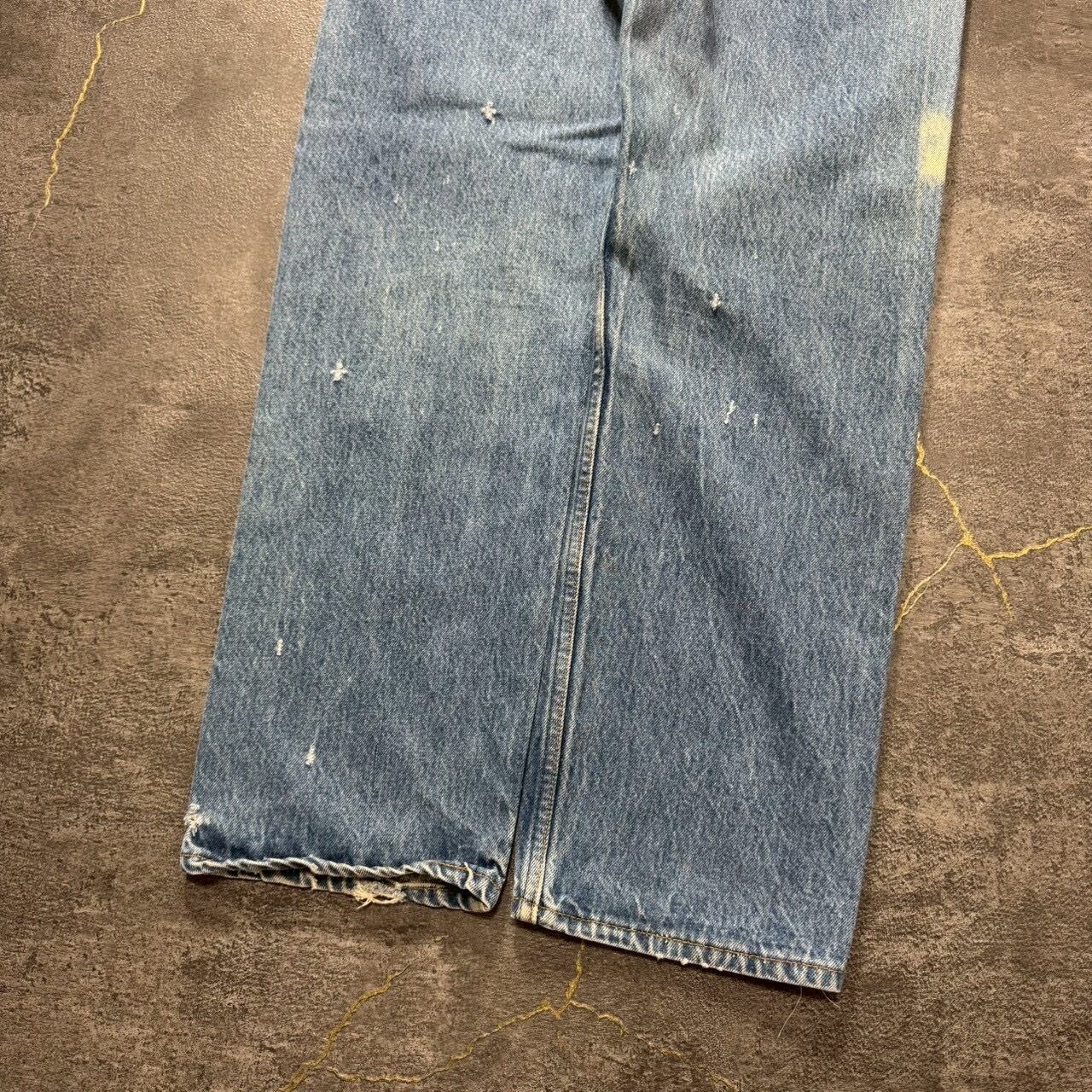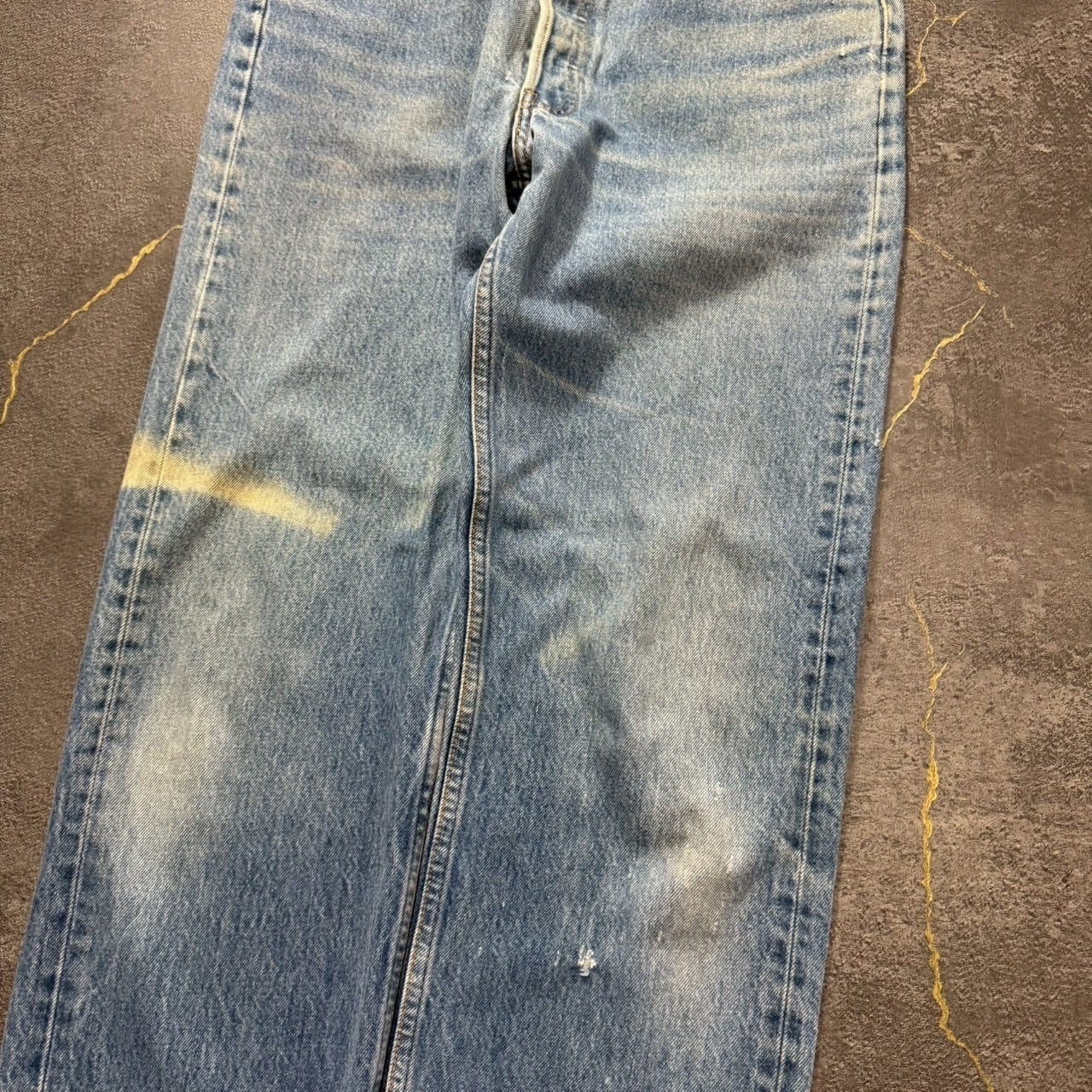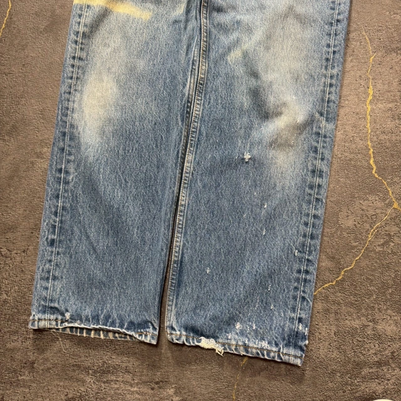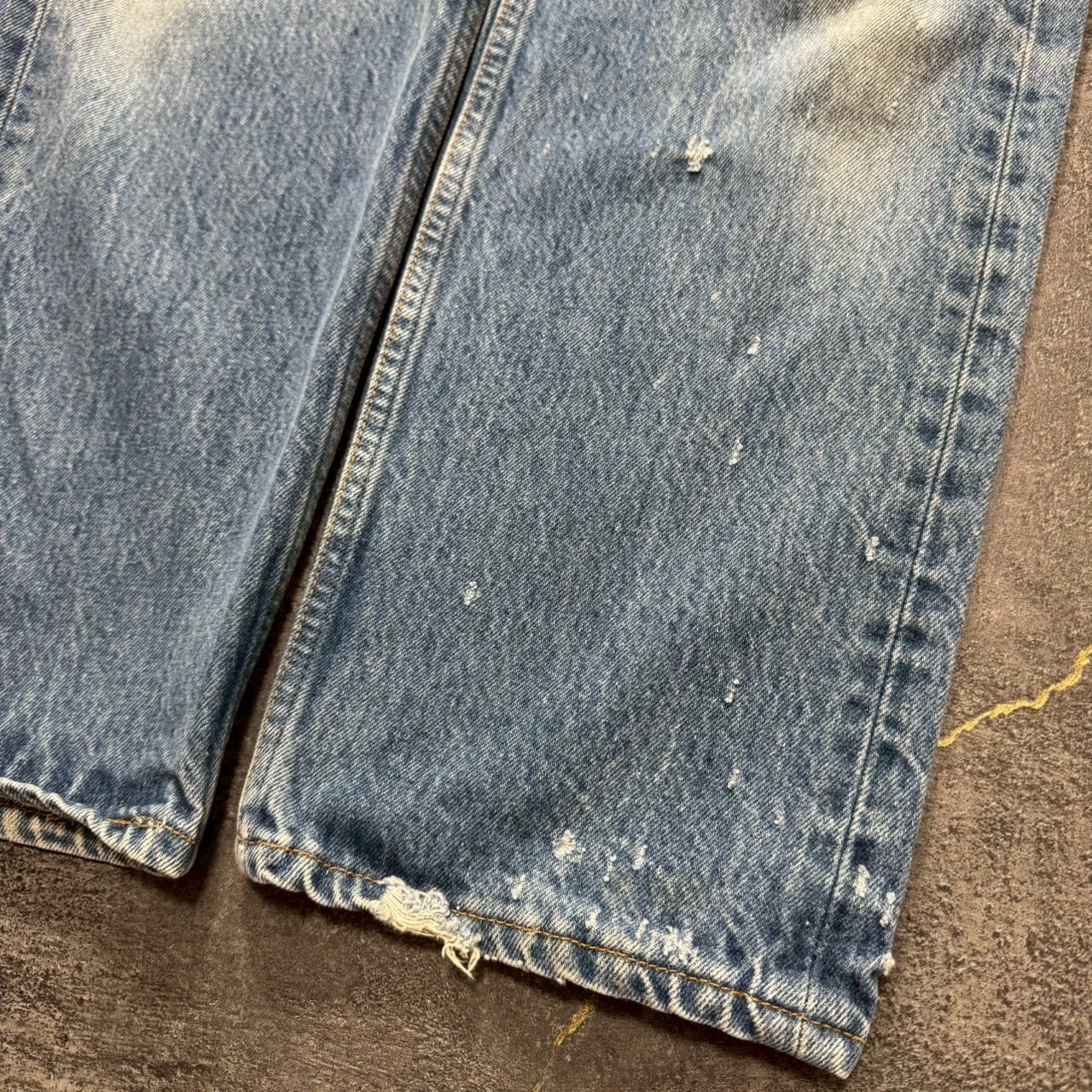 右膝に色落ち、その他細かいダメージありますが、着用に支障をきたようなダメージや汚れやリペアはなく、古着好きの方であれば問題なくご着用いただけます。