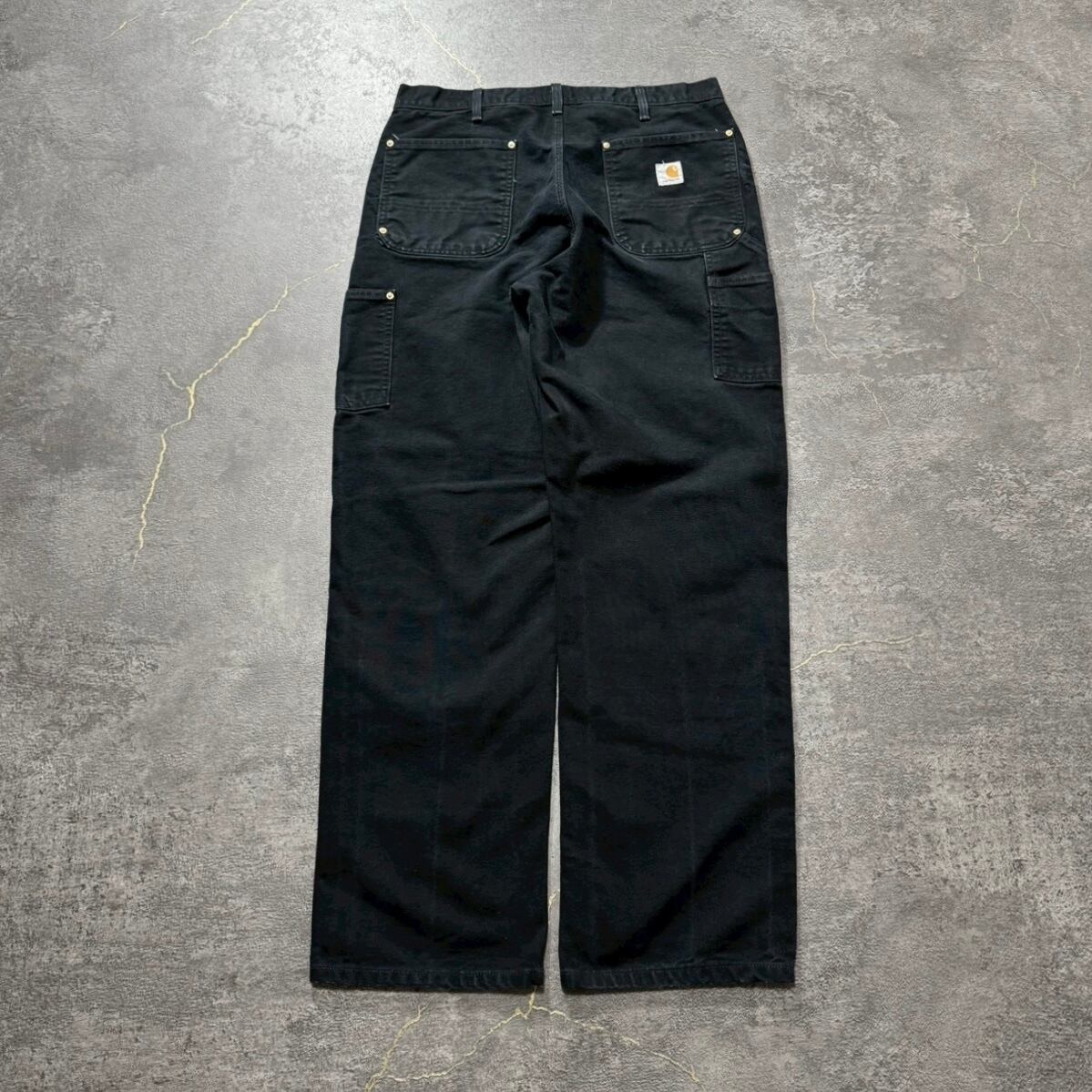 色濃く残ったノーダメージのアメリカ製カーハートダブルニーブラック(2012年製造)。サイズもゆるく履けるゴールデンサイズになります。