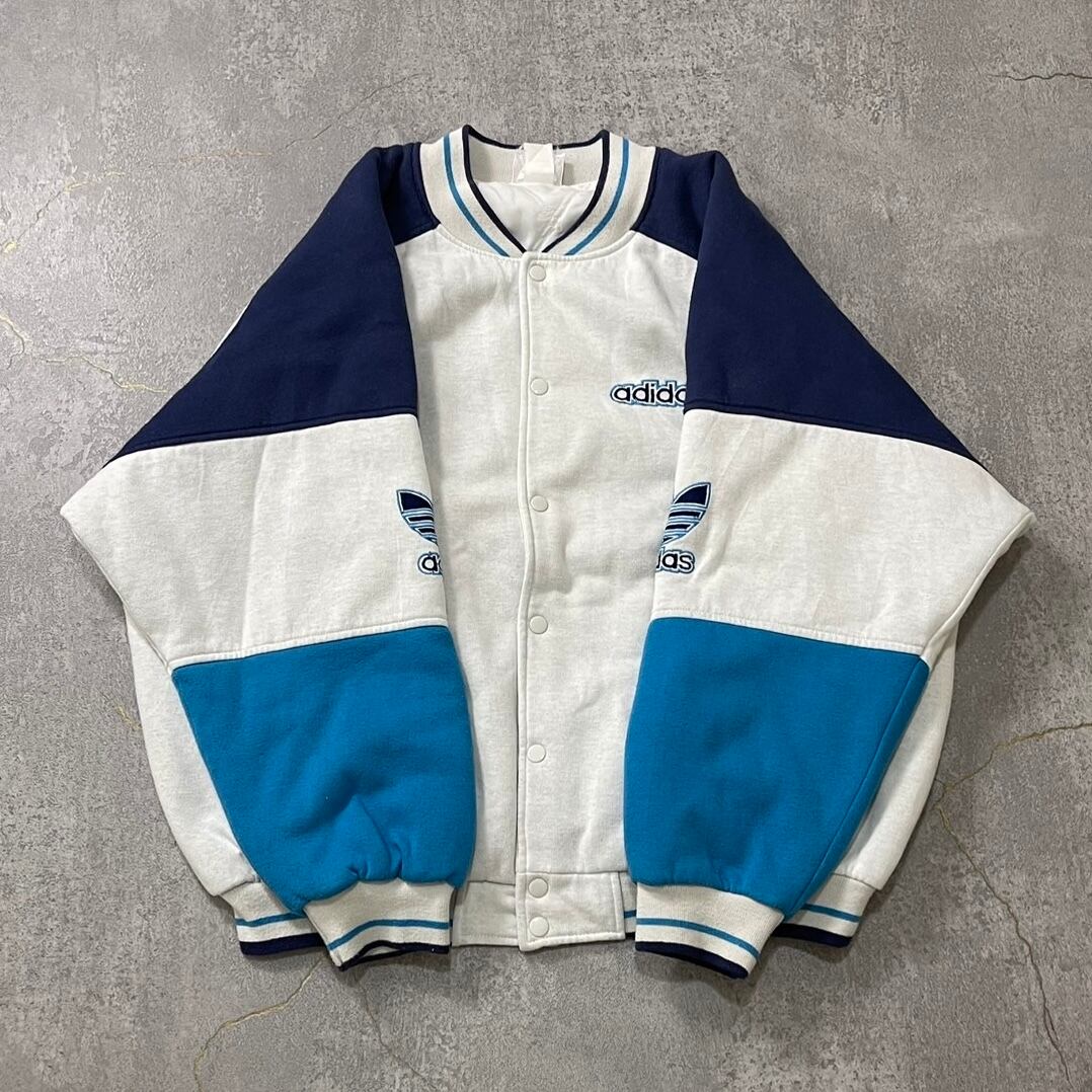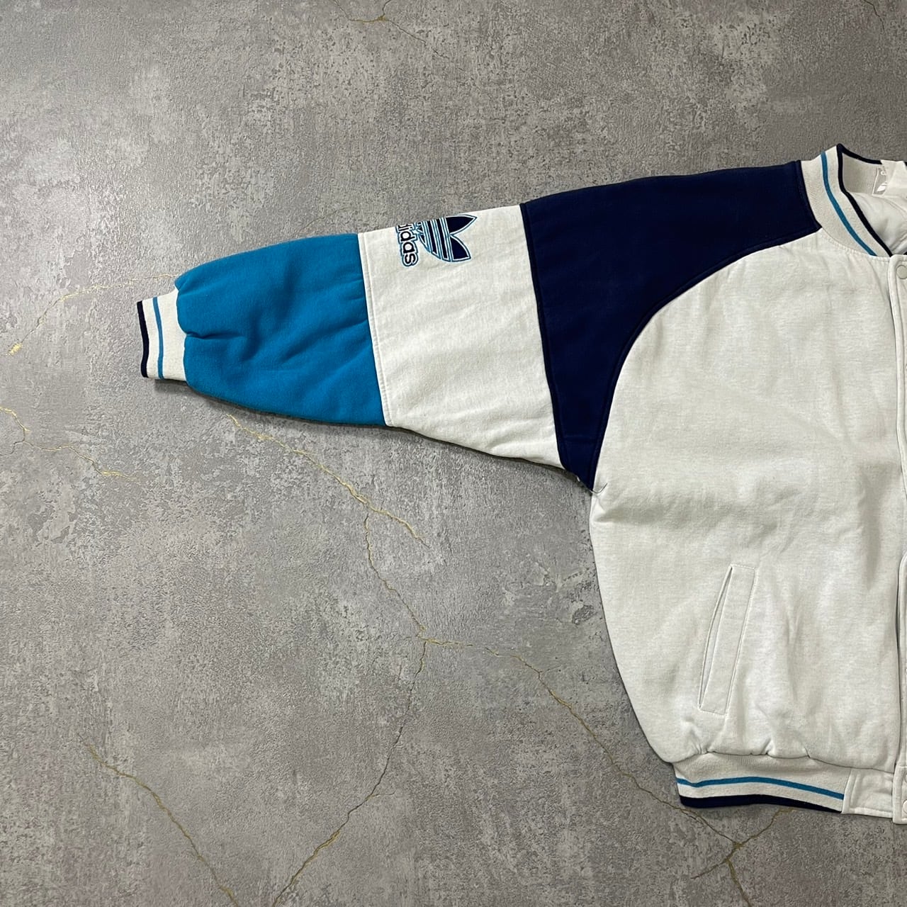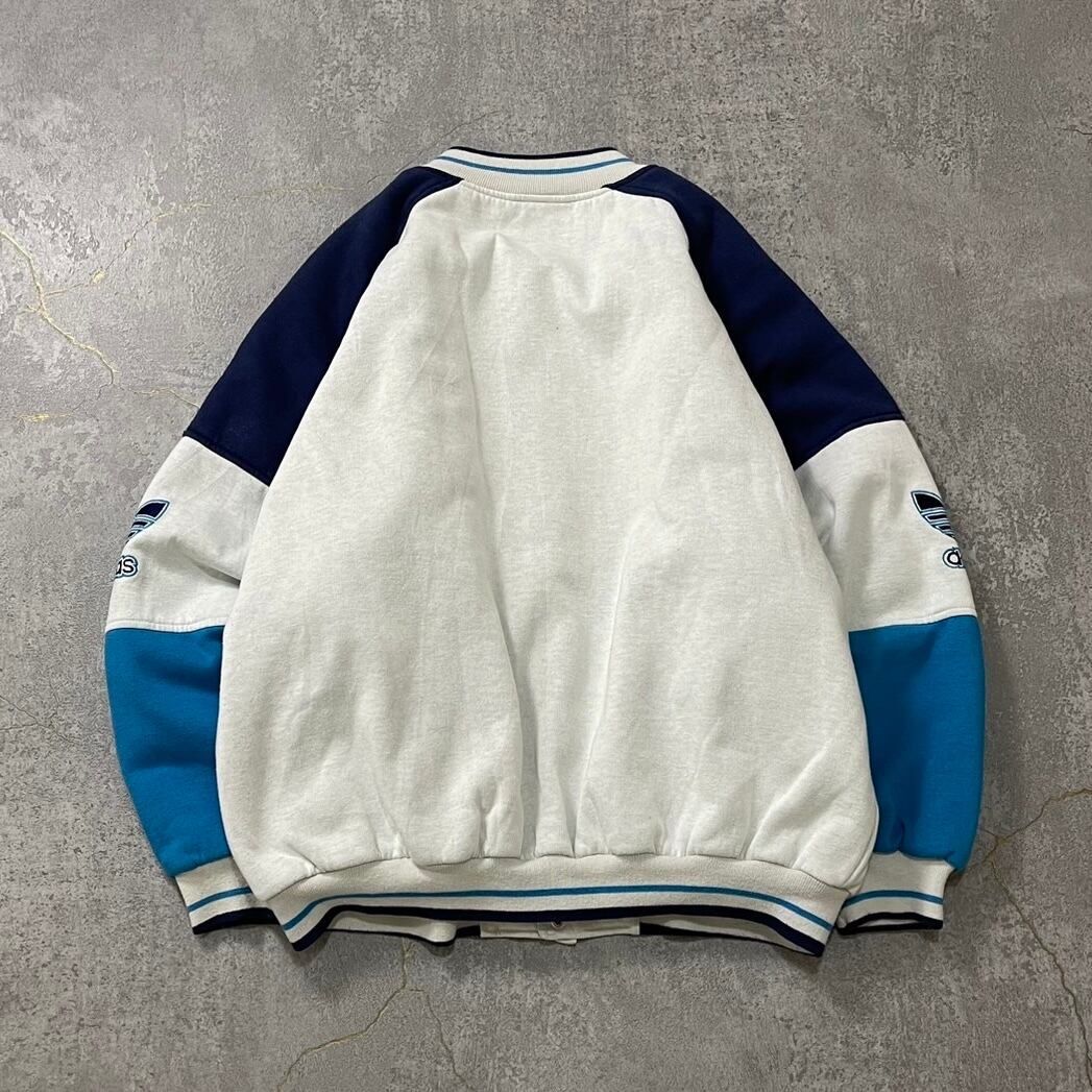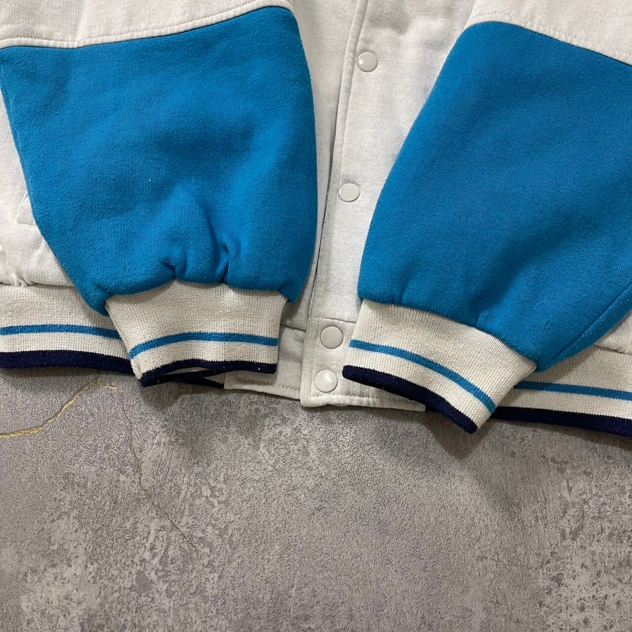 ナイロン系やジャージ素材のトラックジャケットとは違い、スウェット素材のバーシティジャケットタイプになります