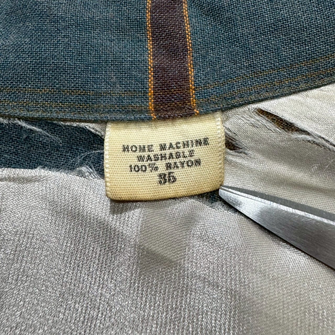 タグがついている襟の当て布(シルク生地)にダメージありますが、着用時には見えないのとペラペラしないように補修されています