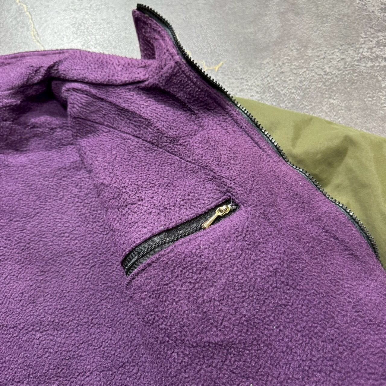 ナイロン面はオリーブグリーン、フリース面はパープルを使用した好配色(リブは黒になります)