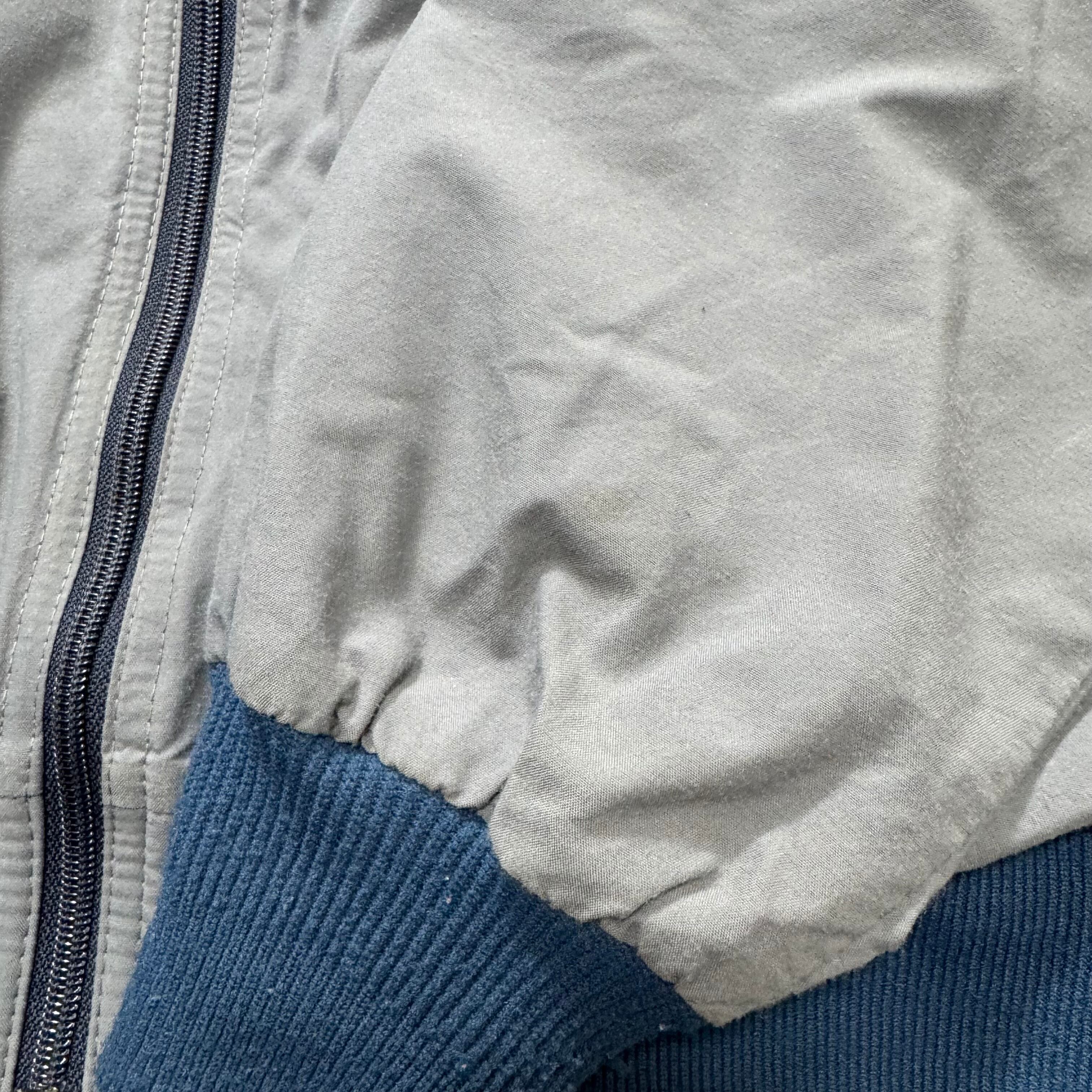 冬仕様のウォームアップジャケットは違い、裏地がフリースではなくコーチジャケットなどでよくある薄手のポリエステル生地を使用。スリーシーズンで着用できる薄手のウォームアップのライトアウターです。