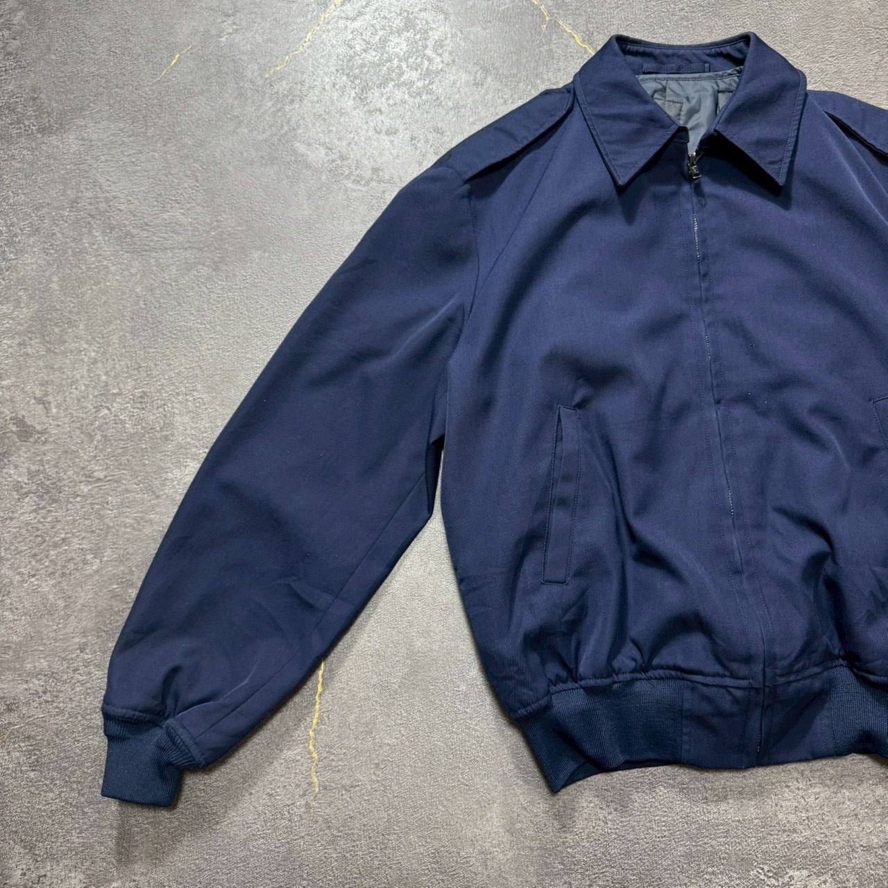 着丈の短いスウィングトップブルゾンで、刺繍や装飾が入らないミニマルで使いやすい一枚です