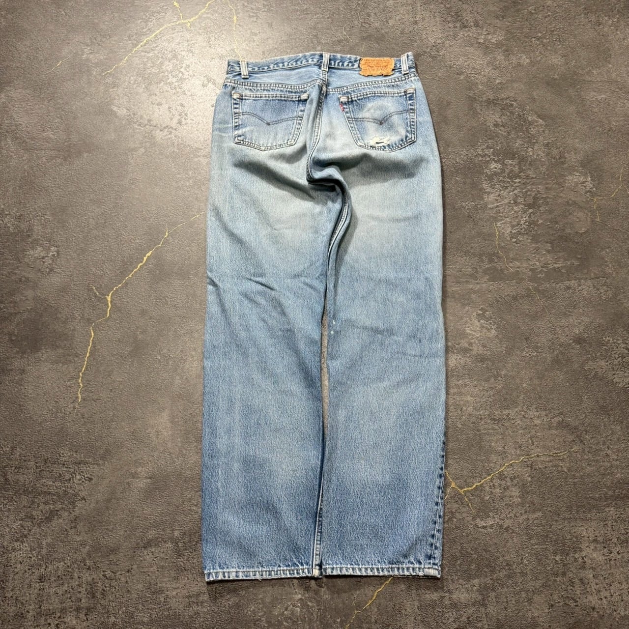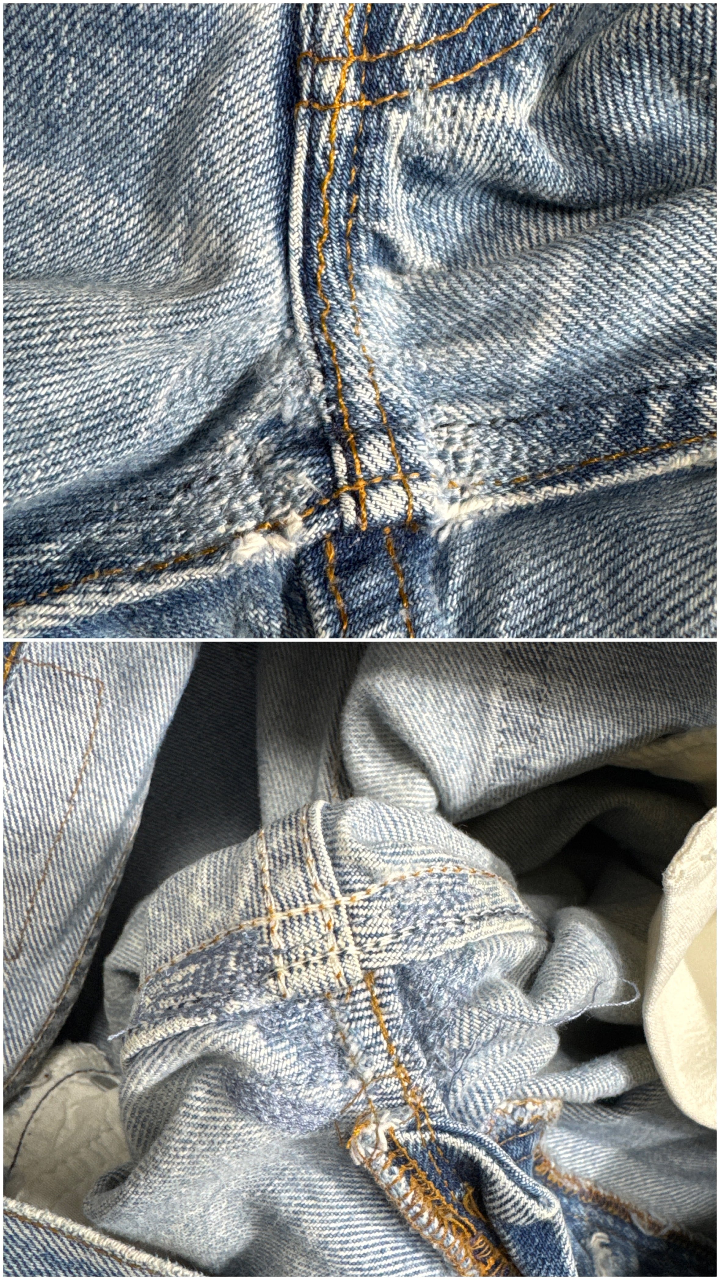 色落ち具合もよく、グッドリペアが入った雰囲気のある一本。実寸33×31のゴールデンサイズです。
