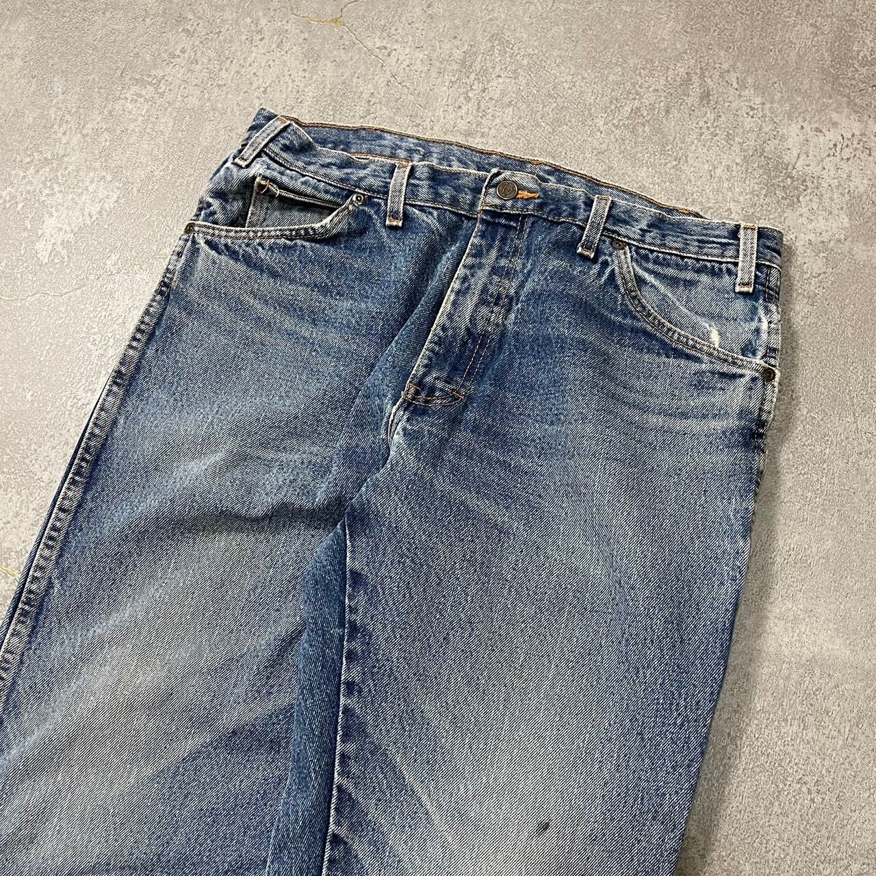 ビンテージデニム顔負けのリアルなヒゲ・アタリが出た雰囲気ある一本。ももに少しだけうすいシミはありますが全体の状態は良好で、実寸36×29のスーパーゴールでサイズです!