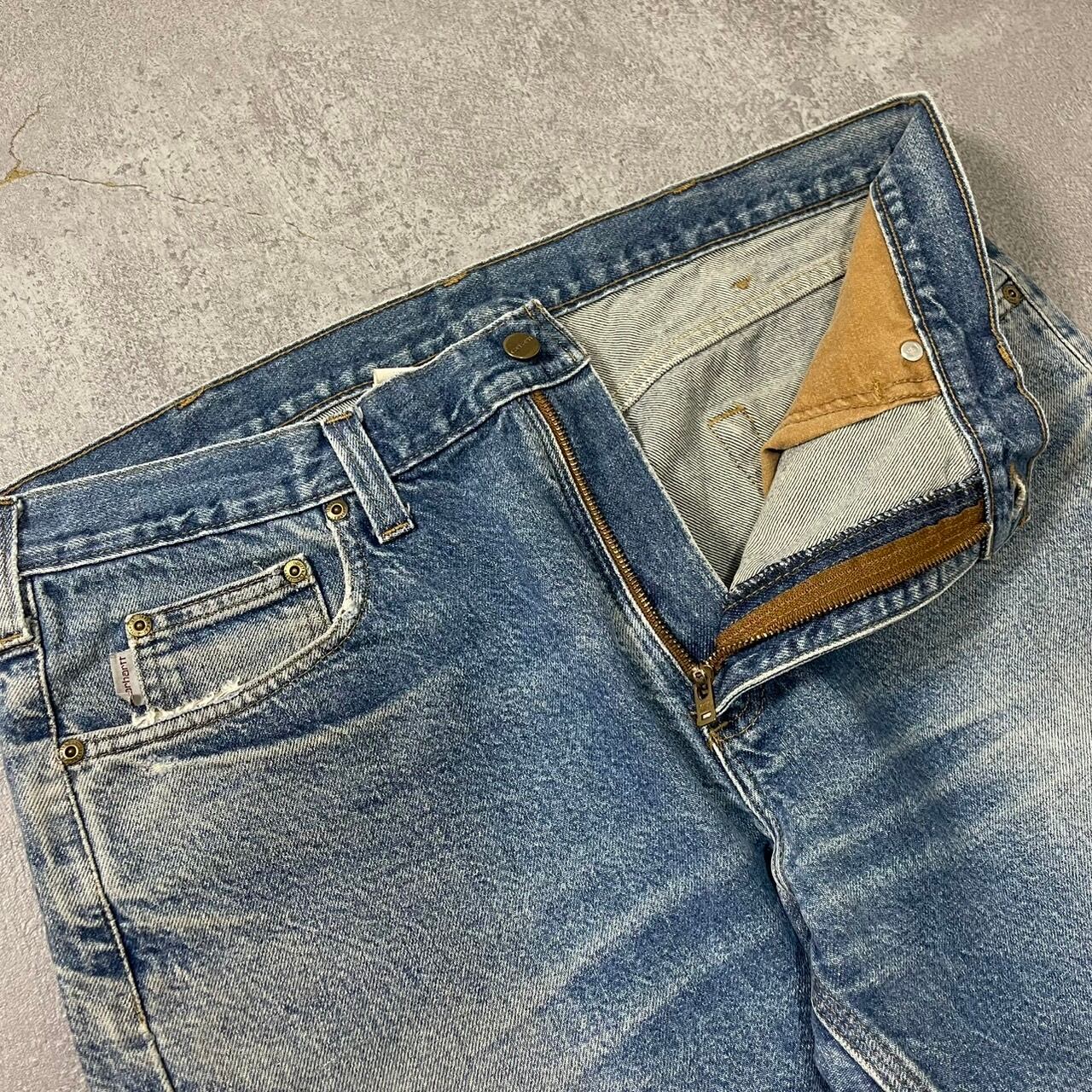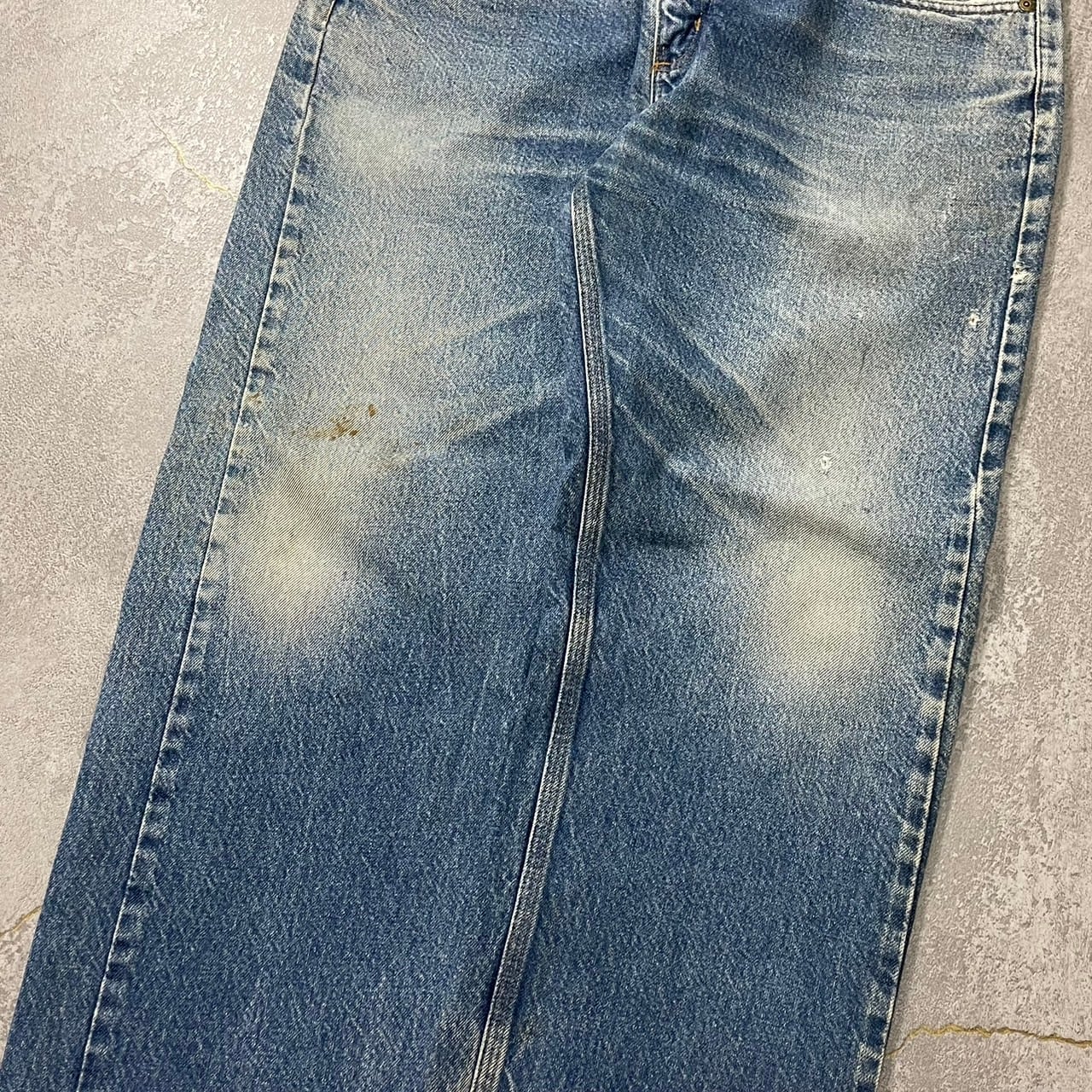 右ももにサビ汚れ、左バックポケットにダメージありますが、着用に支障をきたすダメージや汚れ、リペアはなく古着慣れされてる方であれば問題なく着用いただけます