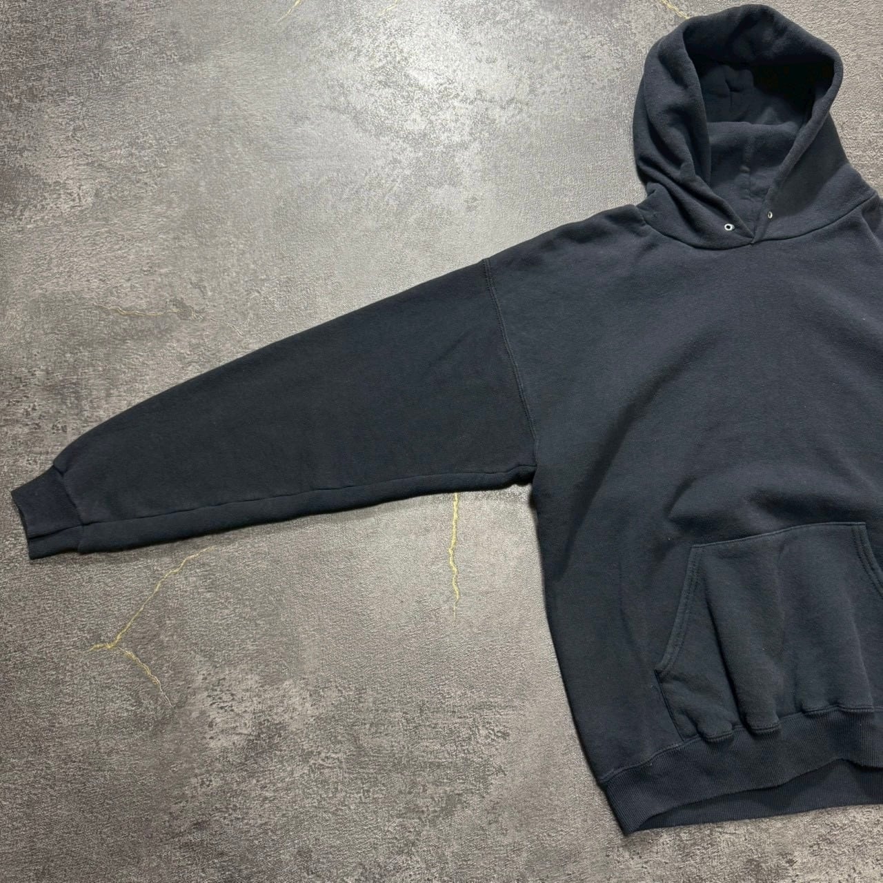 ボディメーカーとしても定評のある90年代アメリカ製のLee。よくあるプリント物やクルーネックではなく、希少なブラックの無地フーディになります